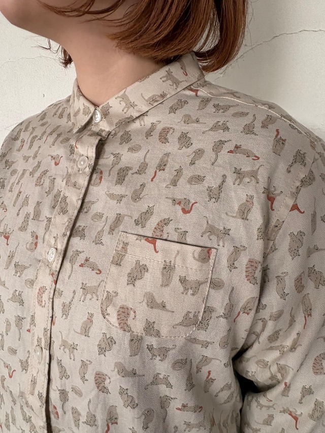 品番 : C760L 20%OFF 価格 : ¥13,970 →¥11,176 素材 : 綿100% カラー : ナチュラル、マスタード size : F 着丈64㎝ 身幅51㎝ 裄丈79.5㎝ モデル身長148㎝ やわらかな起毛素材が心地よく、肌にそっとなじむ長袖シャツ。 小さめの襟がさりげない可愛らしさを添え、首元をすっきりと見せてくれます。 程よく主張のある柄は派手すぎず、いつものコーディネートにも自然に馴染むのが魅力。 一枚でも、重ね着でも楽しめる、日々に寄り添うアイテムです。