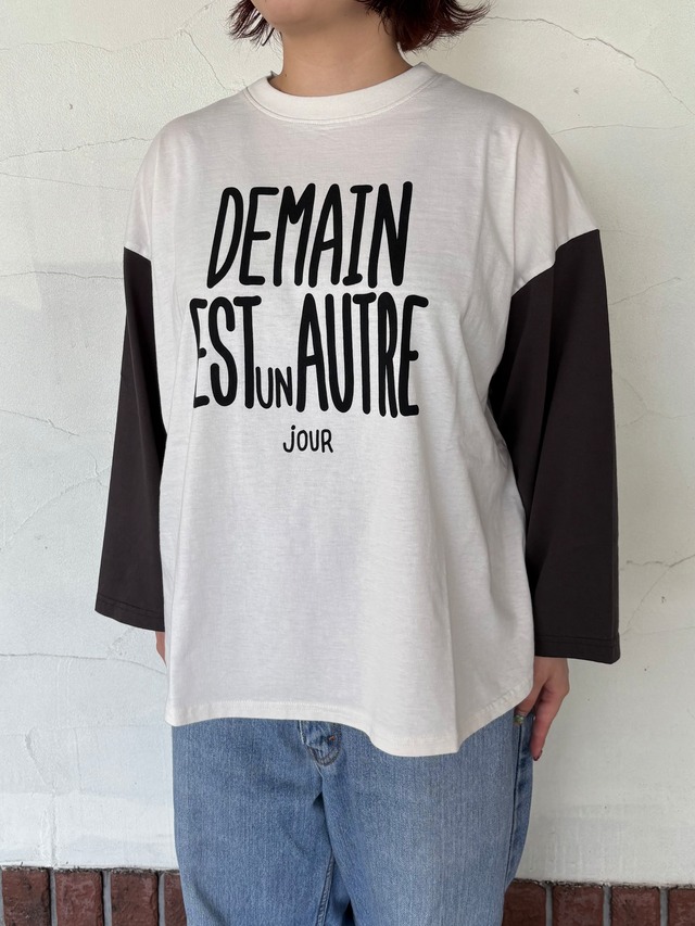 品番 B-513017 価格 ¥11,880 素材 コットン100% カラー チャコール、ブラック サイズ F 着丈60㎝ 身幅58㎝ 裄丈88㎝ モデル身長148㎝ やわらかな裏毛素材で、日常に心地よく寄り添うプリントプルオーバー。 程よくゆとりのあるシルエットと、かすれ感のあるロゴがさりげないアクセントに。 一枚ではもちろん、タートルやシャツとの重ね着にもおすすめです。 季節の変わり目にも長くお使いいただける、着回しのしやすい一着です。