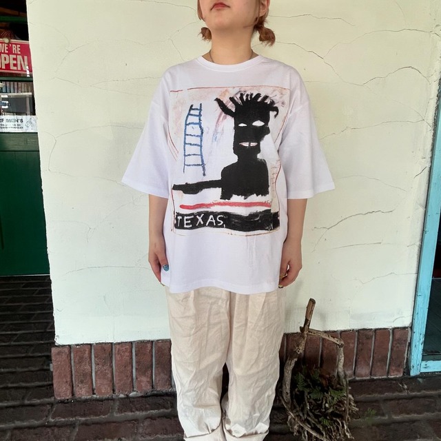 品番 JT242C12 価格 ¥8,690 ※こちらの商品は「ゆうパケット」での配送となります。 「代引」「配達指定」は出来かねますのでご了承ください。 素材 綿100% カラー ホワイト size S 着丈60㎝ 身幅58㎝ 裄丈53㎝ モデル身長148㎝ 1980年代のアメリカ美術を代表するアーティスト、ジャン=ミシェル・バスキアのアートを使用したTシャツ。 スタイリングのアクセントになるデザインです