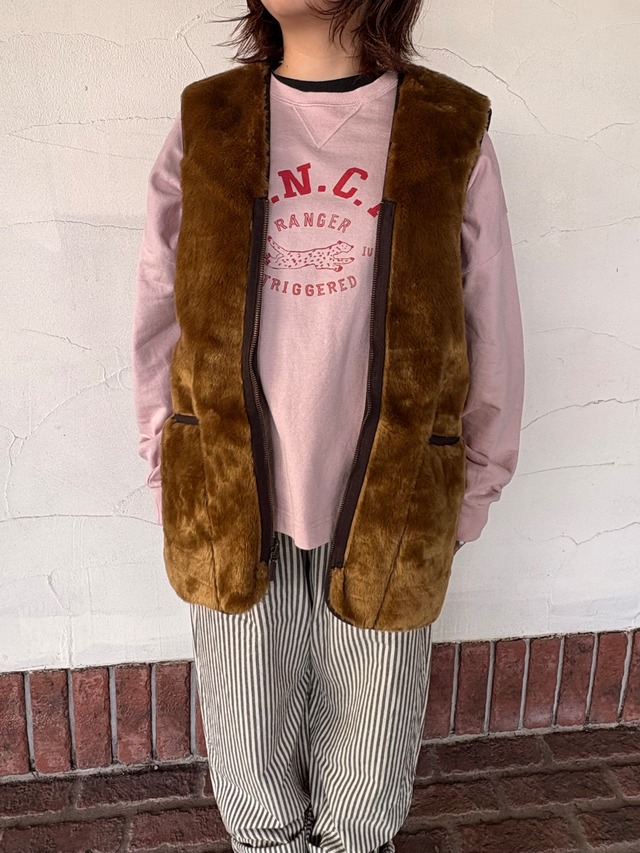 品番 08210764 (232MLI0035) 価格 ¥25,300 素材 アクリル100% 裏地、ポリエステル100% カラー ブラウン size 38 着丈 69㎝ 肩幅 39.5㎝ 身幅 51㎝ モデル身長148㎝ リバーシブルで着られるファーライナー。 毛足長めのファーが肌触りが良く、しっかりと保温性があるのが特徴 オーバーサイズすぎないシルエットなので、身体が大きく見えず女性も着やすいです! 秋口には羽織として、冬にはアウターにインして着るのもおすすめです