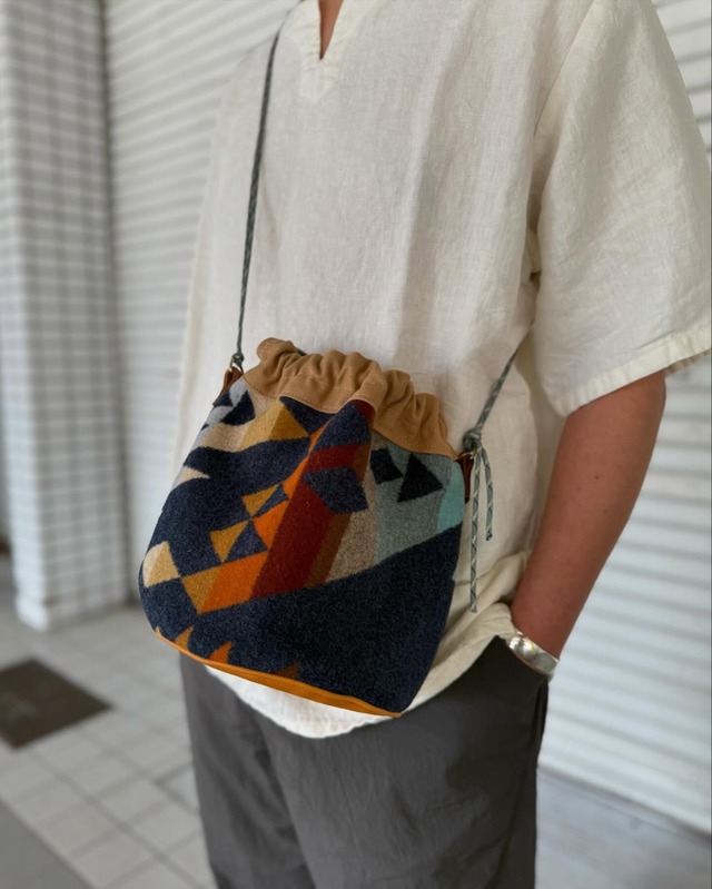 品番 : H0717403 ¥19,800 ペンドルトンのブランケットを解体してリメイクした、こだわりの一品です。 「旅行に行くときに何でも乱雑に詰め込んで車に積みたい!」という思いから生まれたこのポーチ。 ガバッと開く大きめの開口部は、何でも簡単に詰め込めて、取り出しやすさも抜群。 内側にはスマホサイズのポケットが2つ付いており、鍵や小物もしっかり収納できます。 裏地にはミリタリー感あふれるキルティング素材を採用。 デザイン性だけでなく耐久性も兼ね備えた、まさに日常使いにぴったりのポーチです。 旅行やお出かけ、普段使いでも活躍すること間違いなしな一品です。