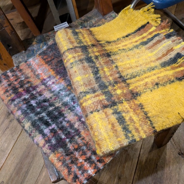 【インポート】 "モヘア混シャギーチェックマフラー"