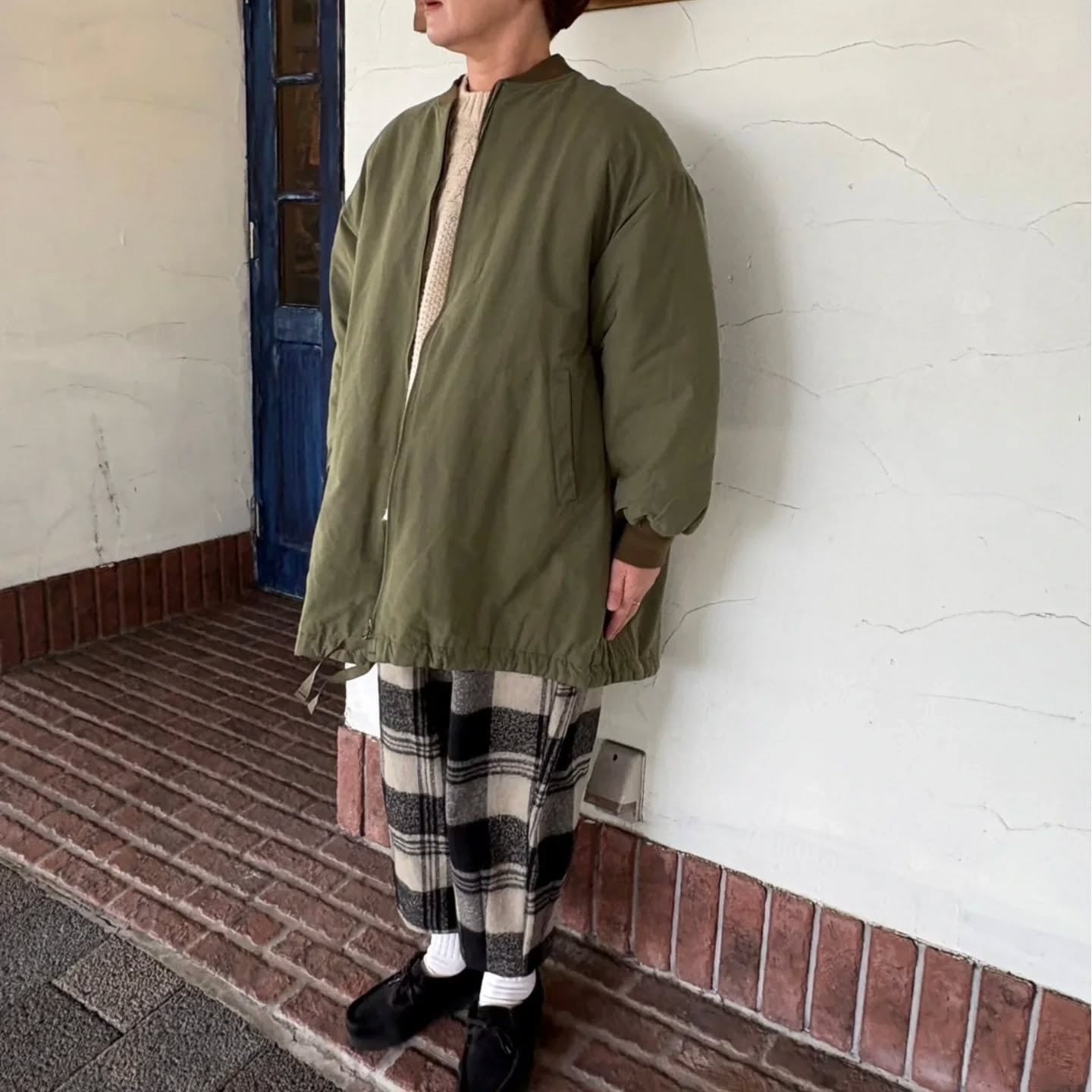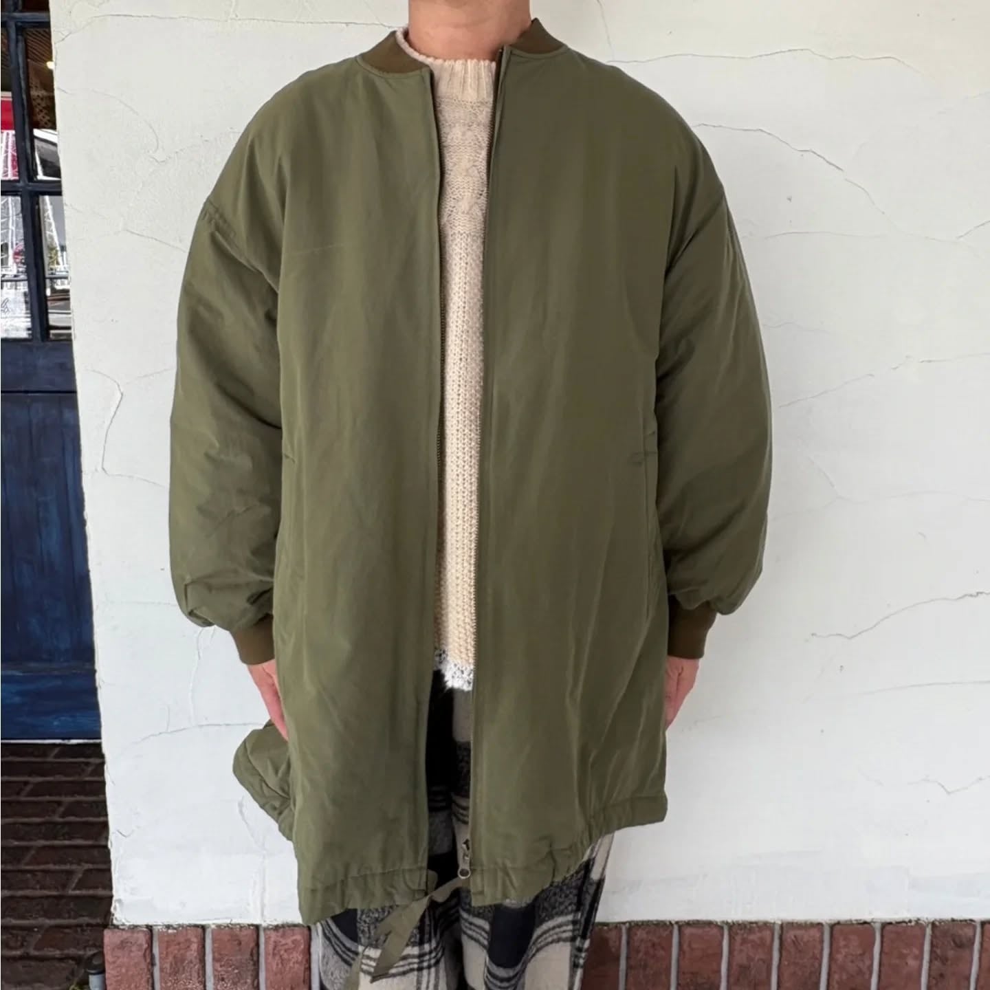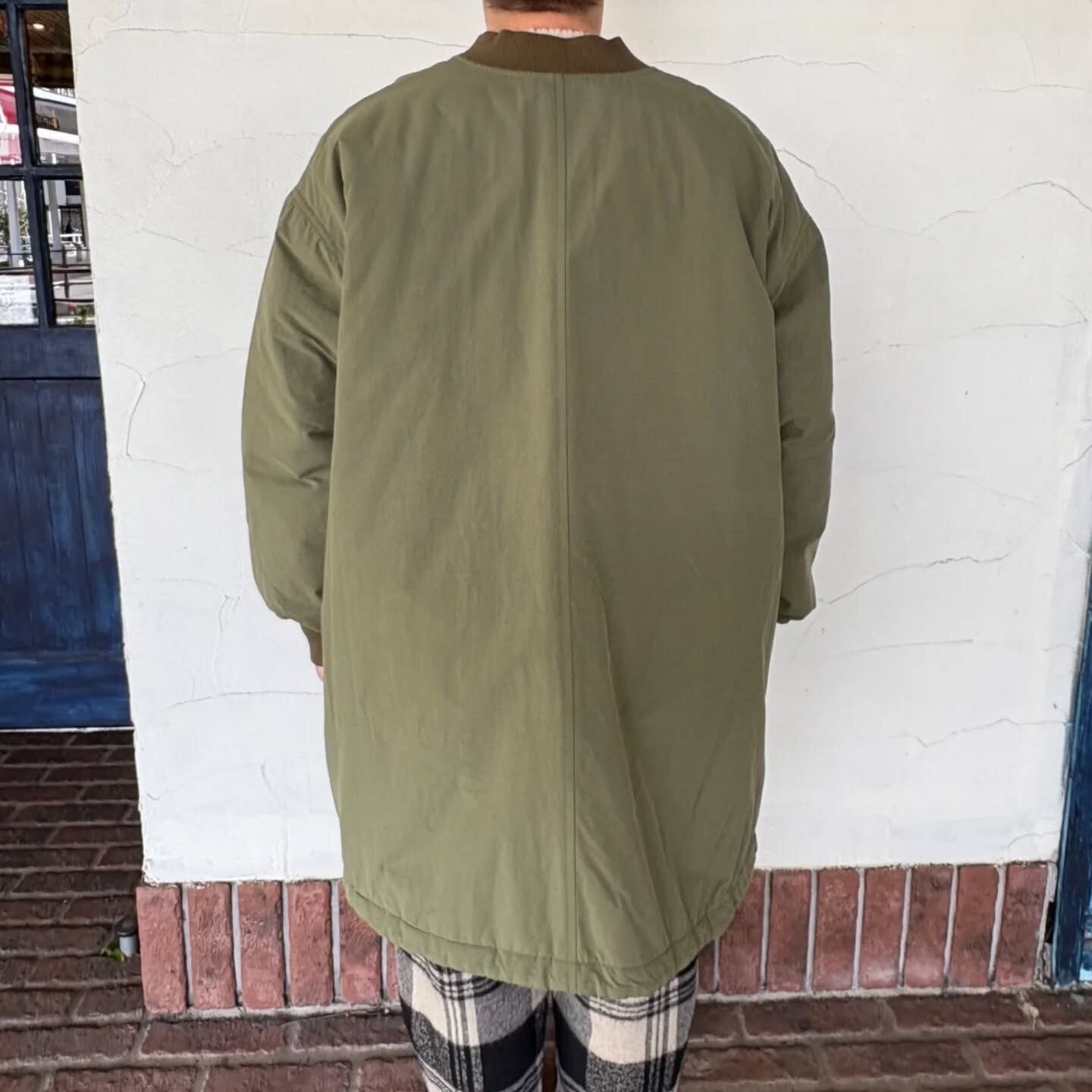 滑らかなピーチ起毛素材のジャケット入荷しました!ワイドなのでニットや厚手のスウェットも沢山着れちゃいますよ。お尻もすっぽり隠れて暖かです(^^)