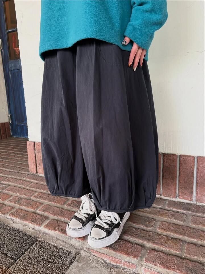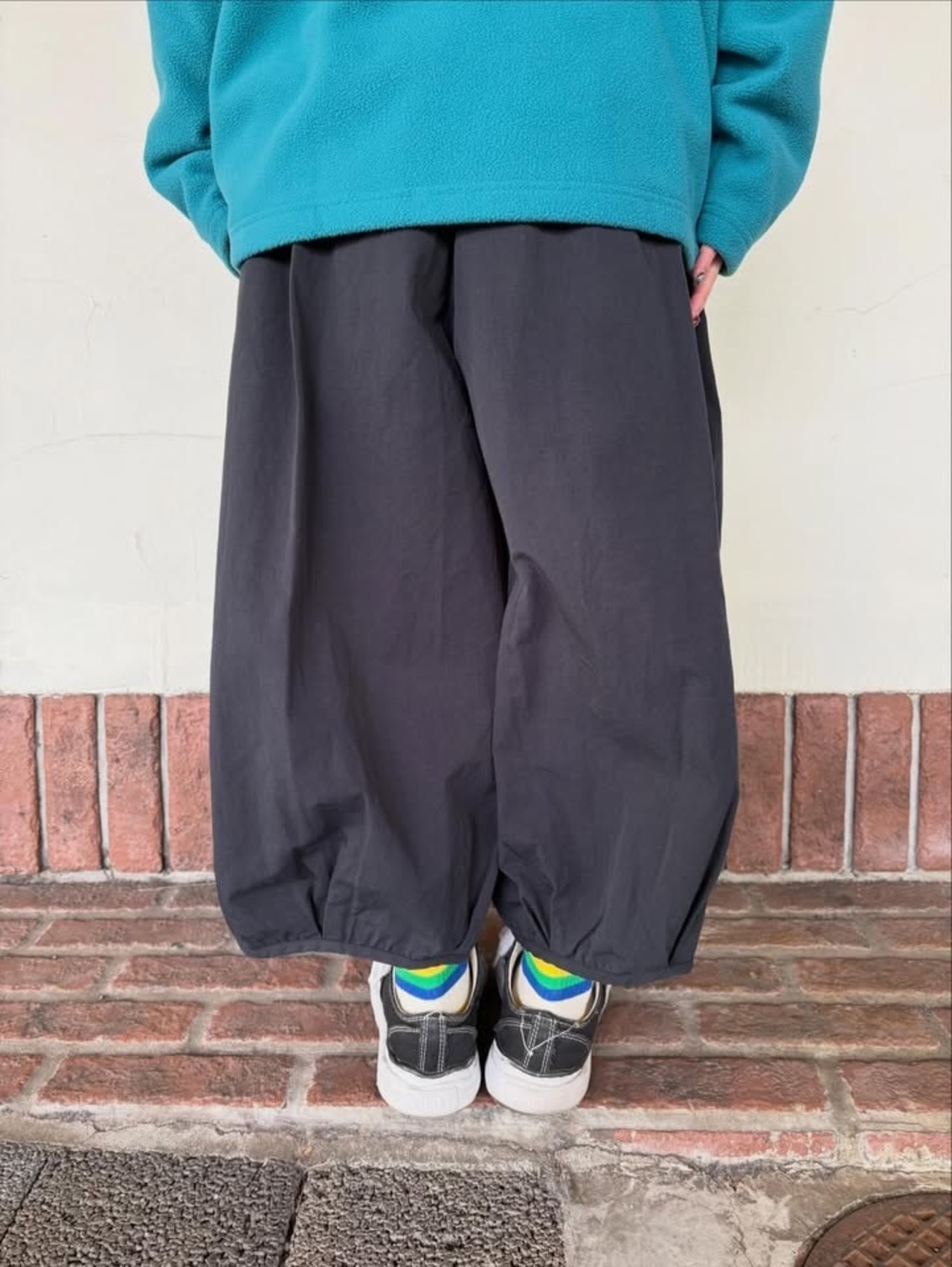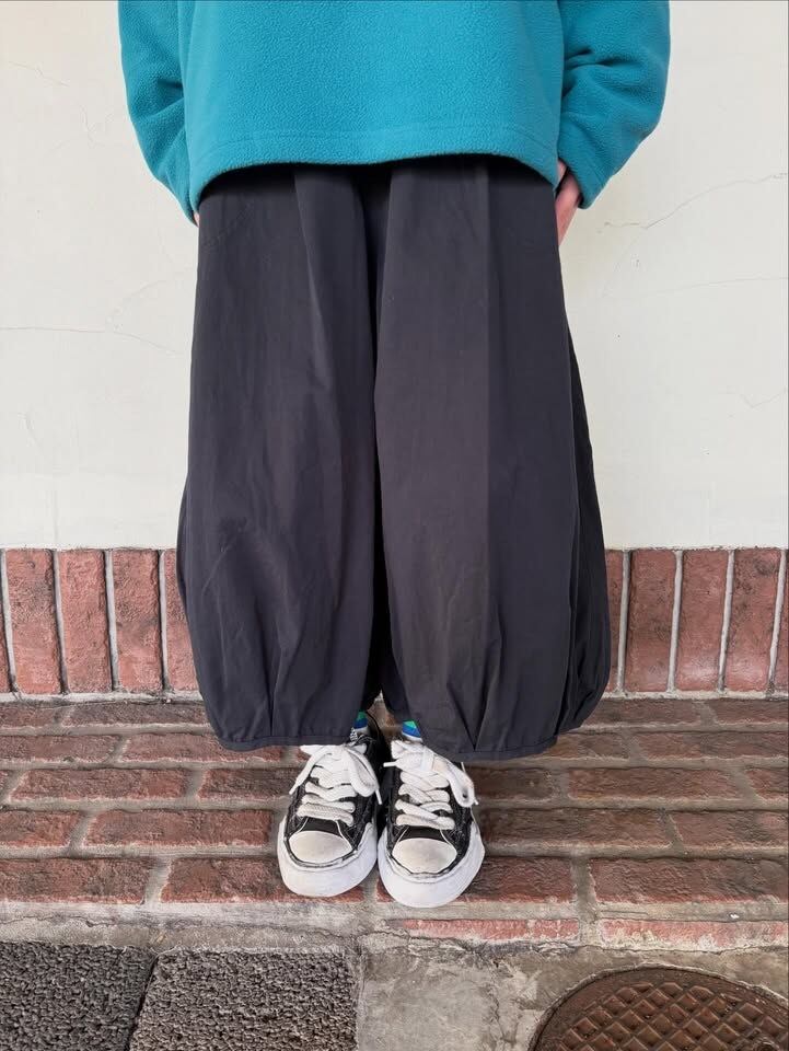 裾にタックが入って膨らみのあるパンツシルエットです。