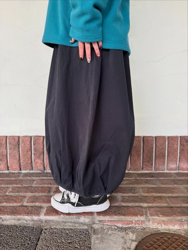 シンプルなトップスでもプルオーバーでも何にでも合わせやすく広がりすぎないのでスッキリ着ていただけます。