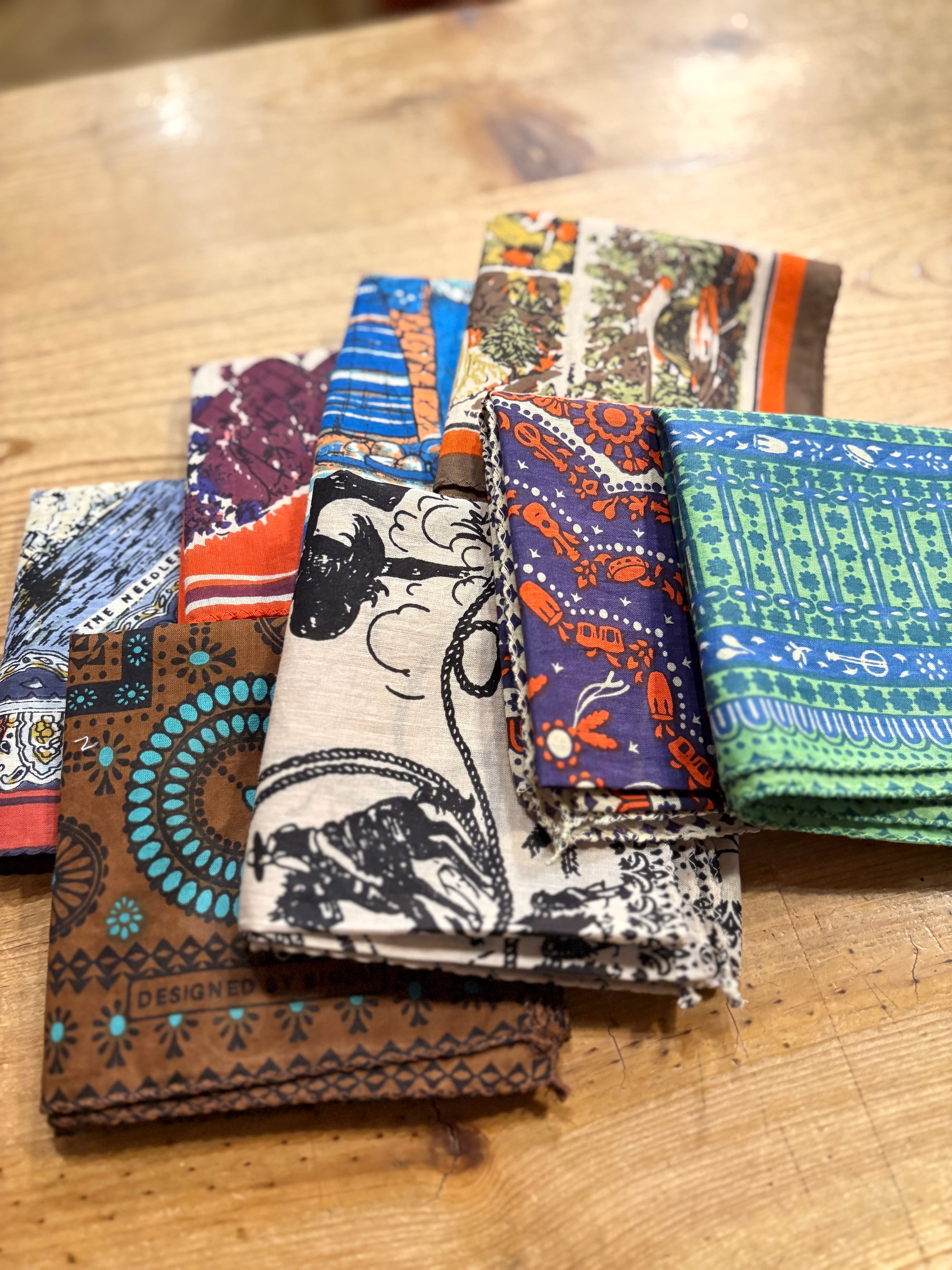 ビンテージ風マッププリントや、動物柄がかわいいバンダナです