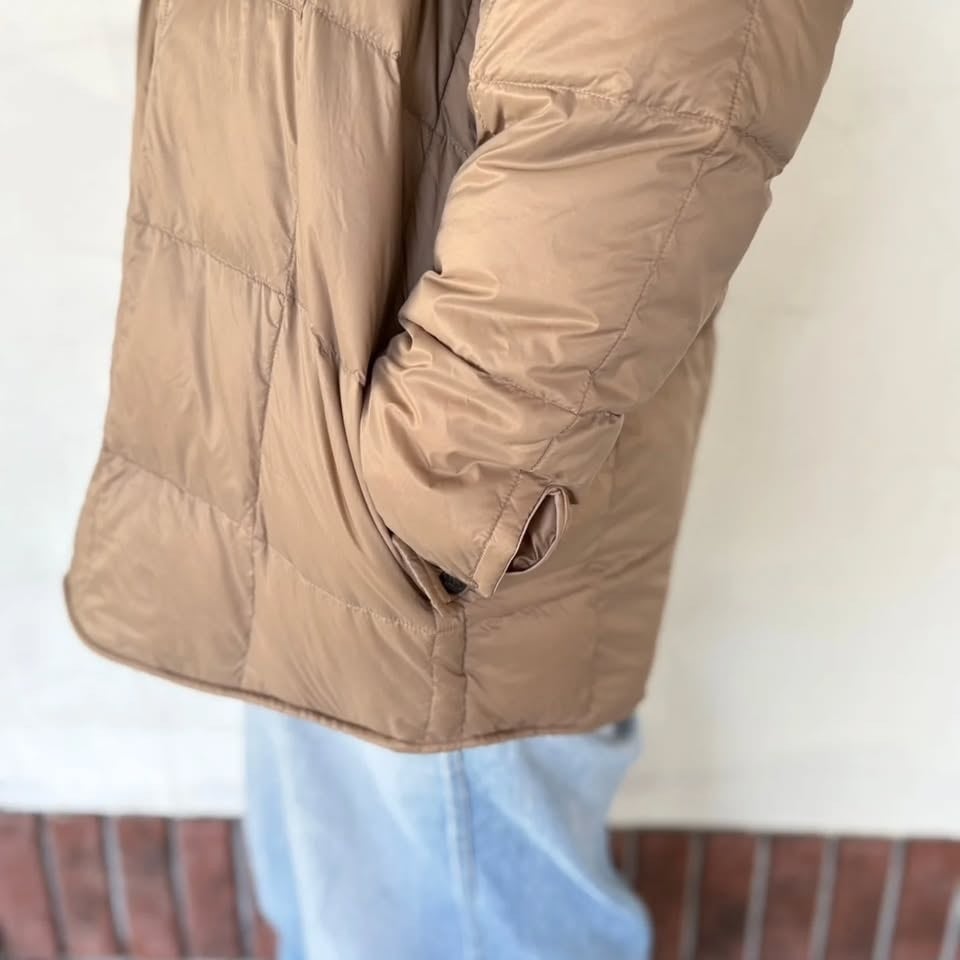 素材 : 表生地 ナイロン100%、中わた ダウン95%.フェザー5%、裏生地 ポリエステル100%、衿部分 綿100%、メッシュ ポリエステル100%
