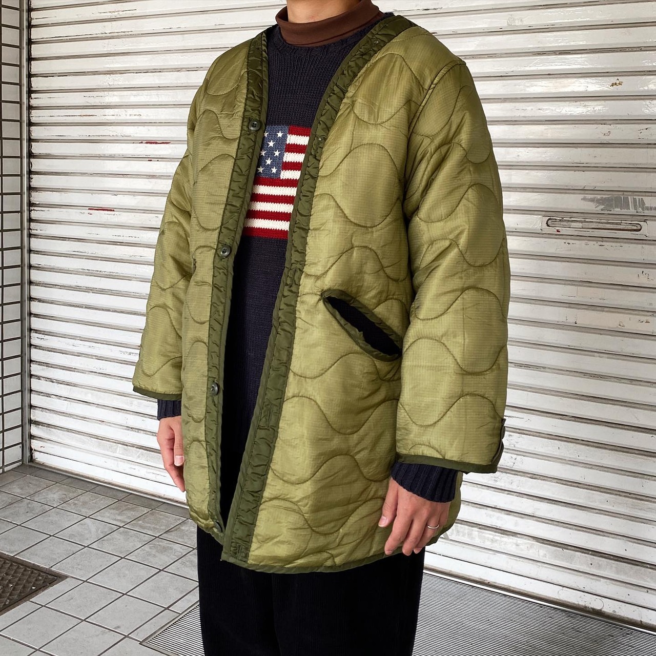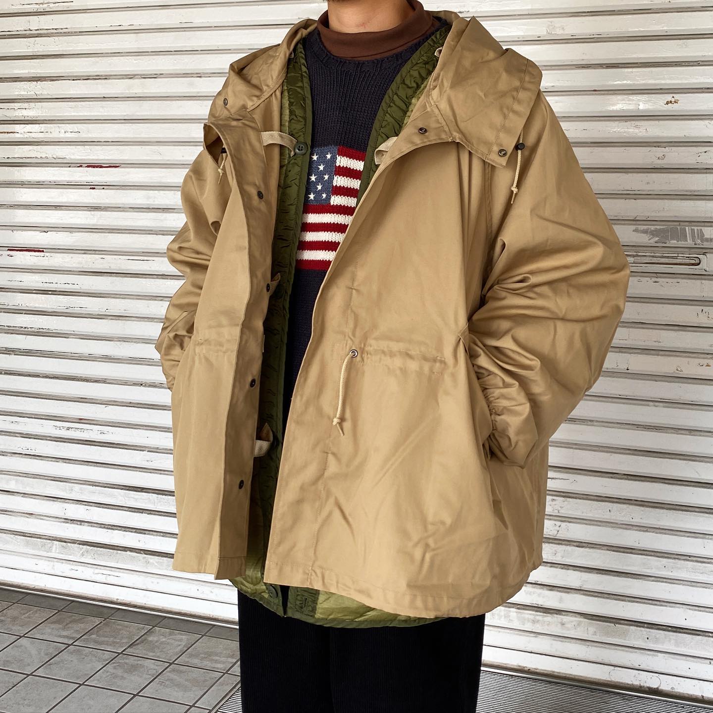 インナーには80~90年代デッドストックのアメリカ軍ナイトカモライナーを装着して3WAY仕様にしています。