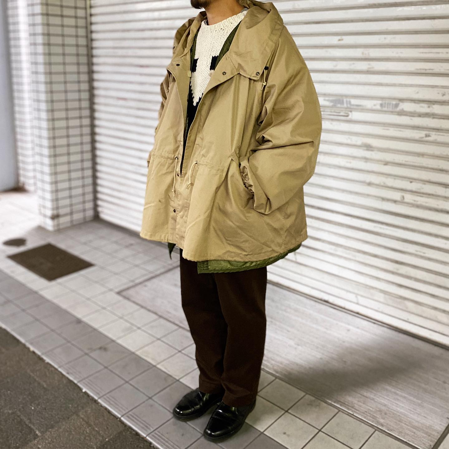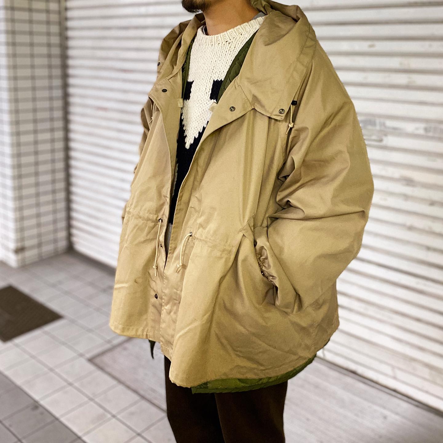 大胆なオーバーサイジングのアウターは汎用性・雰囲気ともに最高の一着です