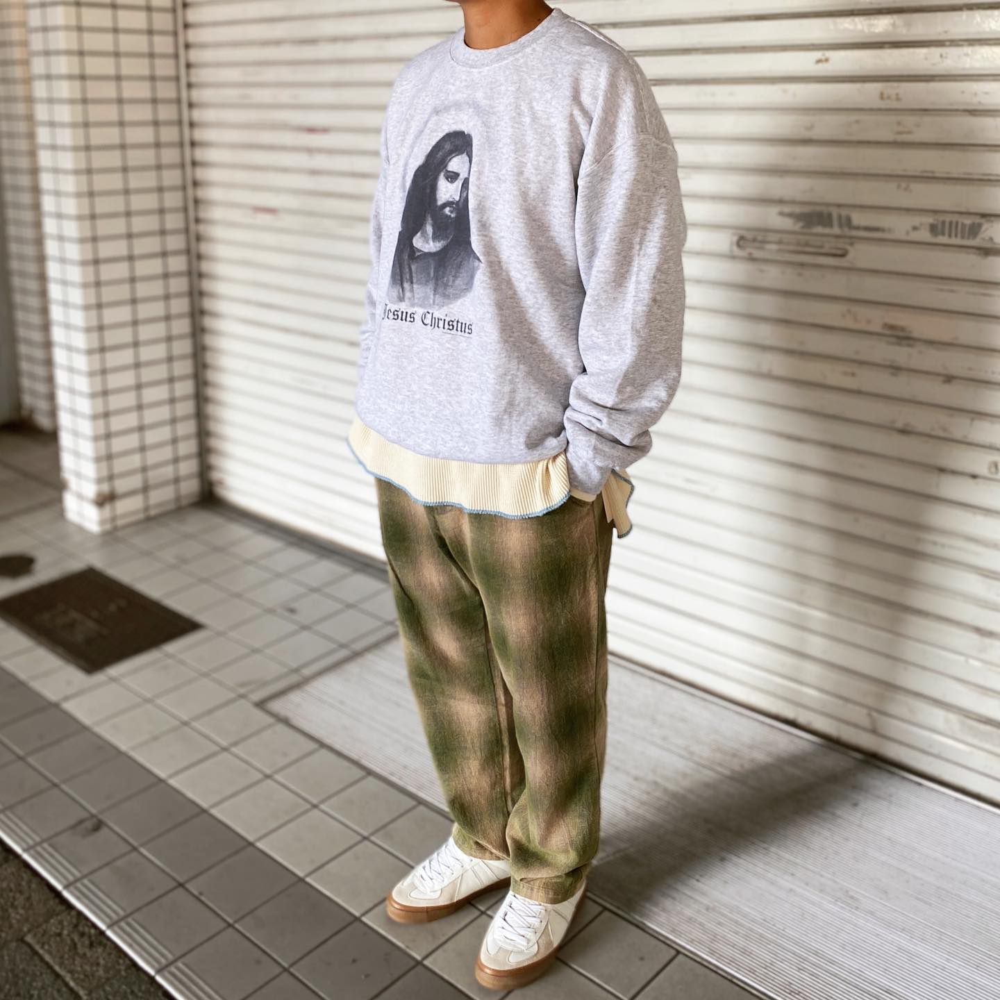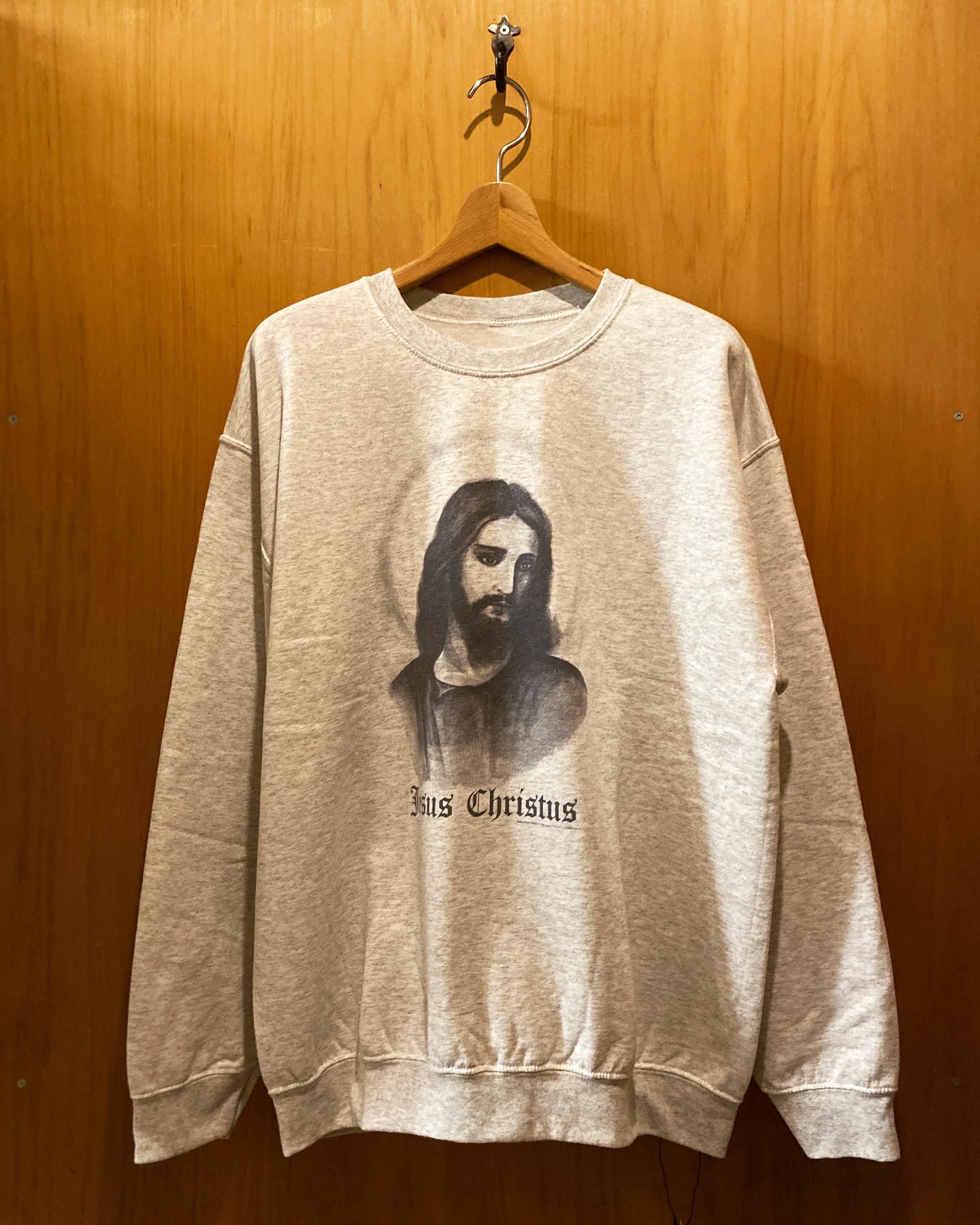 アーカイブを参考にしたイエス・キリストとオールドイングリッシュのフロントプリントが程よくインパクトのある一着。