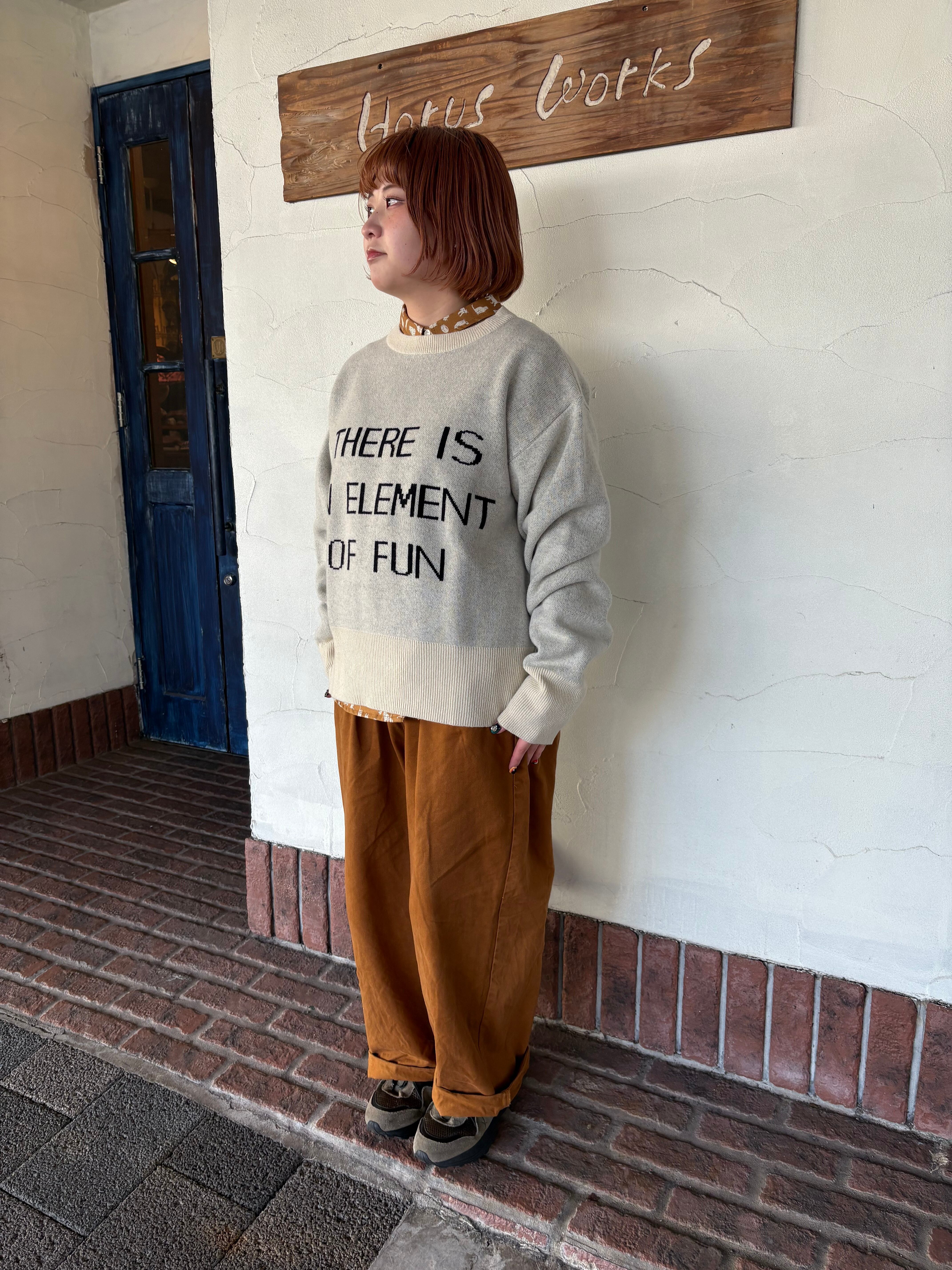 少し大きめに入ったロゴがかわいいニットプルオーバーです!