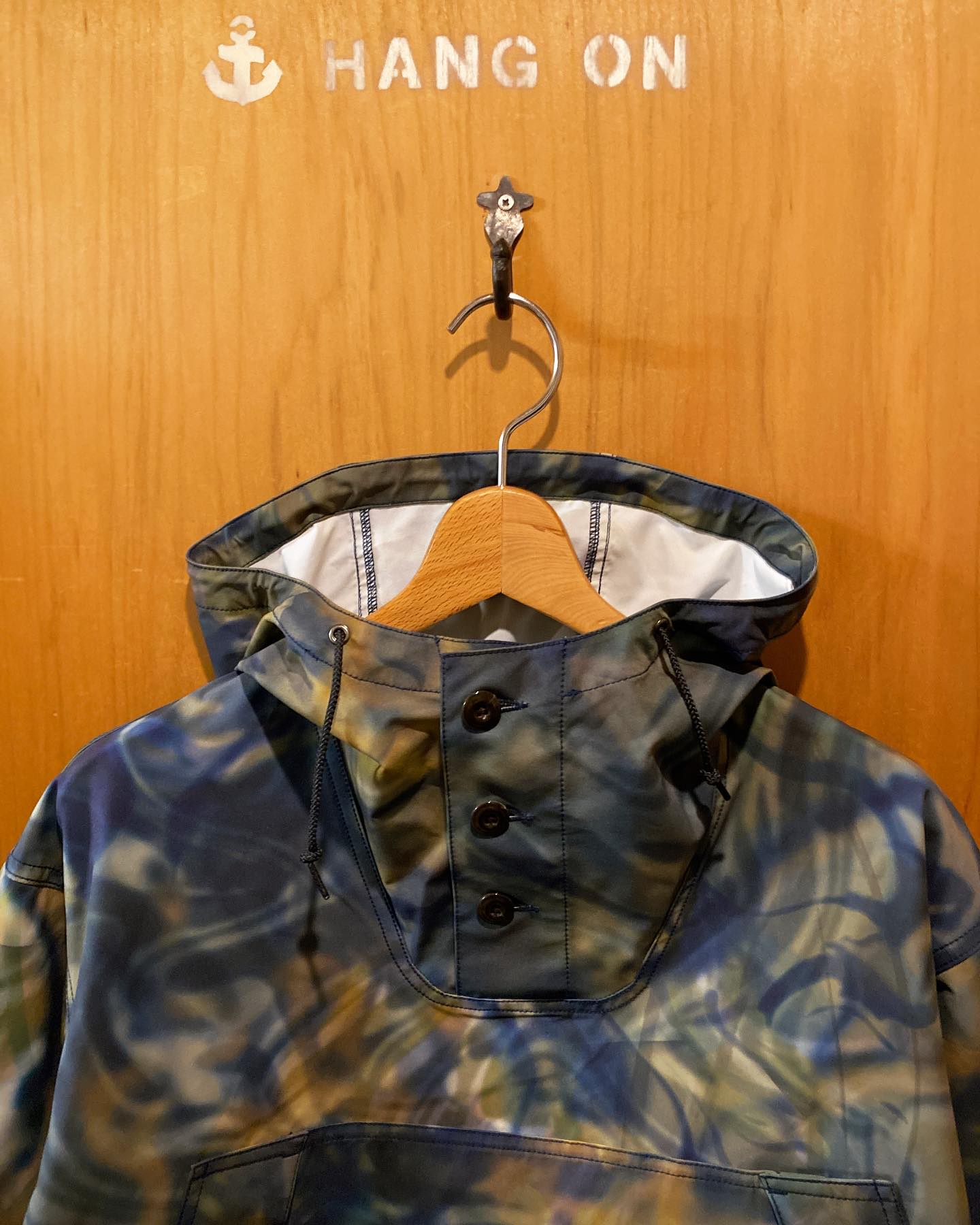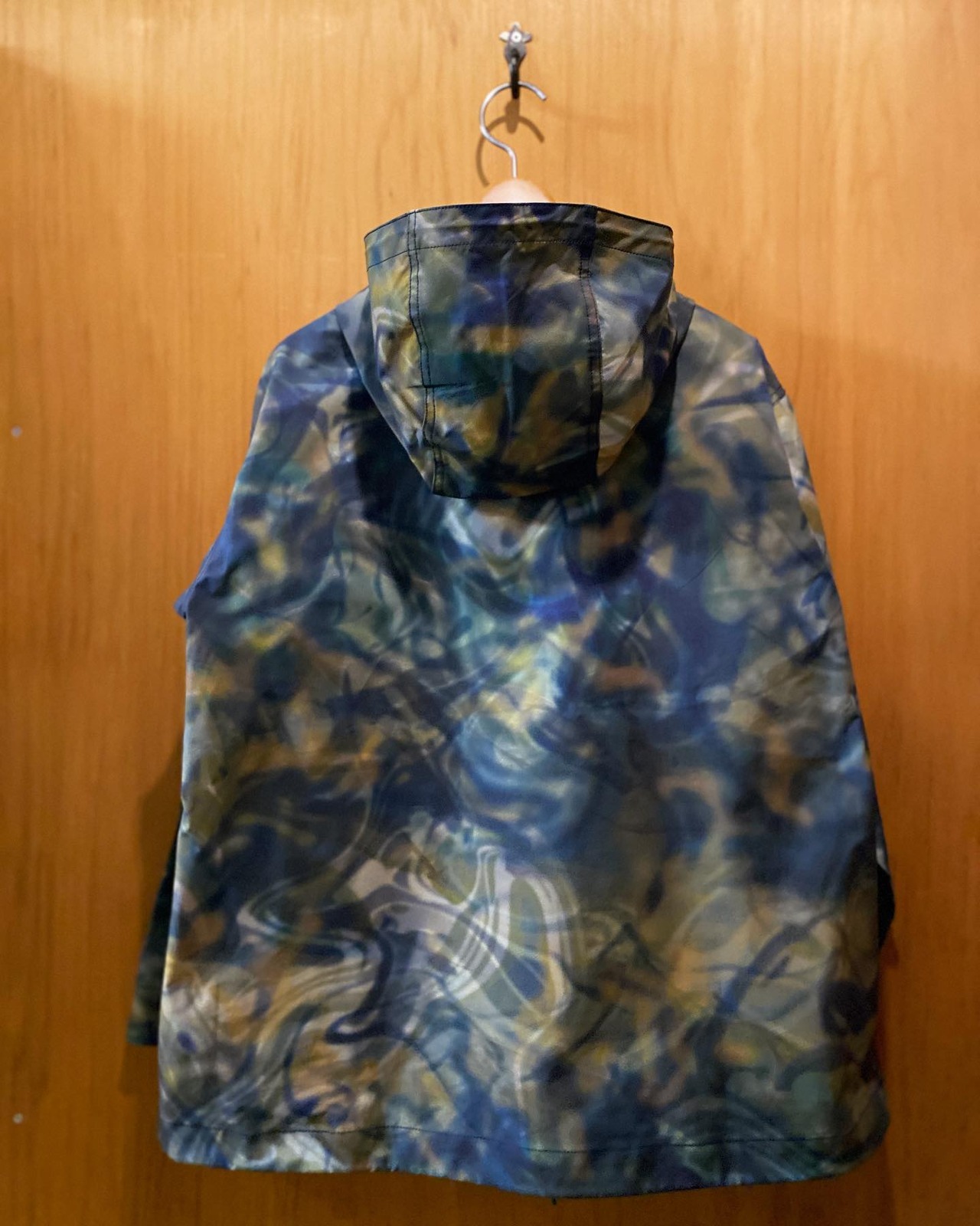 オリジナルのカモフラージュとマーブル調が混じった特徴的な柄が人目を引く一着。