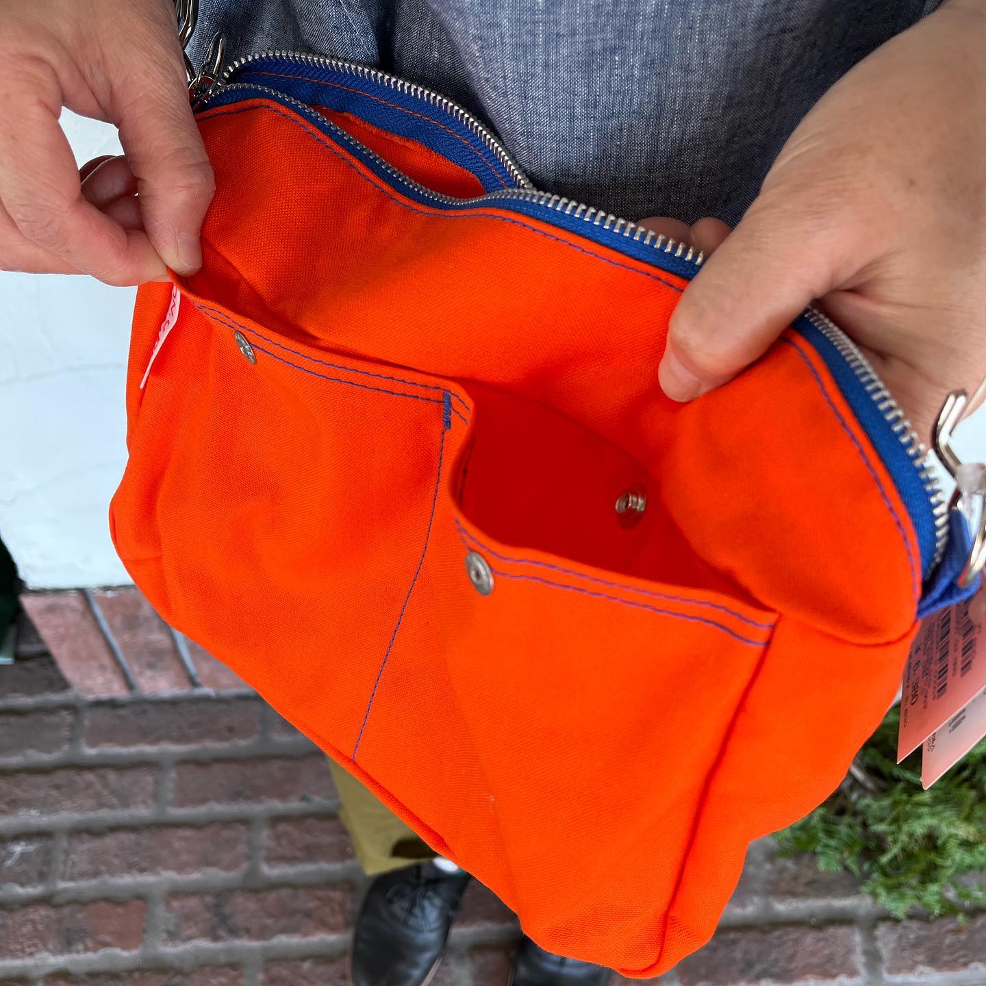 コンパクトながらマチも程よくあり見た目以上に収納力がありますストラップは長さ調整と取り外しが可能でポーチにもなりますっ!