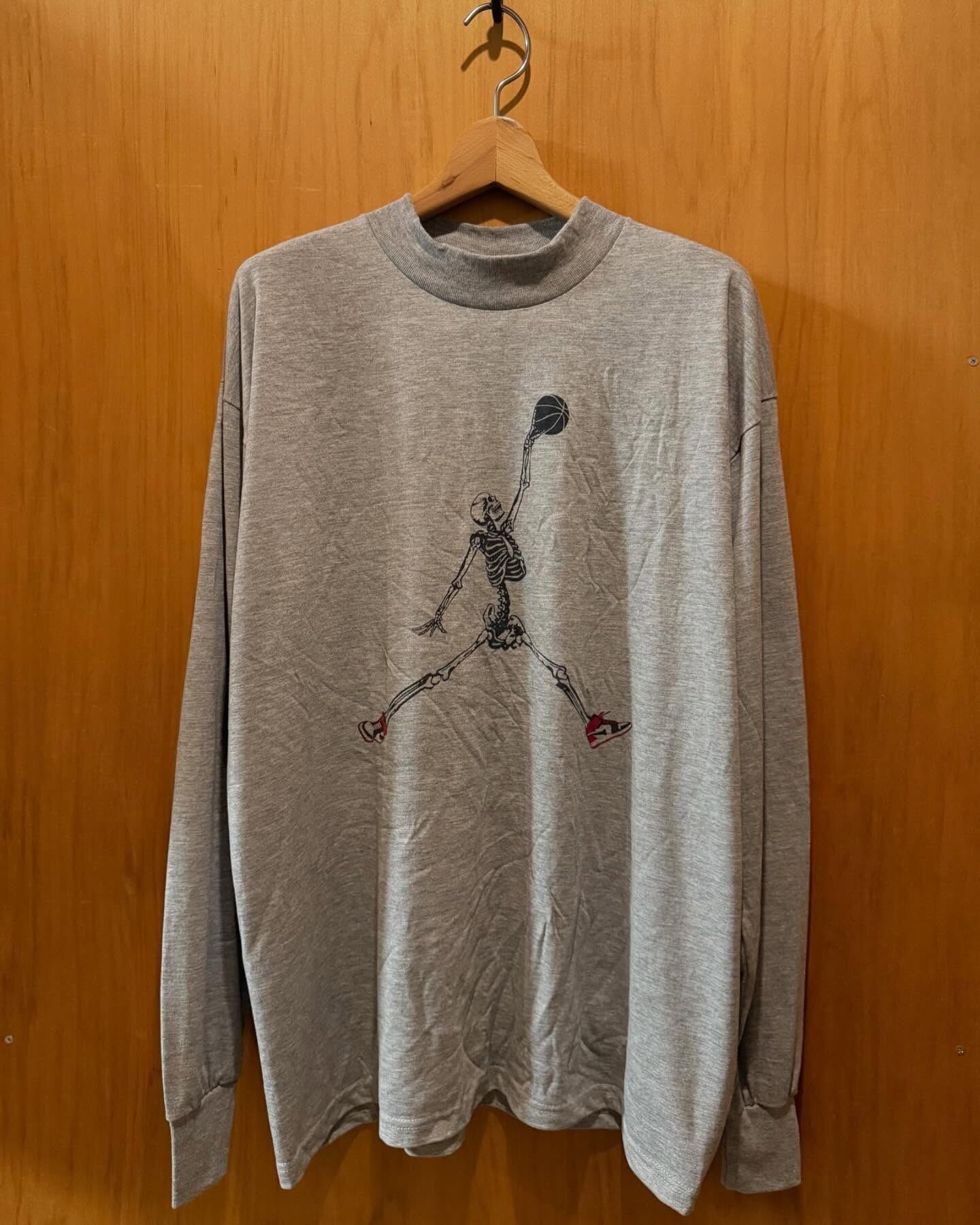 フロントのグラフィックは、ジャンプマン・フライトスローをボーンスカルにアレンジしたグラフィック。ユーモアあふれる一着となっています。