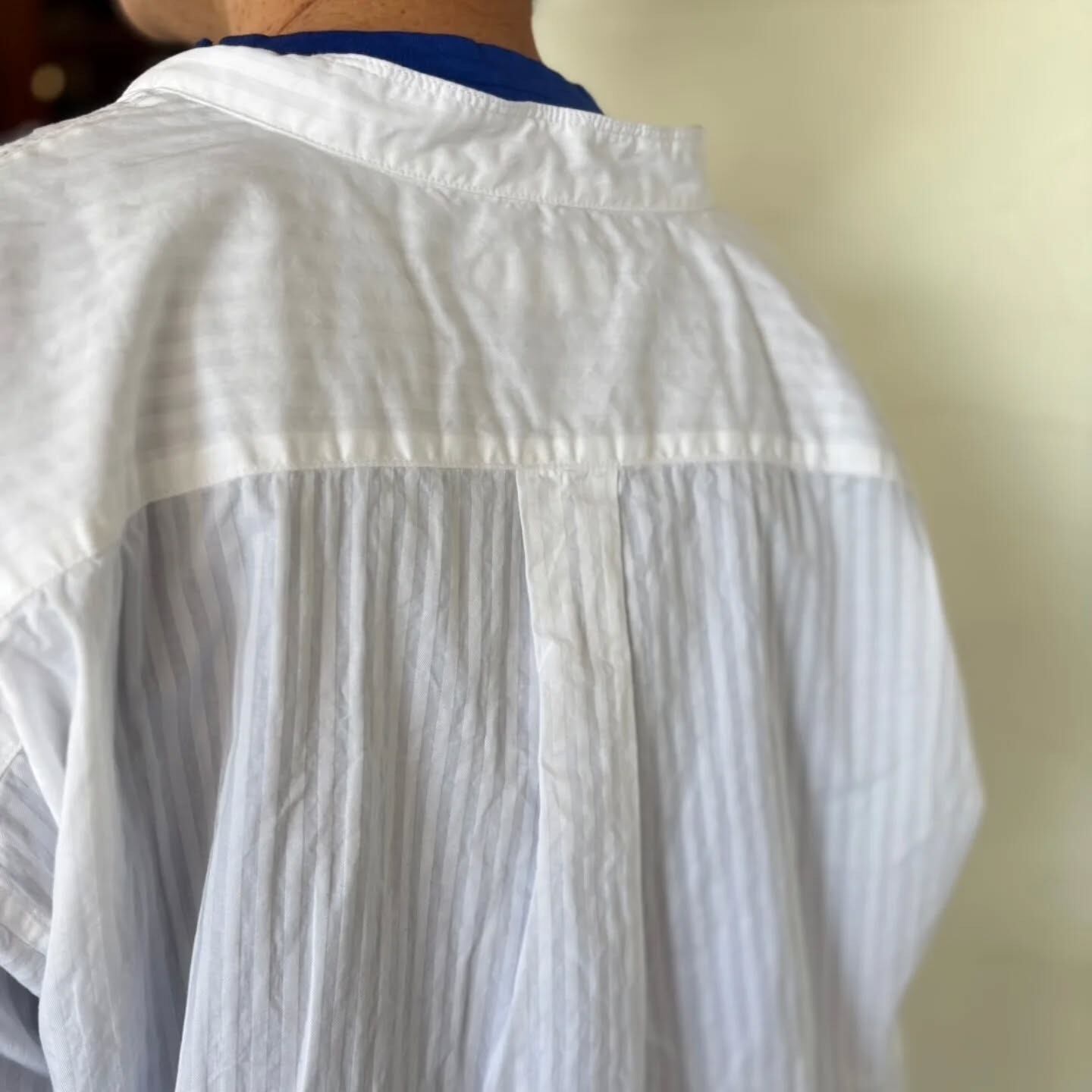適度な張りがありしわになりにくく取り扱いのしやすいシャツです(^_^)ドロップショルダーでゆとりのあるシルエットです。きれいめなコーディネートにもお使い頂けます。