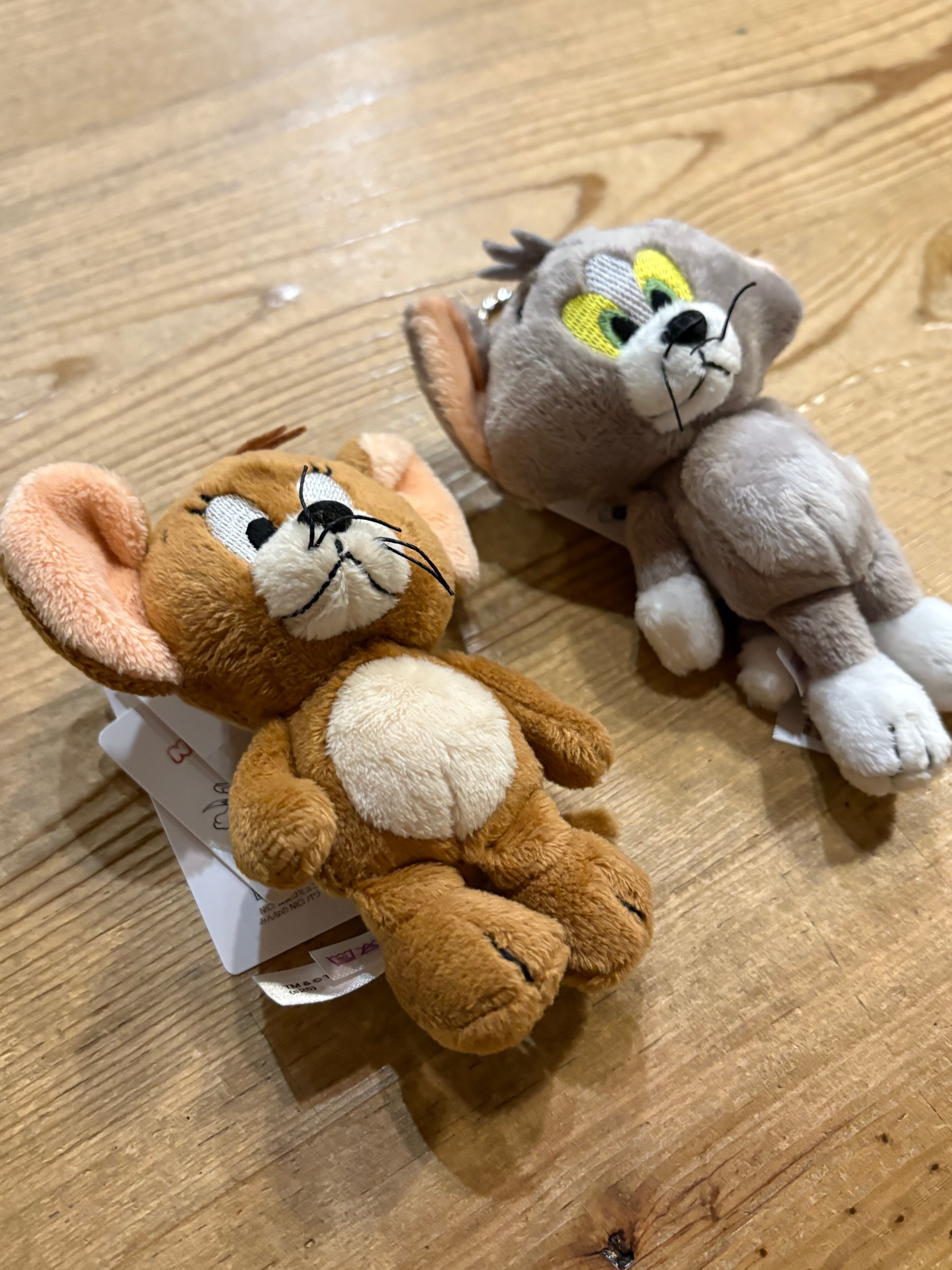 ぬいぐるみの肌触りをそのまま残した、ネコのトムとジェリーのキーリングです!