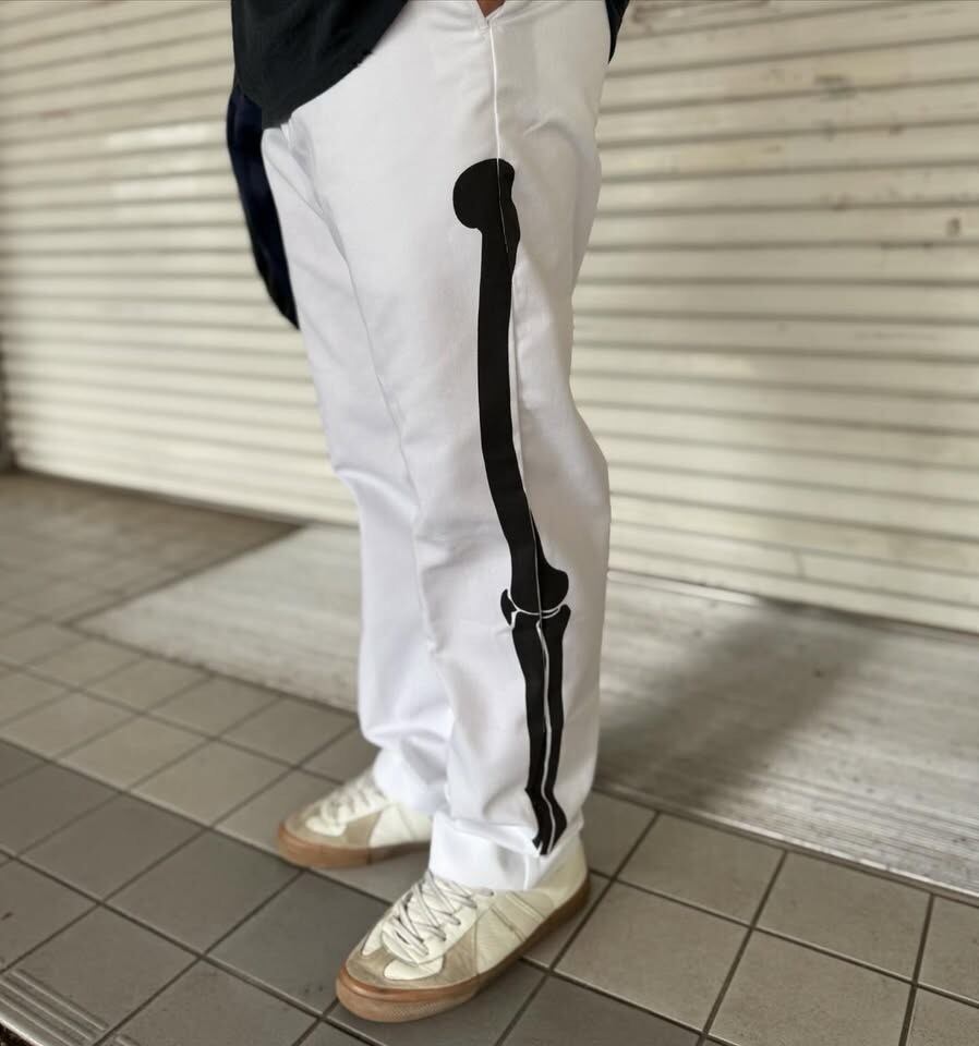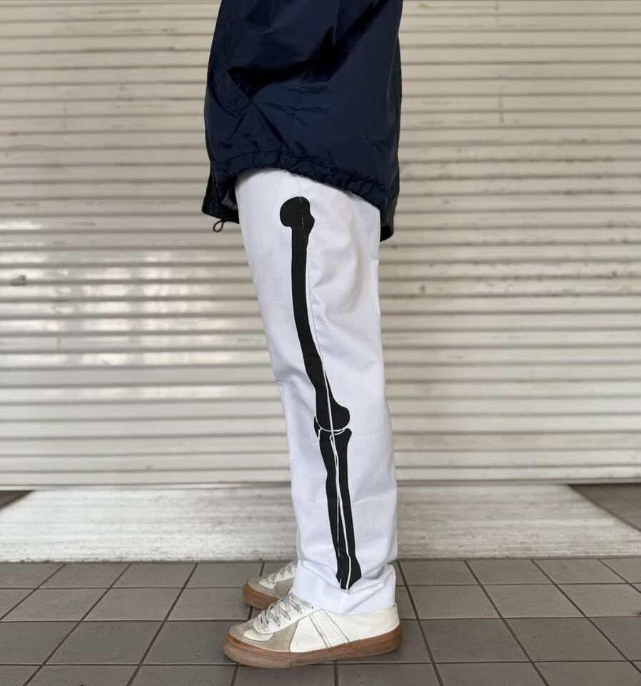 デッドストックの米軍メディカルスタッフが穿いているトラウザーズスタイルのパンツにボーンプリントを施した一着。