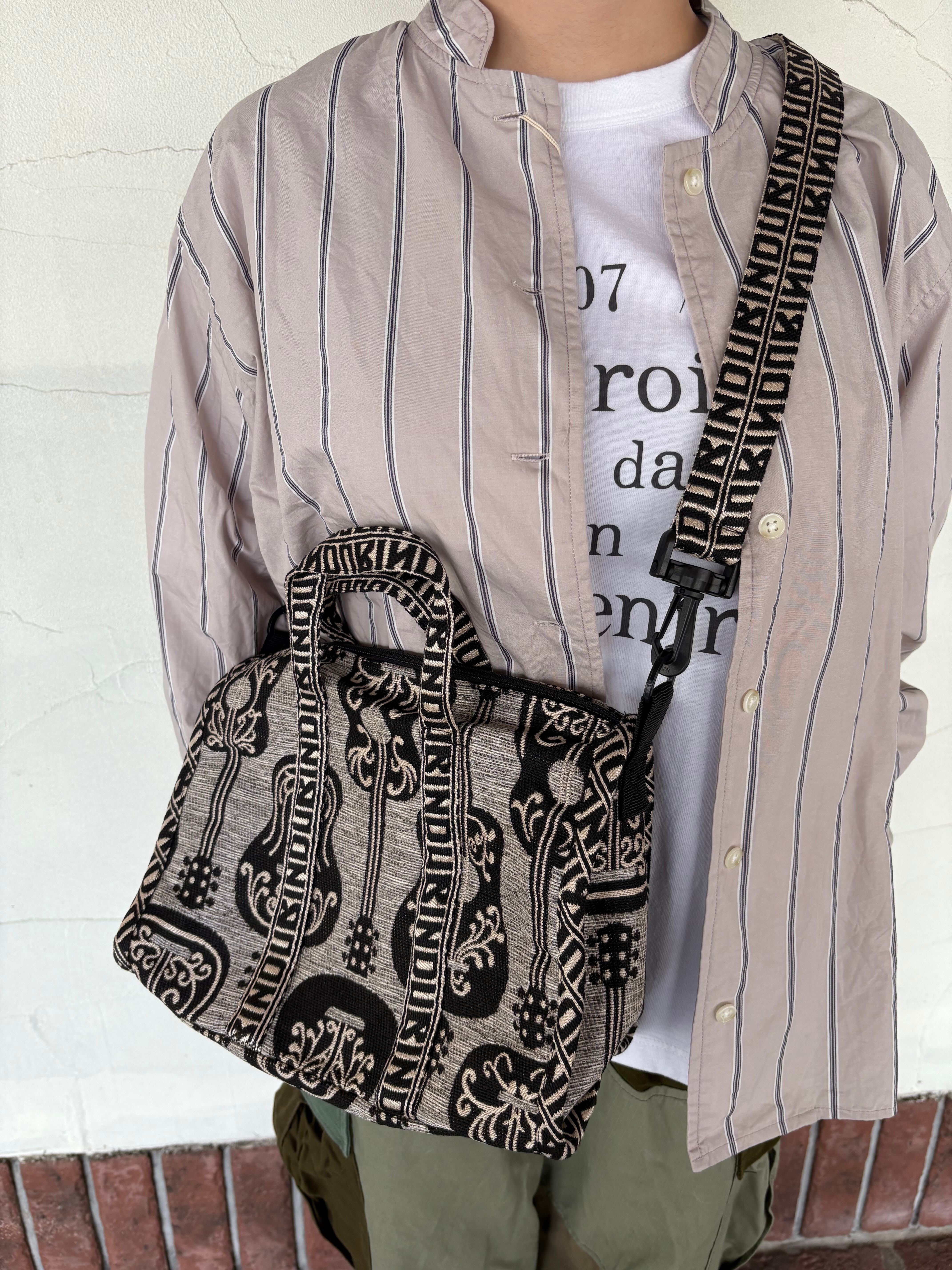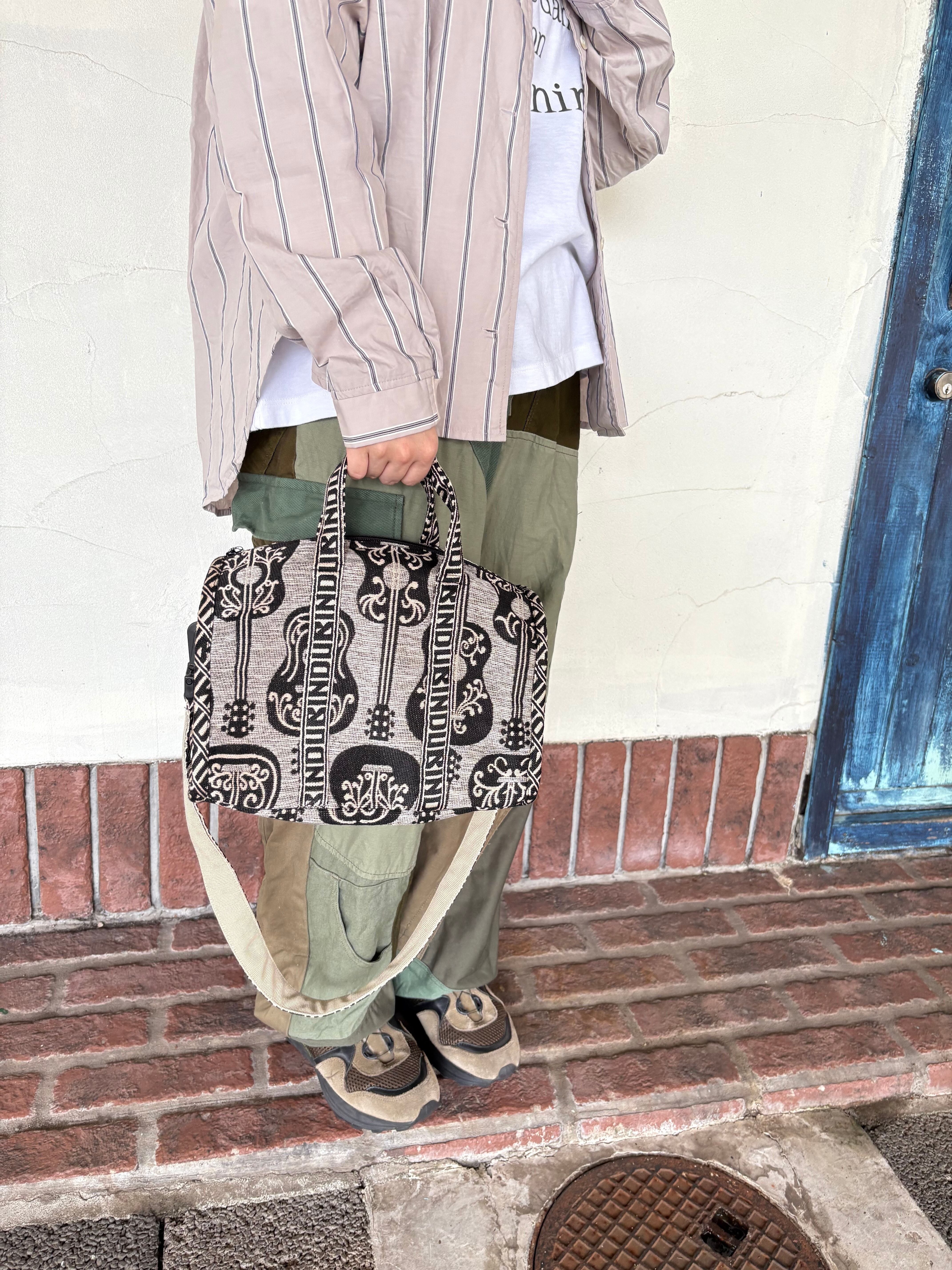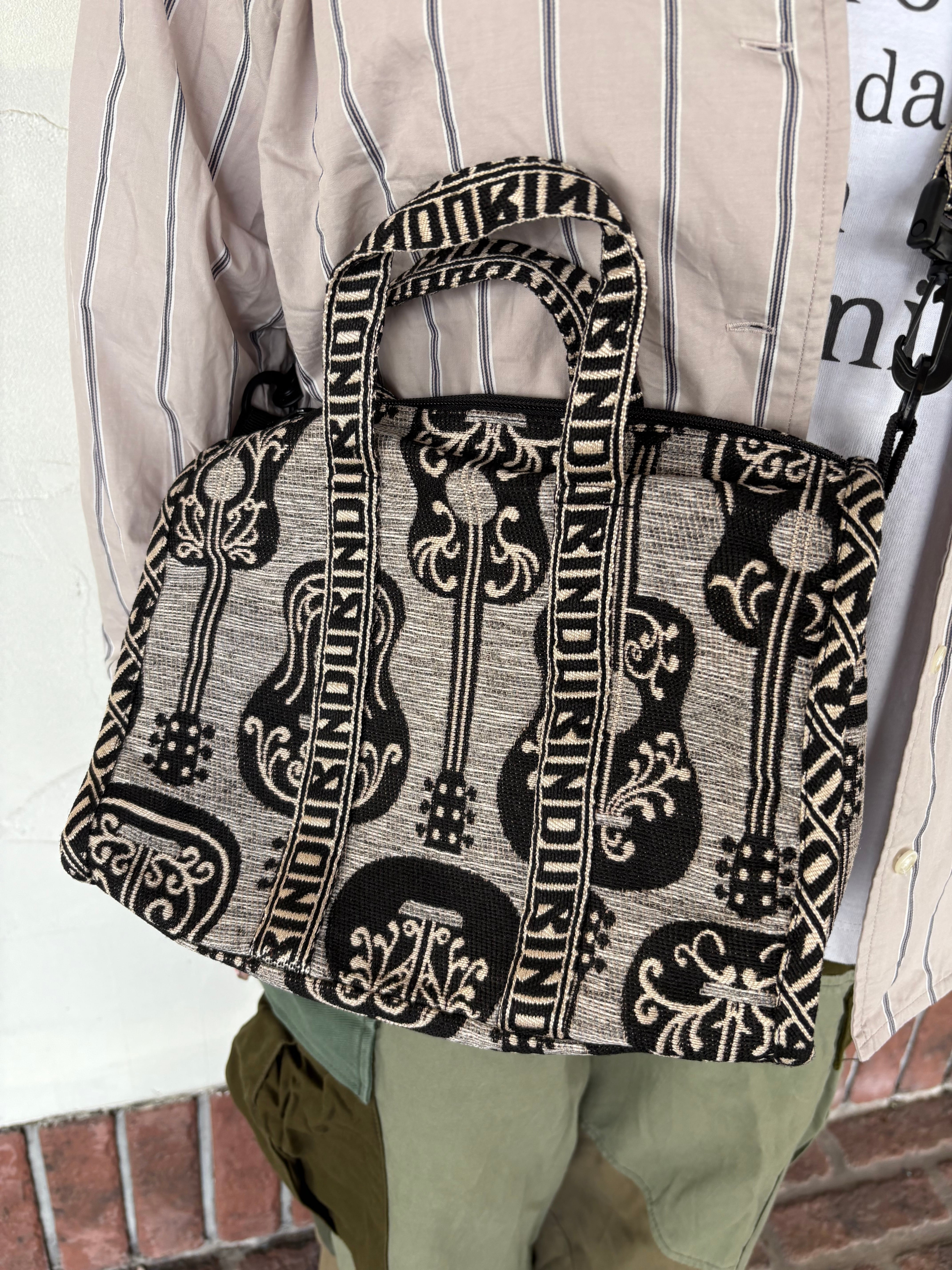 ギター柄が目を惹く、BINDUのジャガード織りミニボストンバッグ。