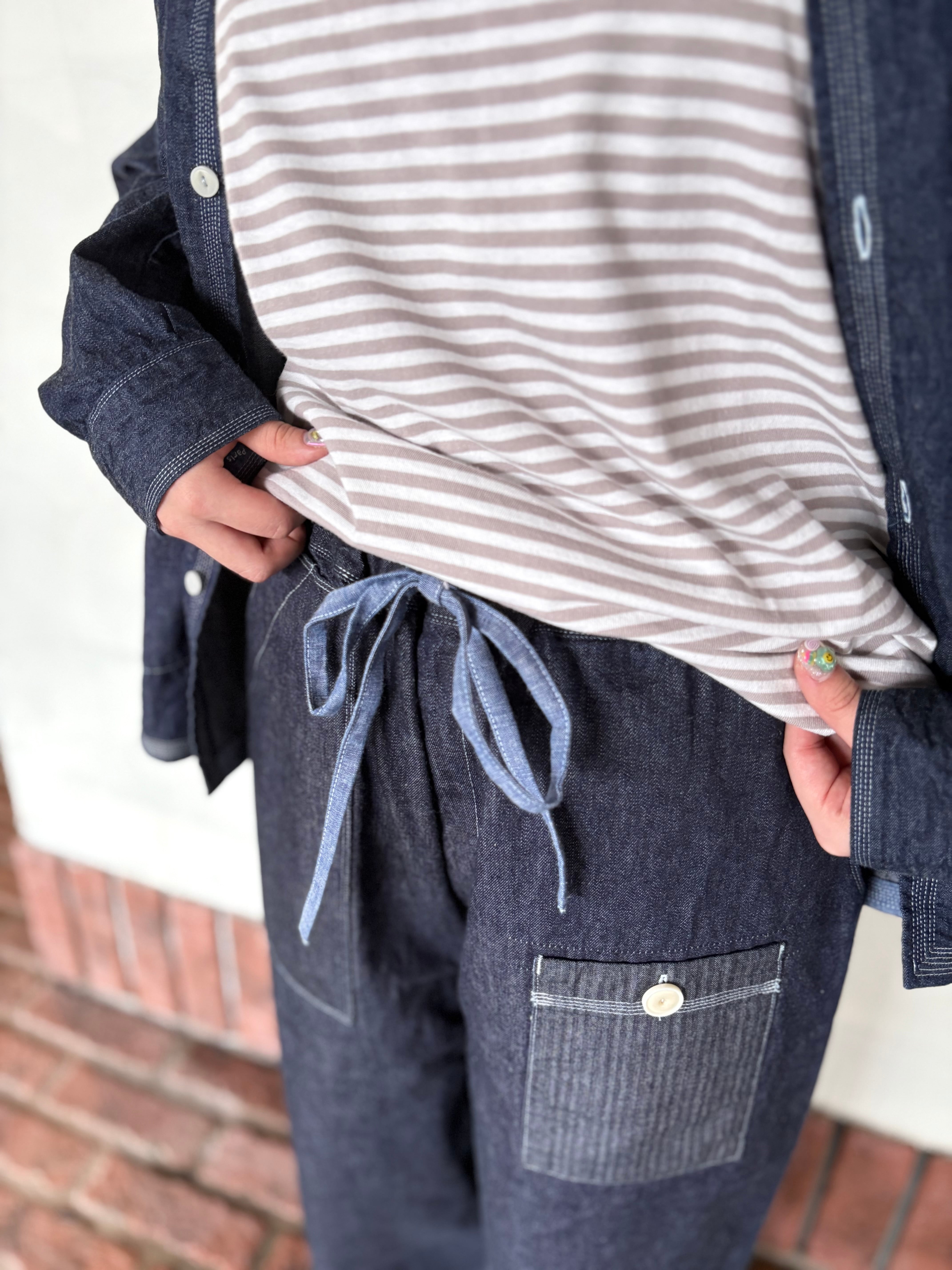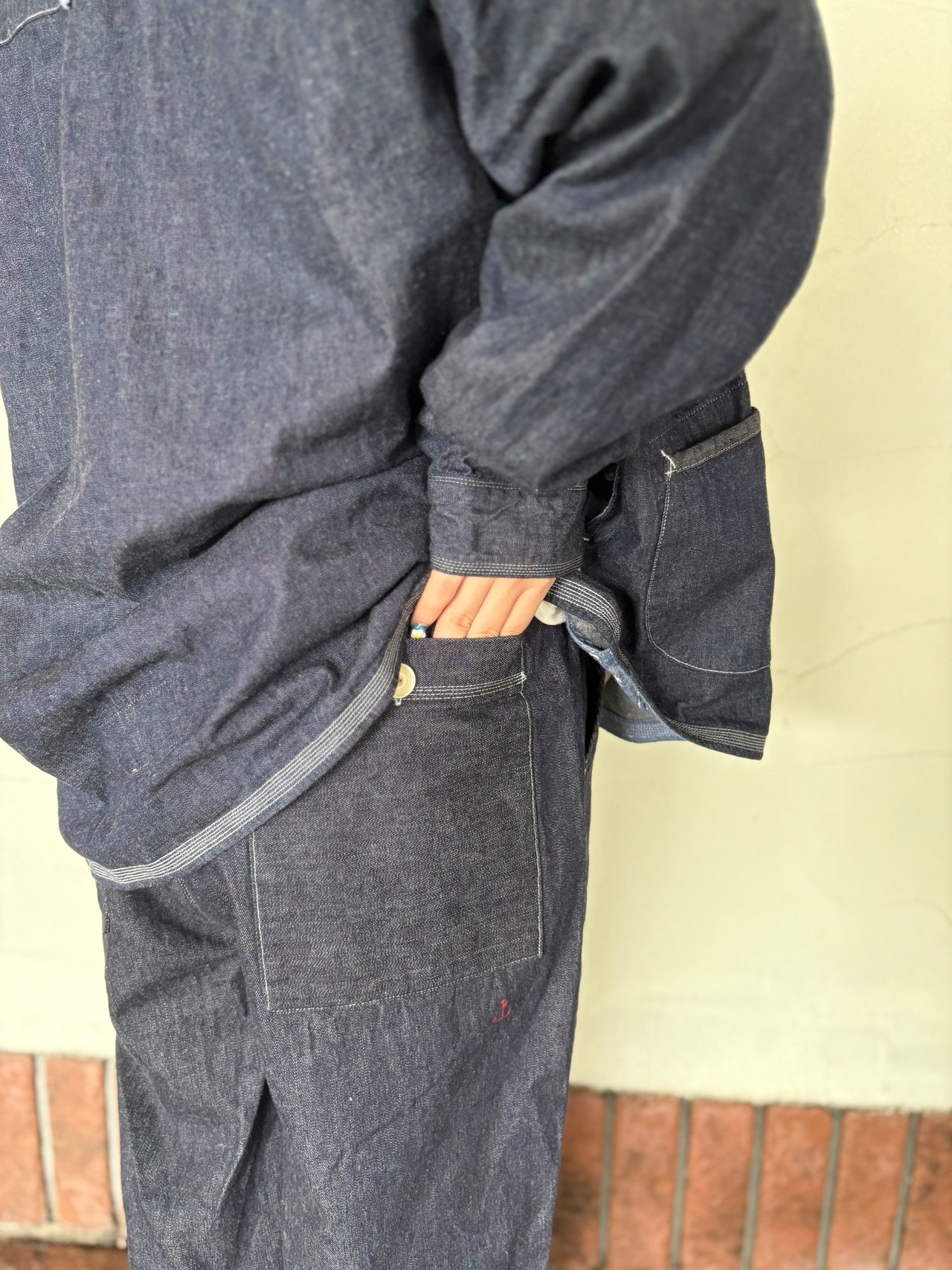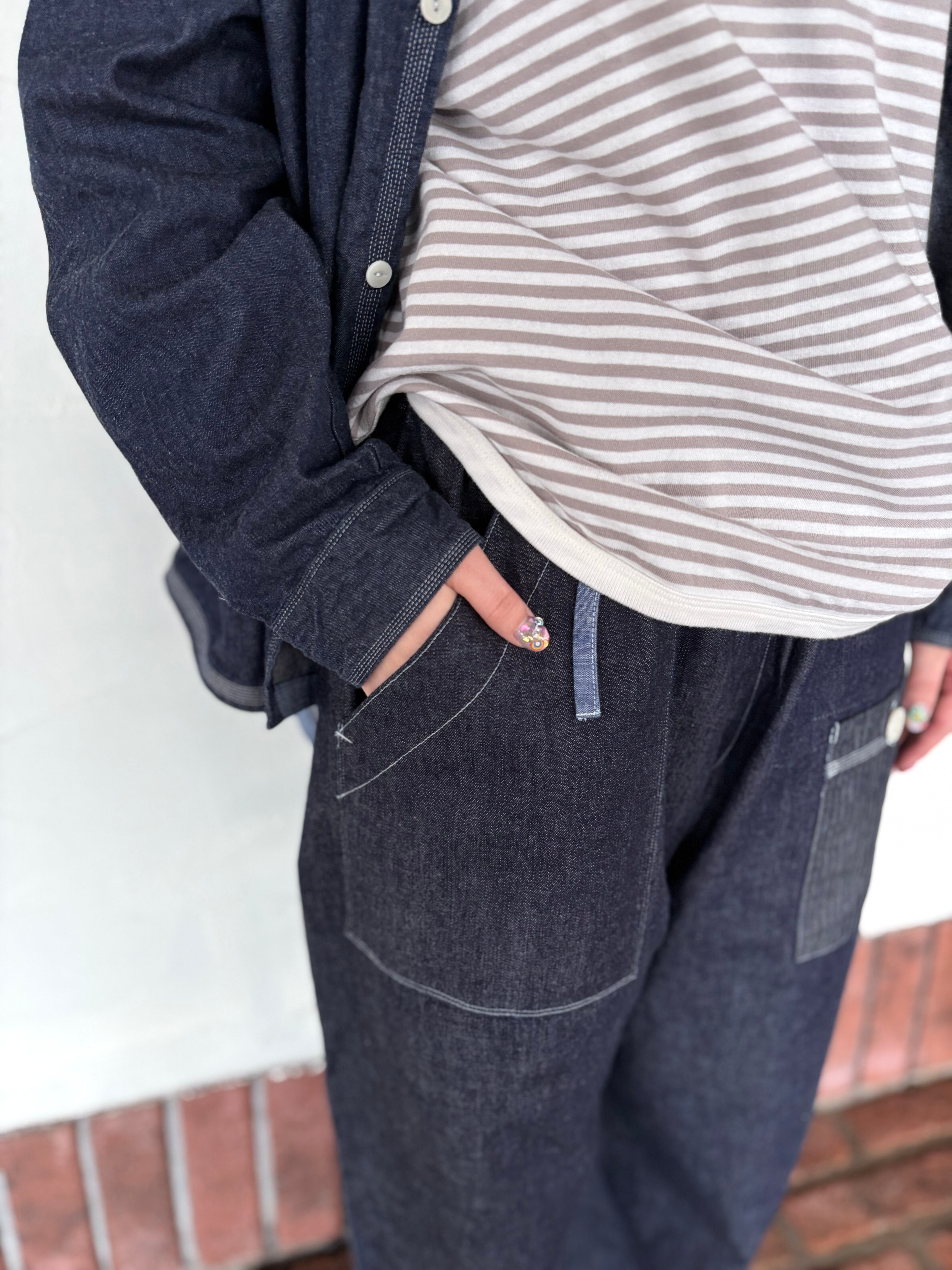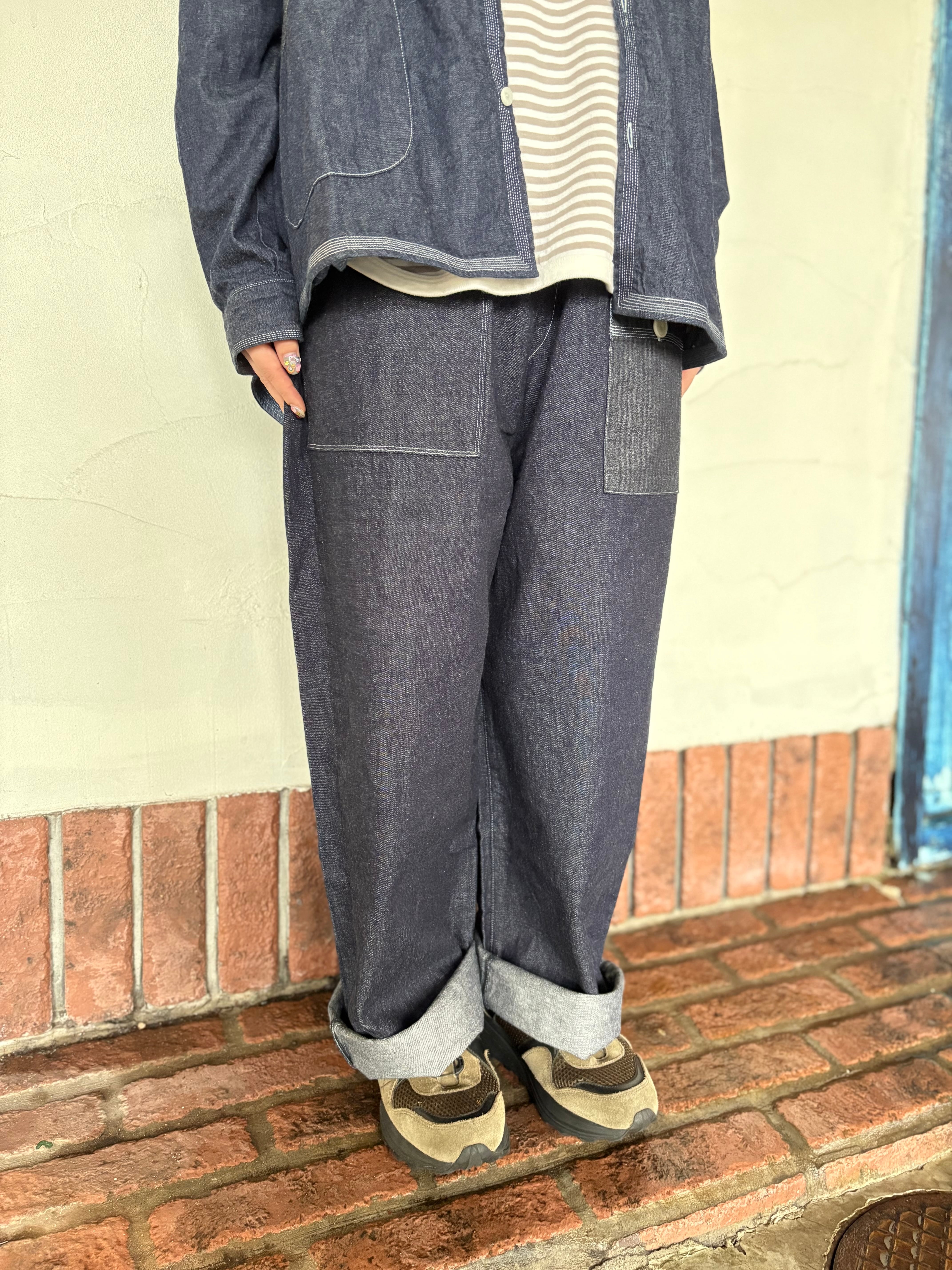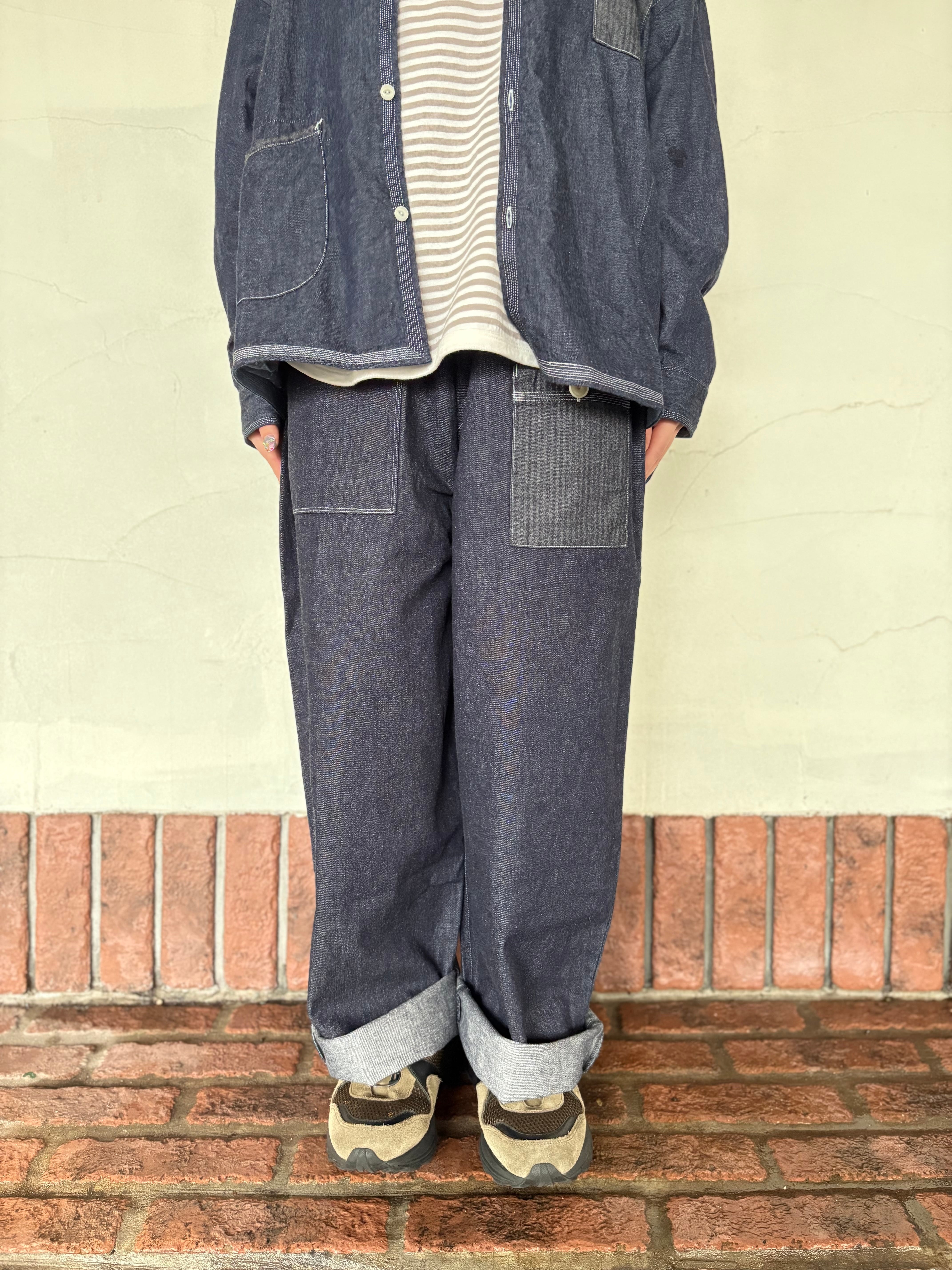 ステッチワークが目を惹く、快晴堂らしい遊び心いっぱいのデニムパンツ。