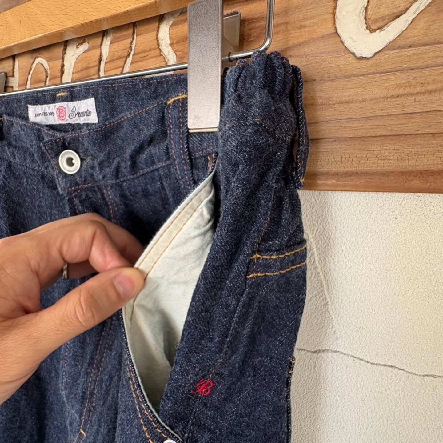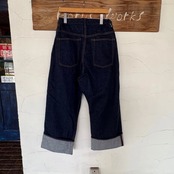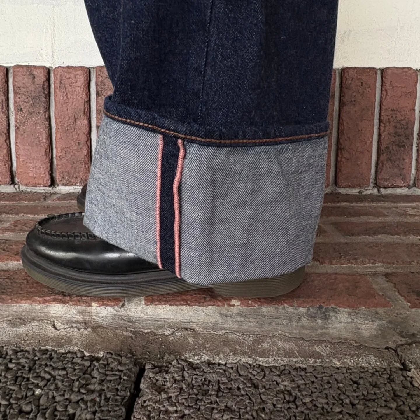 シルエットは柔らかく、クラシカルな雰囲気のある1枚。すっきりとしたストレートラインが脚を綺麗に見せてくれます。幅広なロールアップがこなれた感をプラスしてくれます。赤耳もポイントです(^^)