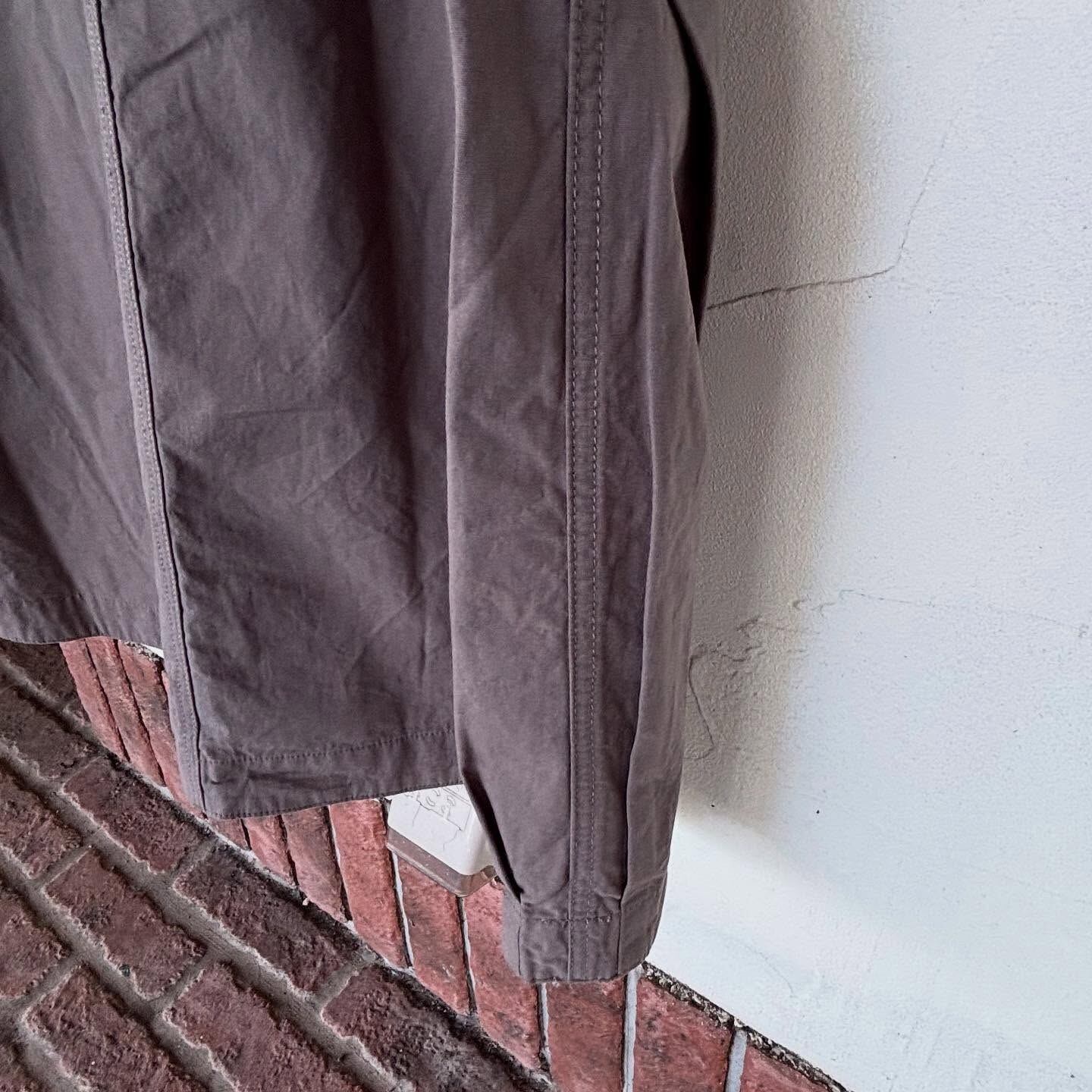 程よいゆとりの身幅でフロントとサイド、バックにそれぞれポケットが付き、アクセントになっています。背面にストラップが付いているので広がり過ぎずすっきり着られます。裾の両サイドに入ったタックがふんわりまるい特徴的なシルエットに。