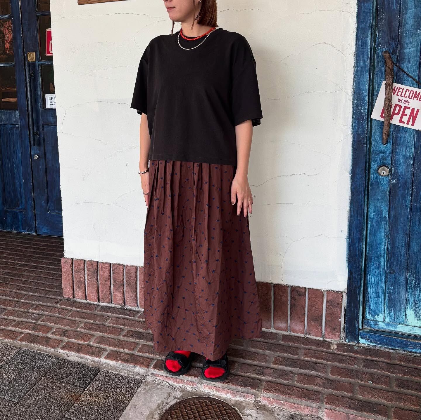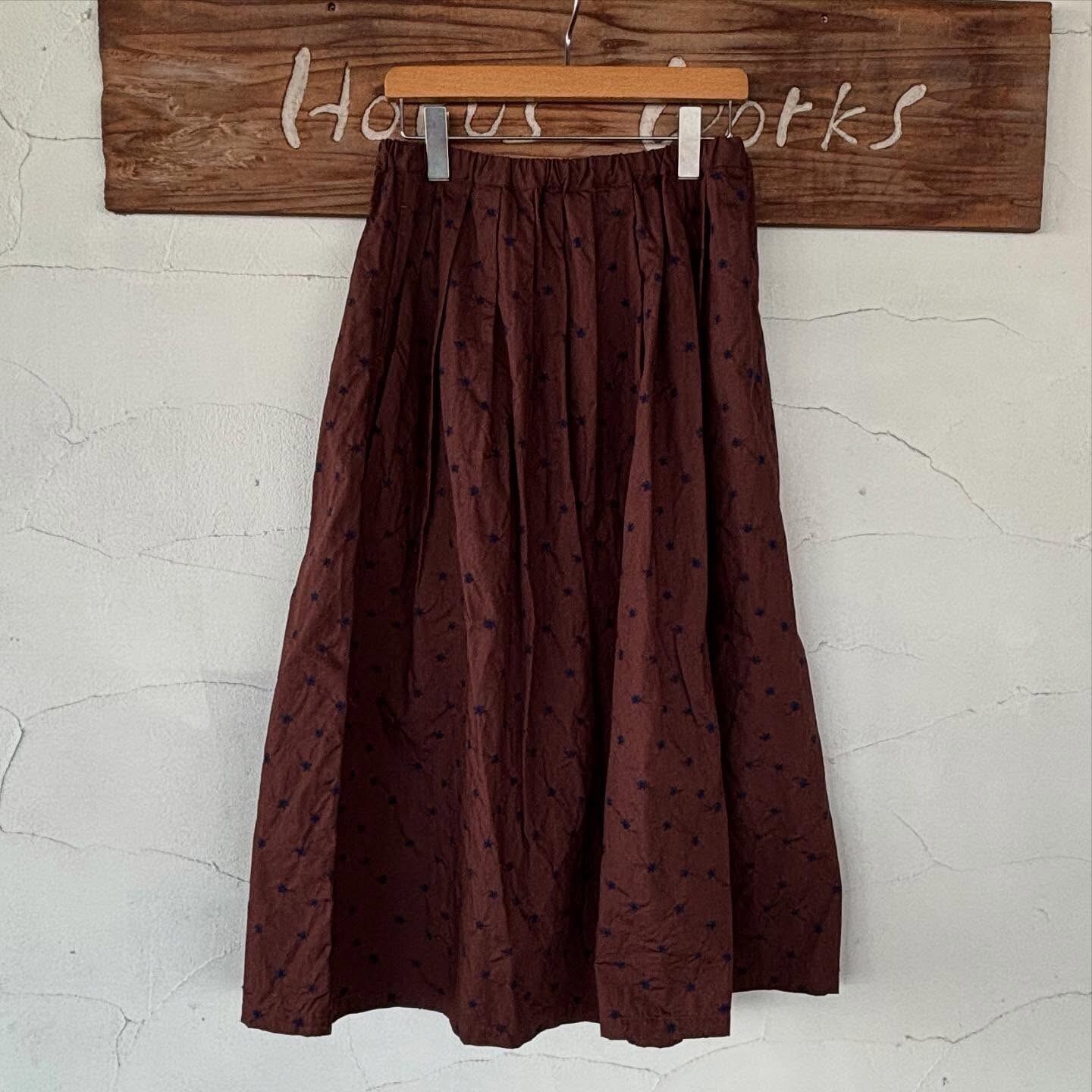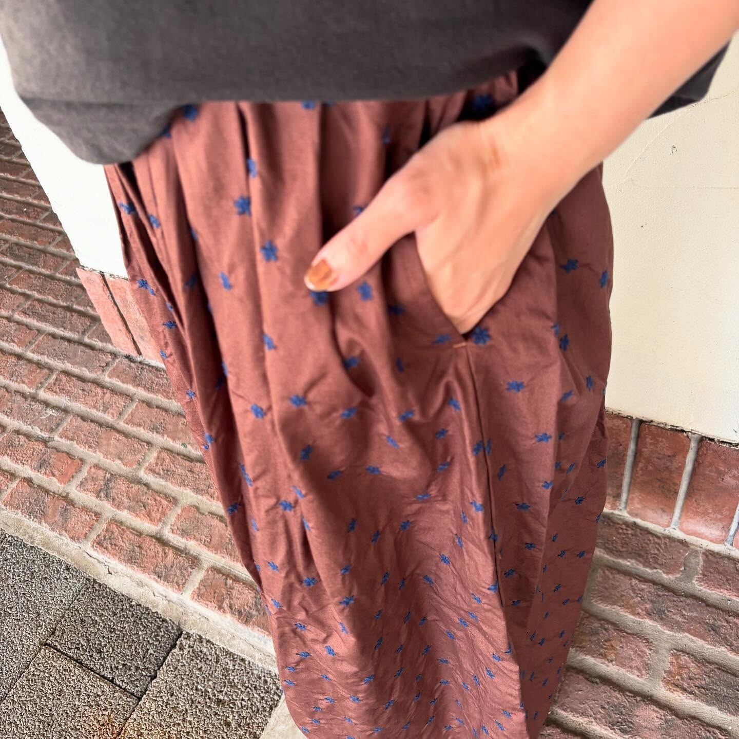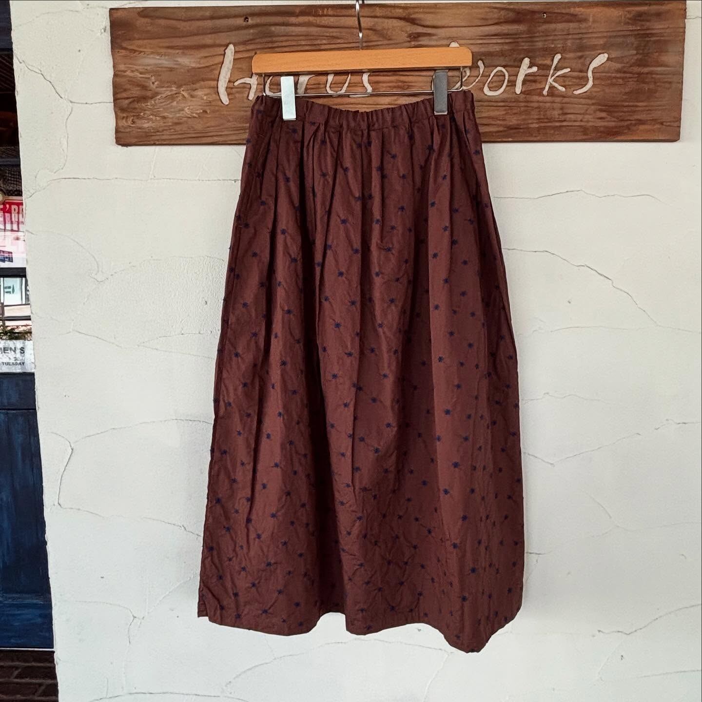 ウエストにぐるりとゴムを利かせ、内側には調節可能な紐付きのスカートです。