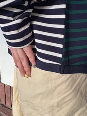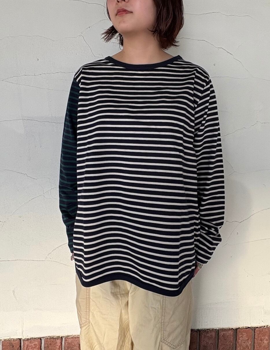 左右で袖の色が違う、遊び心あるパネルボーダー。