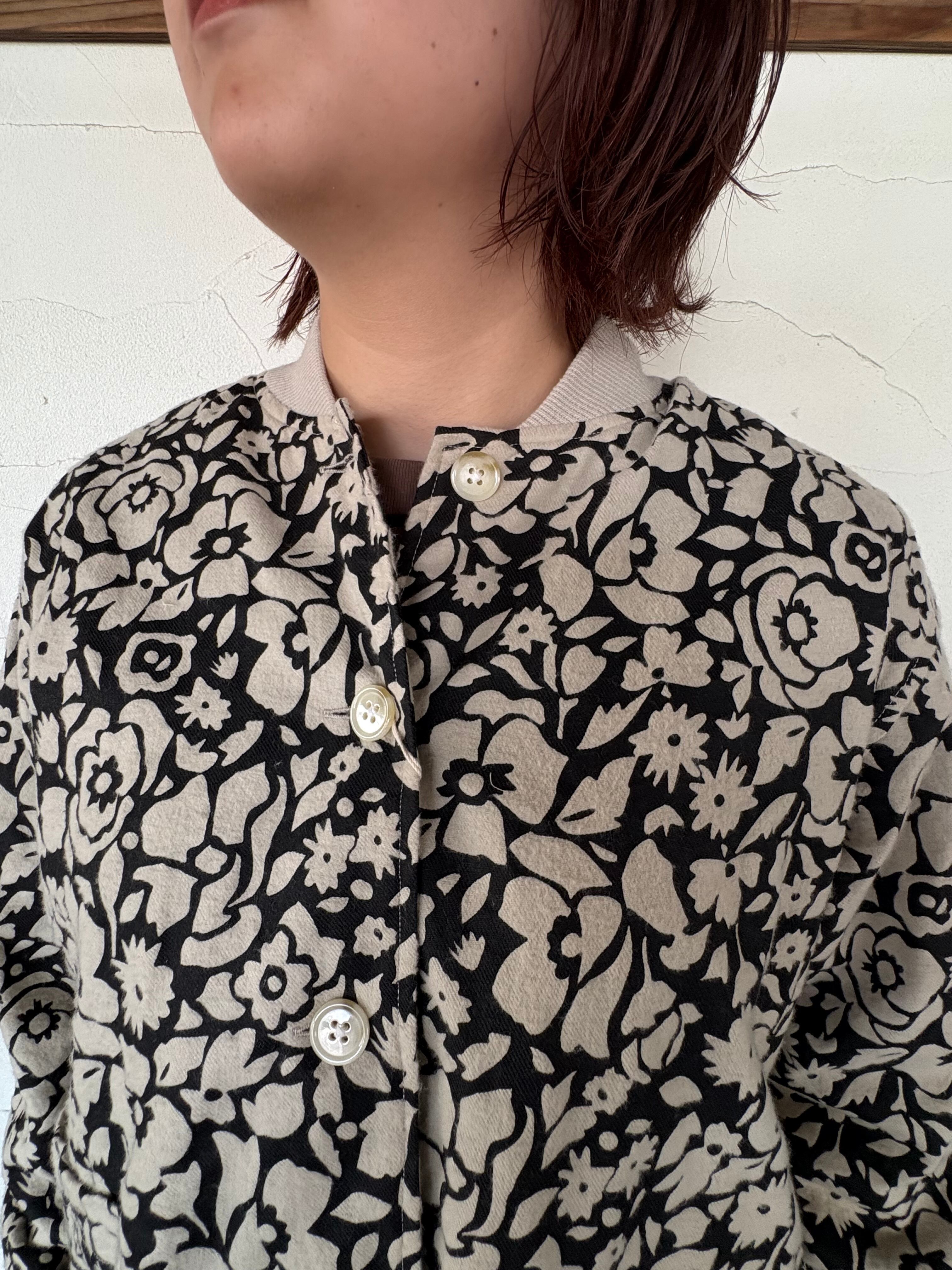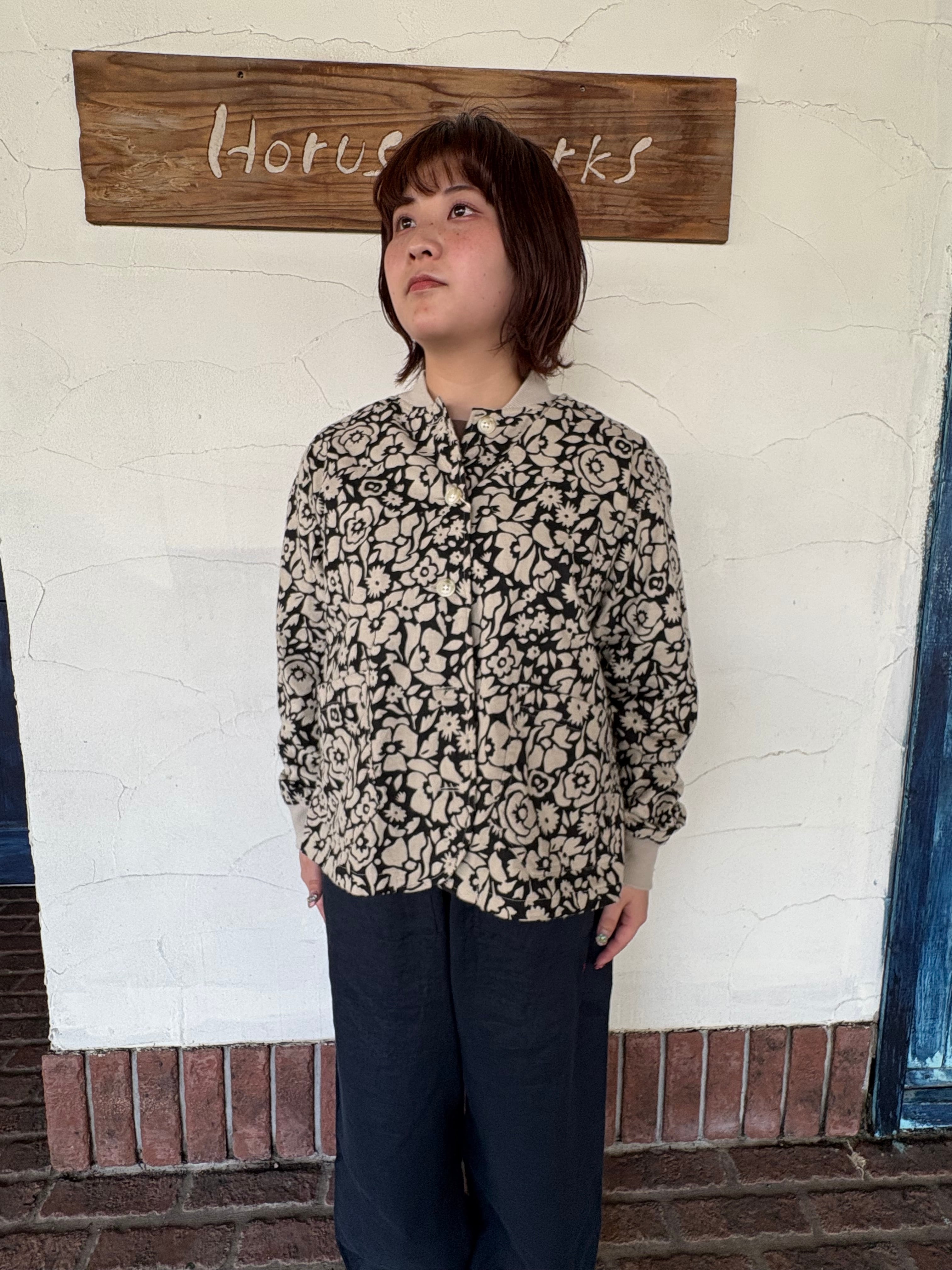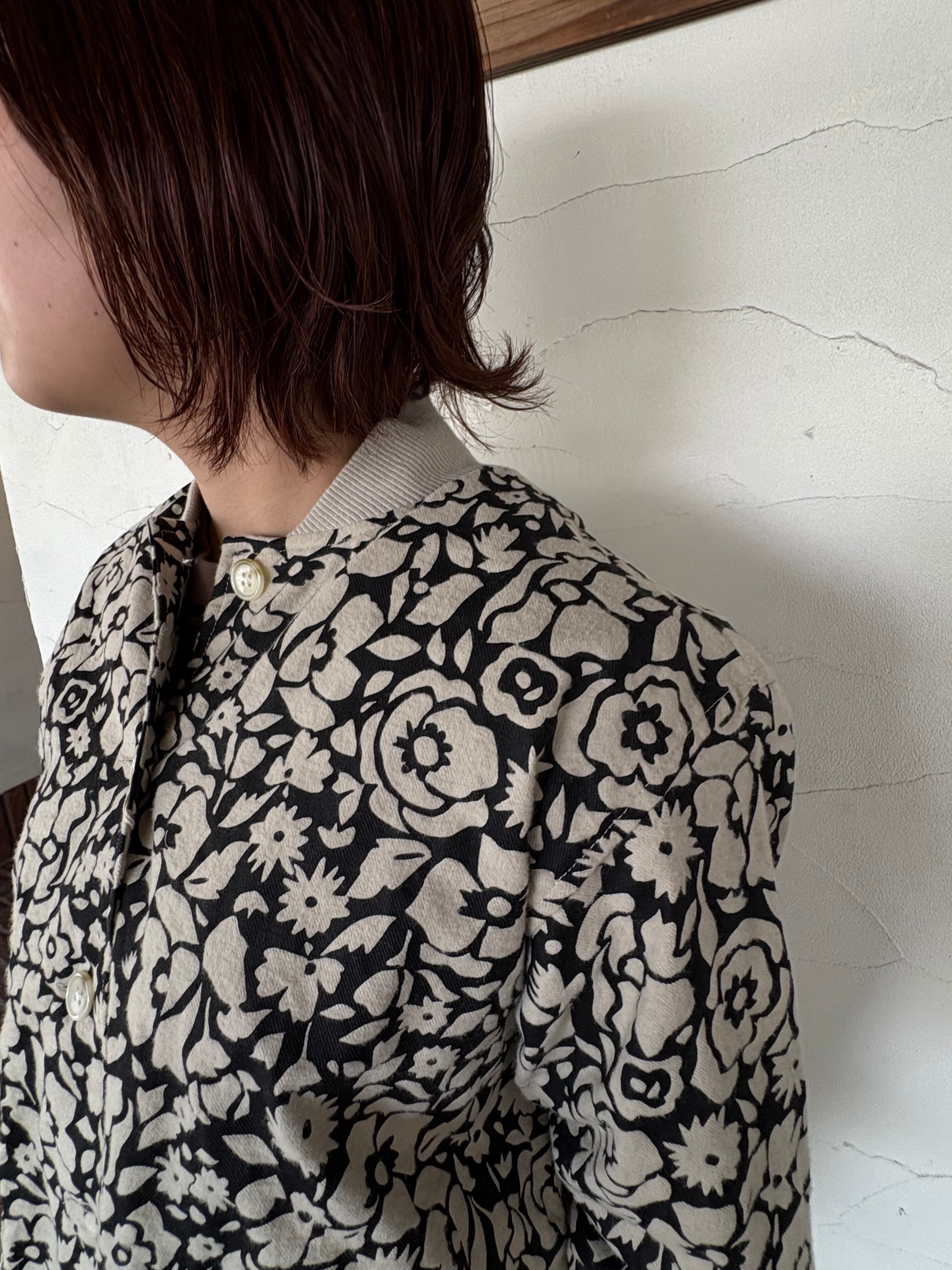 遊び心ある総柄が目を惹く リブネックワークジャケット。