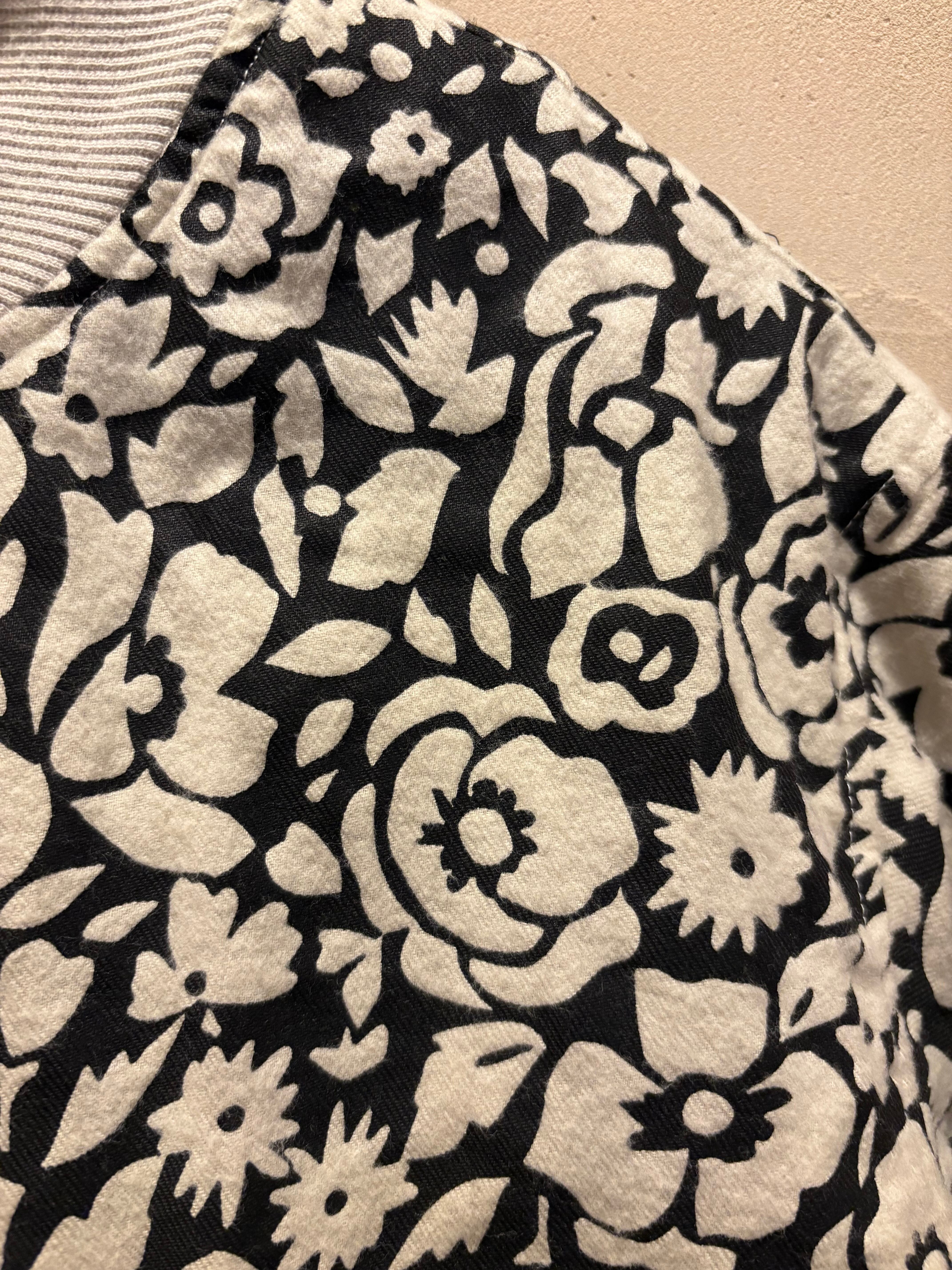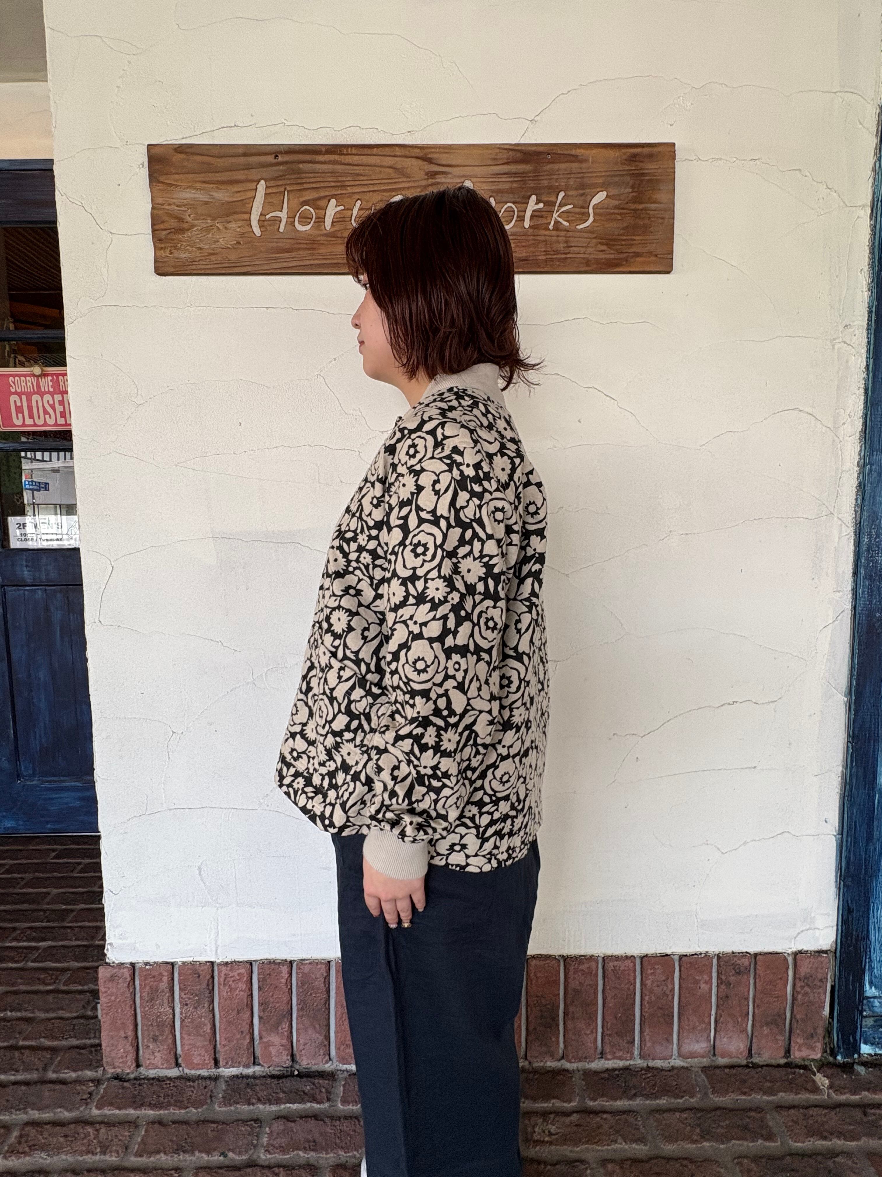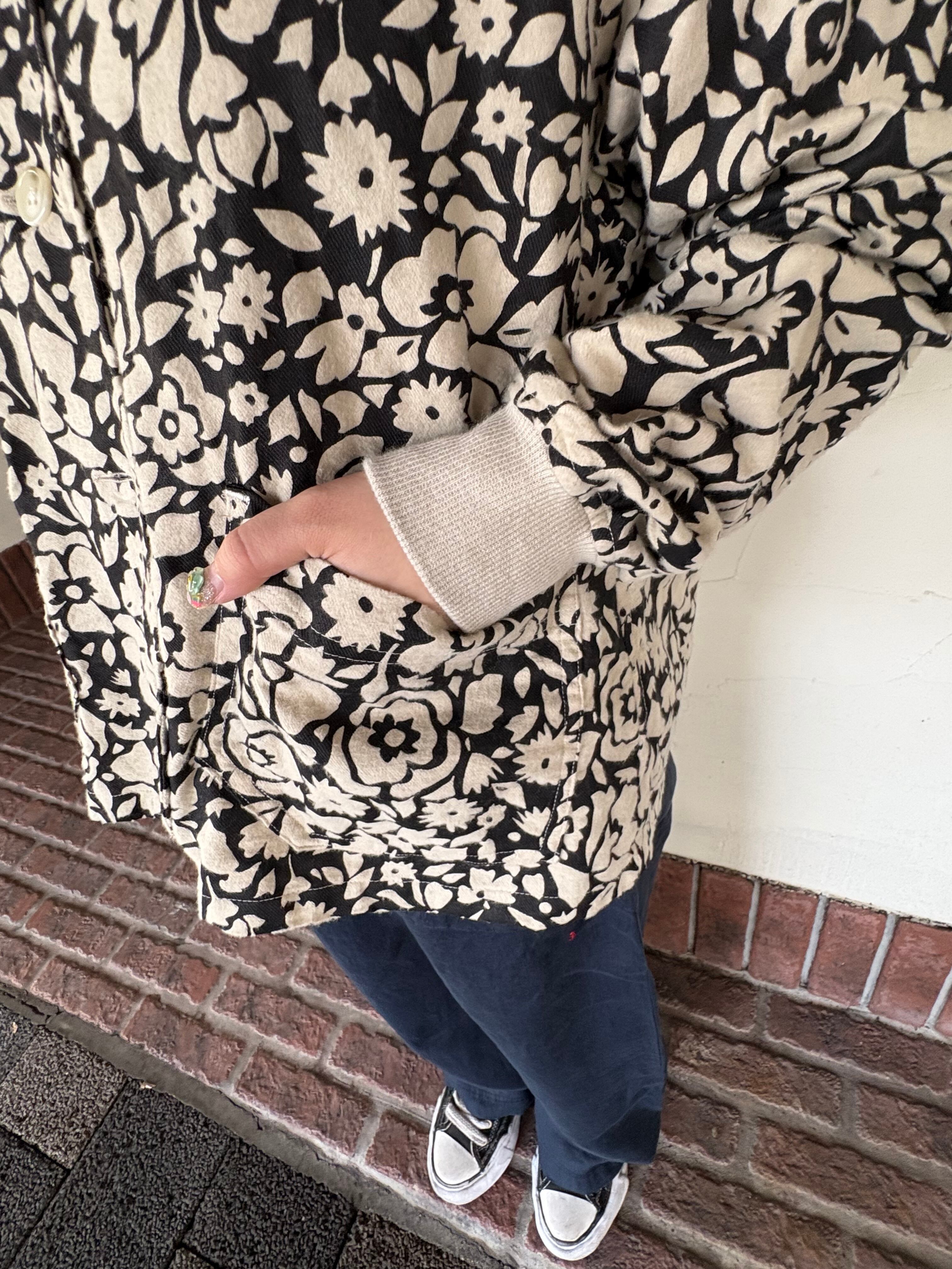 遊び心ある総柄が目を惹く リブネックワークジャケット。