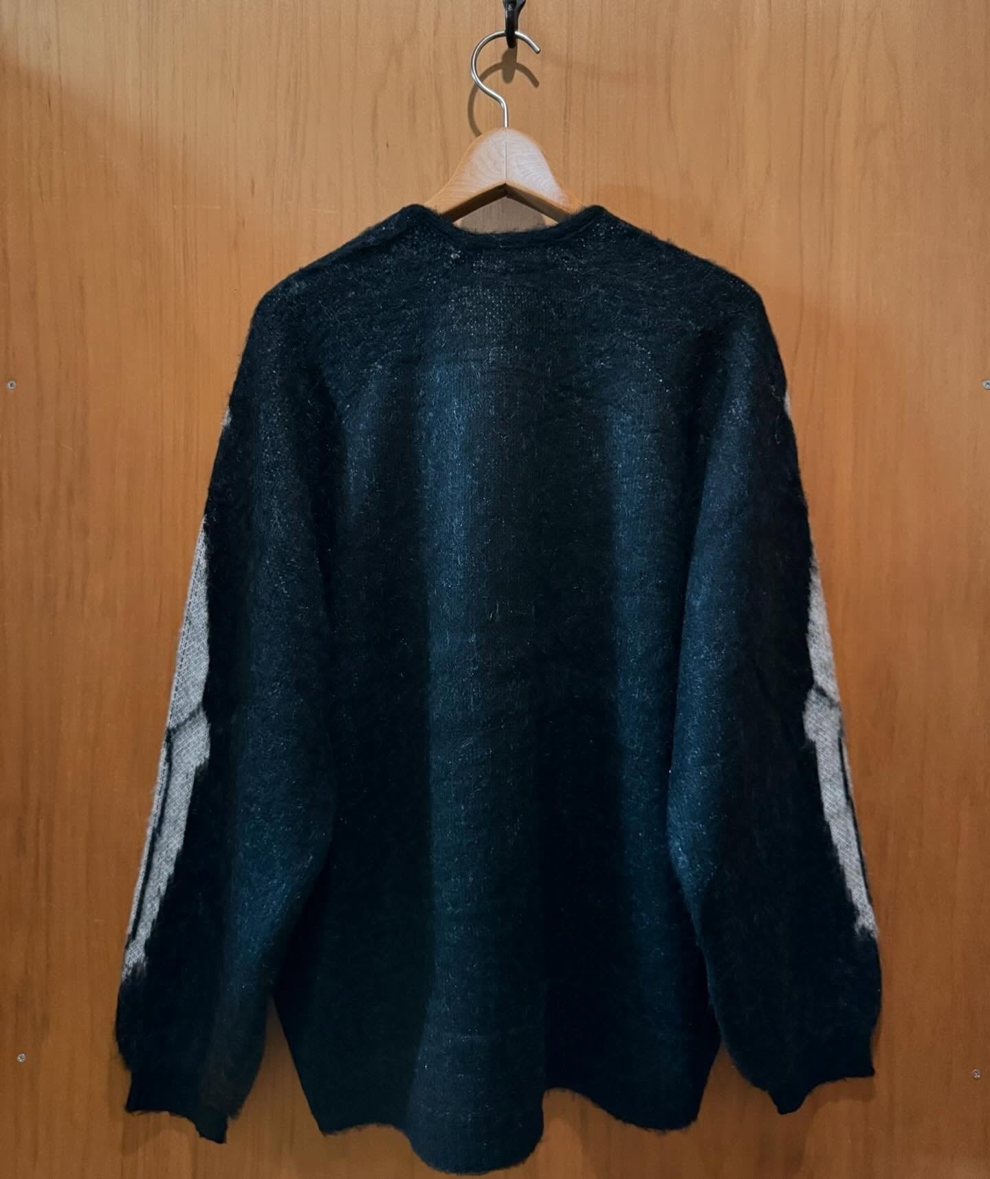 モヘア調アクリル糸のシングルジャガード編みで、軽量ながら度目を詰めてしっかりした厚さを出し古着の様な風合いを再現。