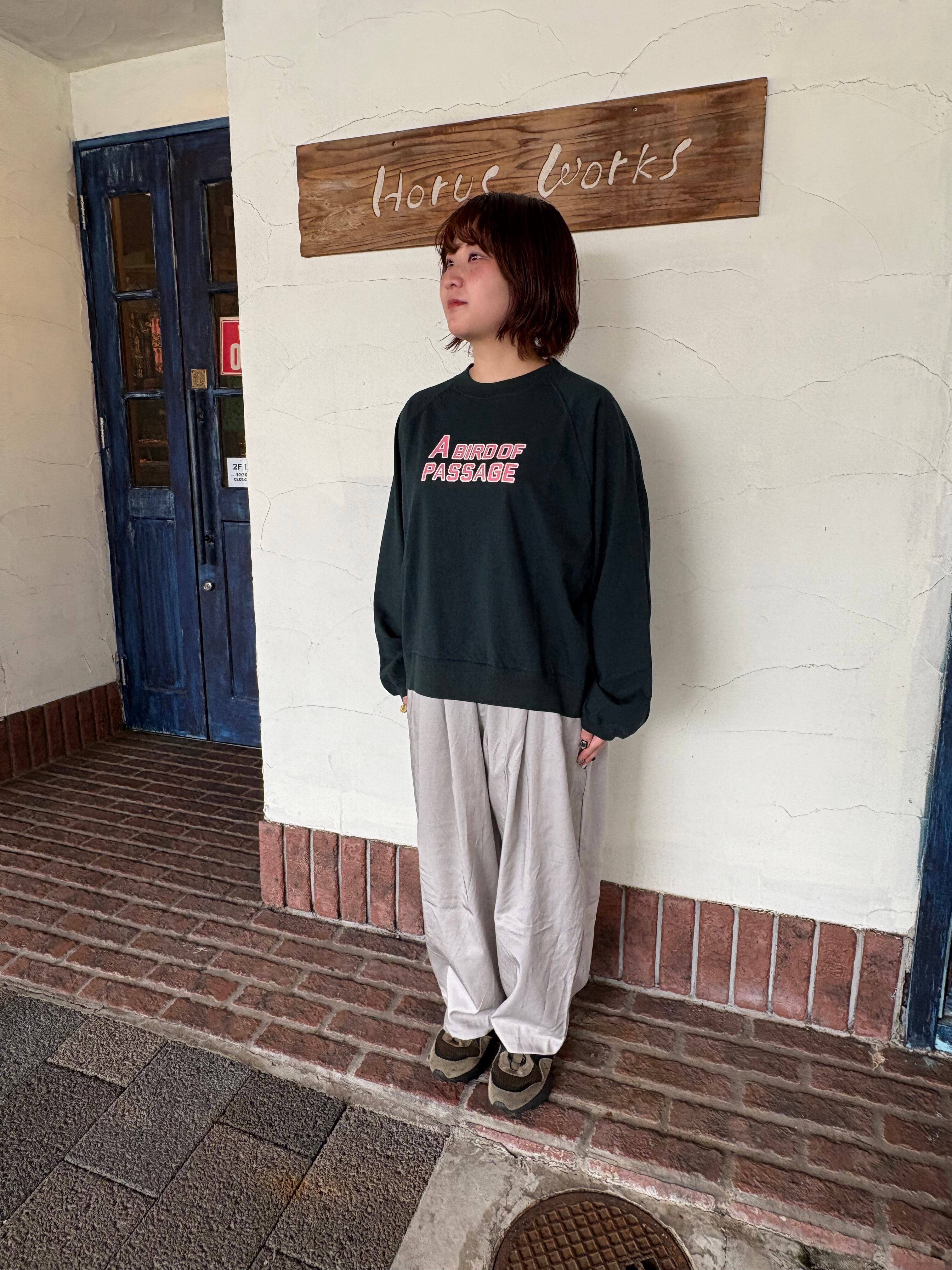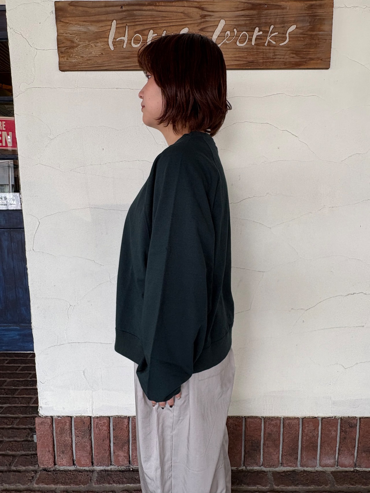 程よいゆるさのシルエットとラグランスリーブで、肩まわりも楽ちんです。