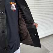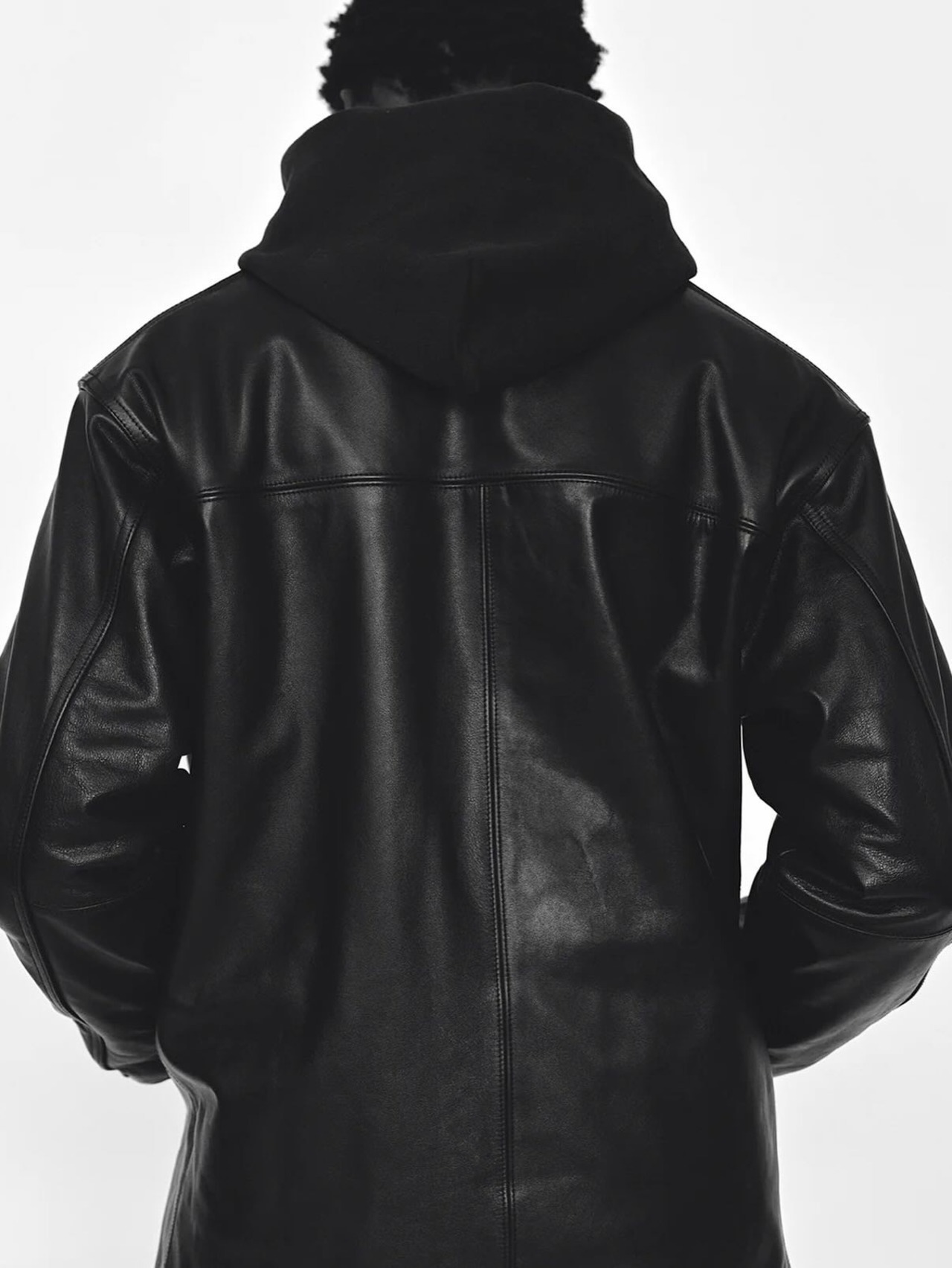 ゆったりとしたシルエットと、ボリュームのあるカウレザーが生む重厚な存在感が魅力で、羽織るだけでスタイリングに深みが生まれます。