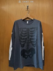 フロントに大胆な骨格プリントと、両サイドの腕にも骨のプリントが施されており、ヴィンテージのTシャツであったデザインを落とし込んだ一着。