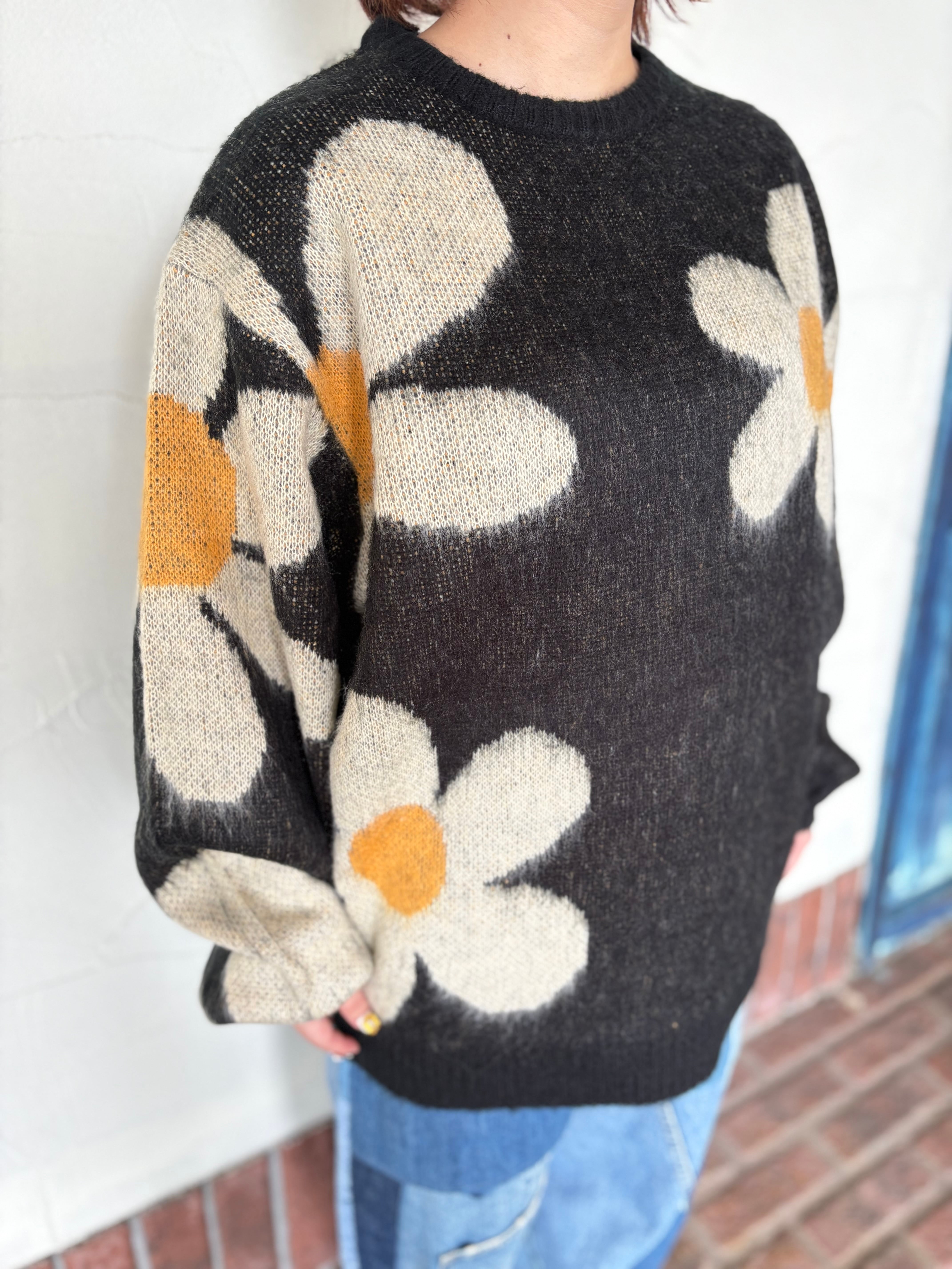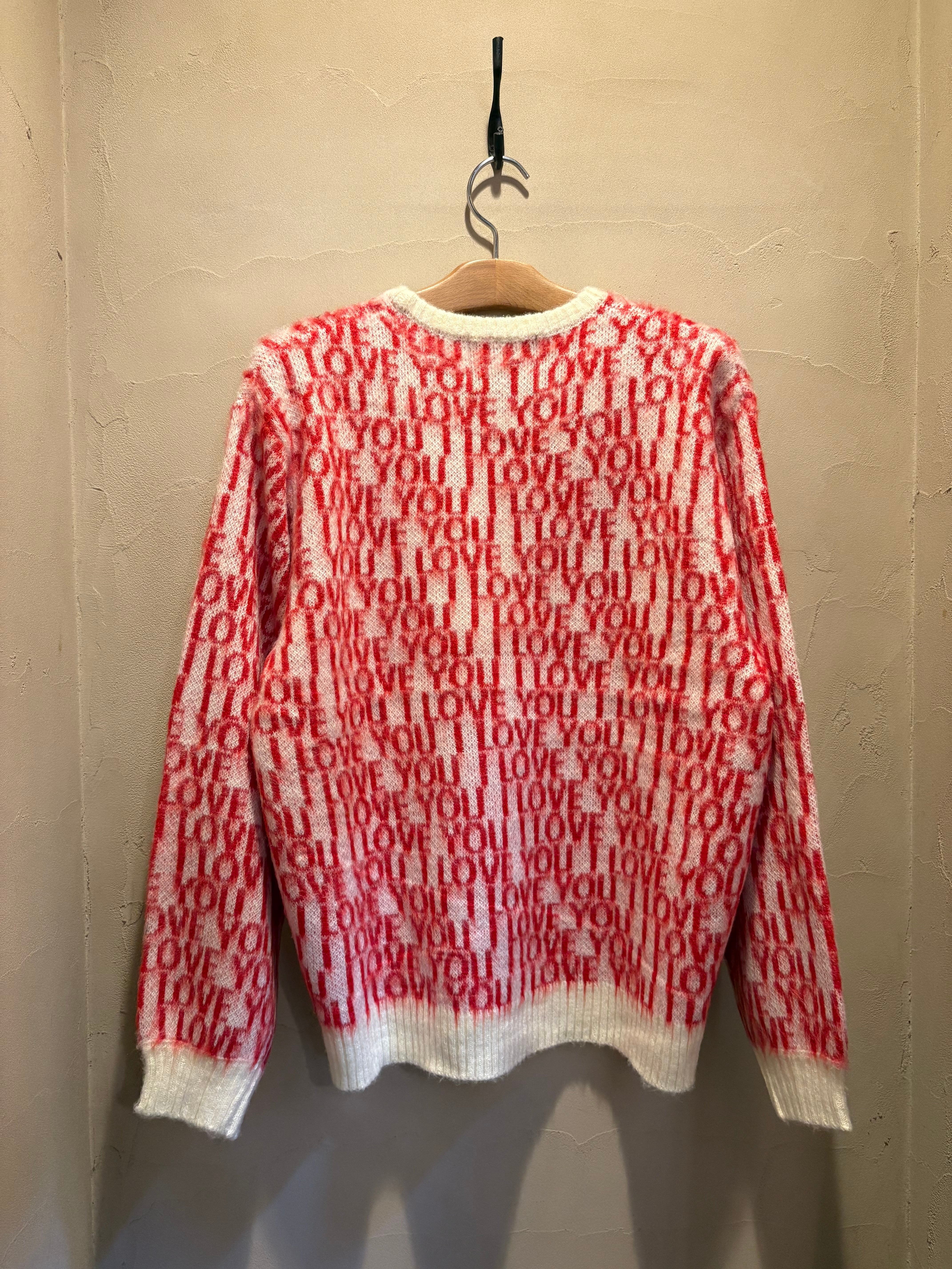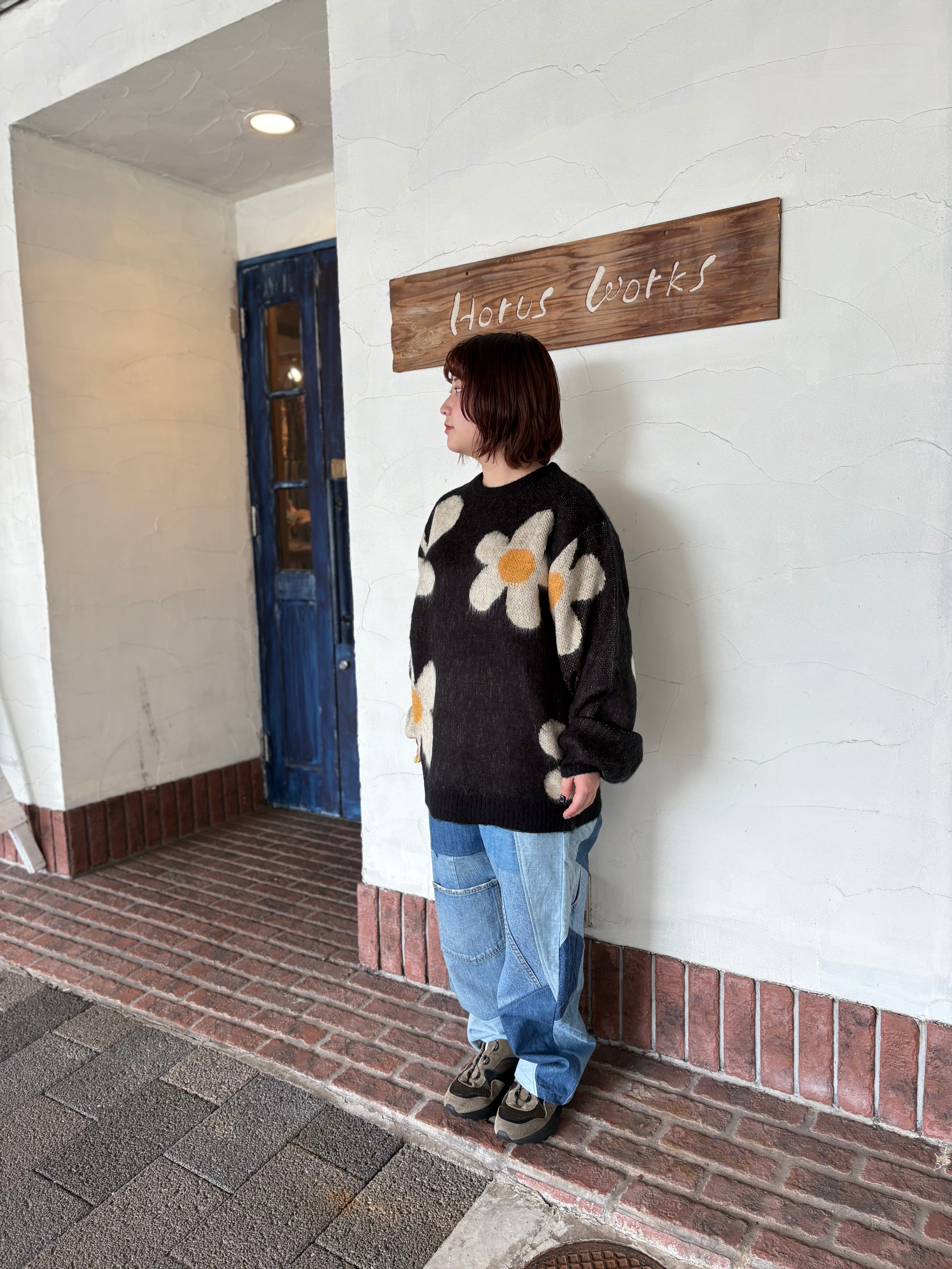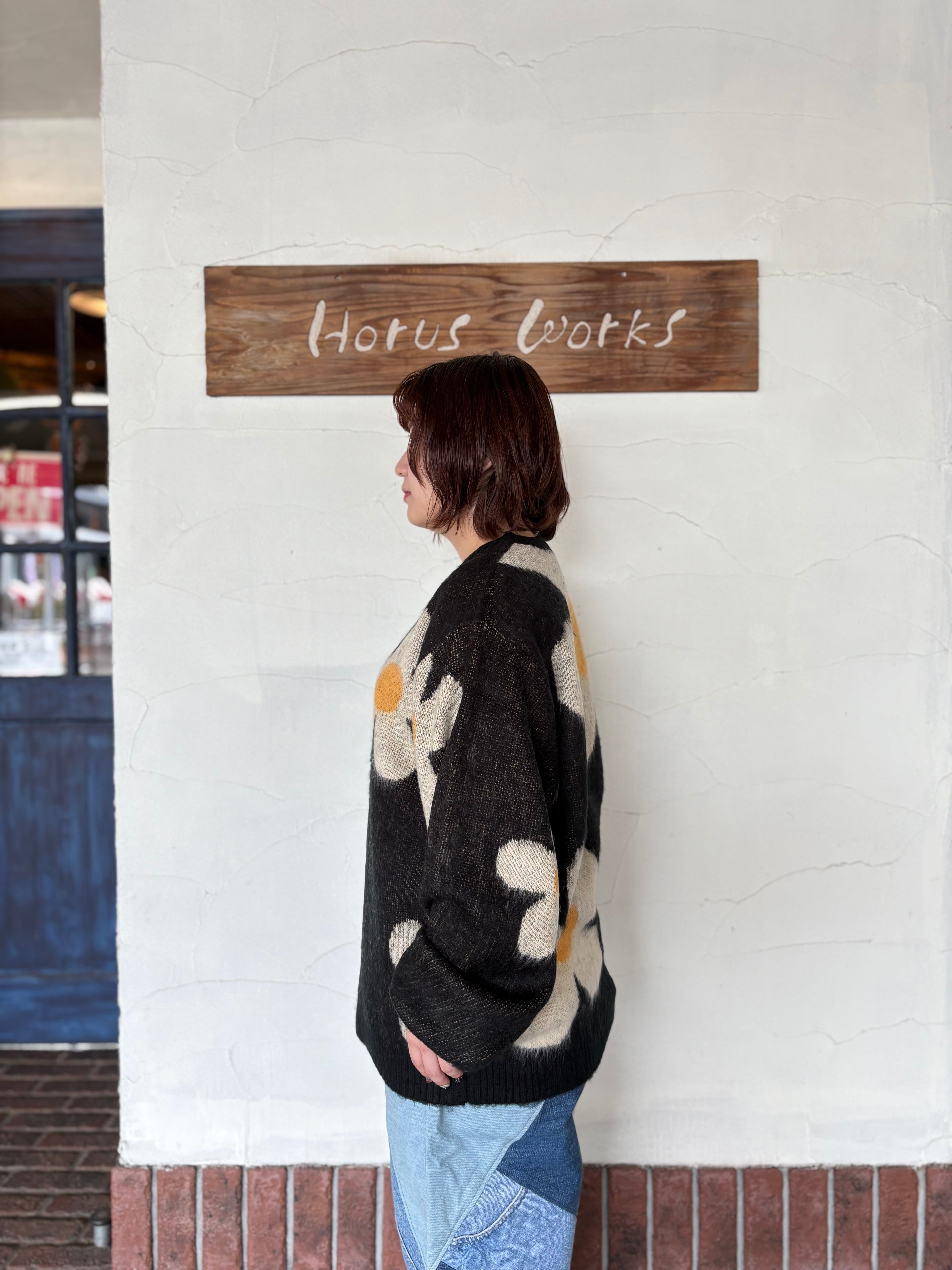 モヘア調アクリル糸でヴィンテージモチーフの様々な柄をジャガードで表現しています。