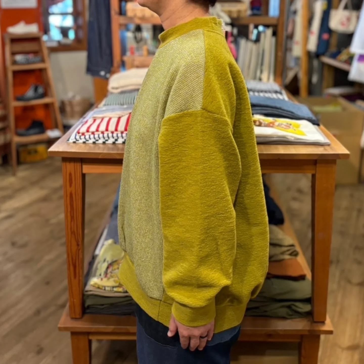 ニットのような表面感と、カットソーの扱いやすさを併せもった生地です