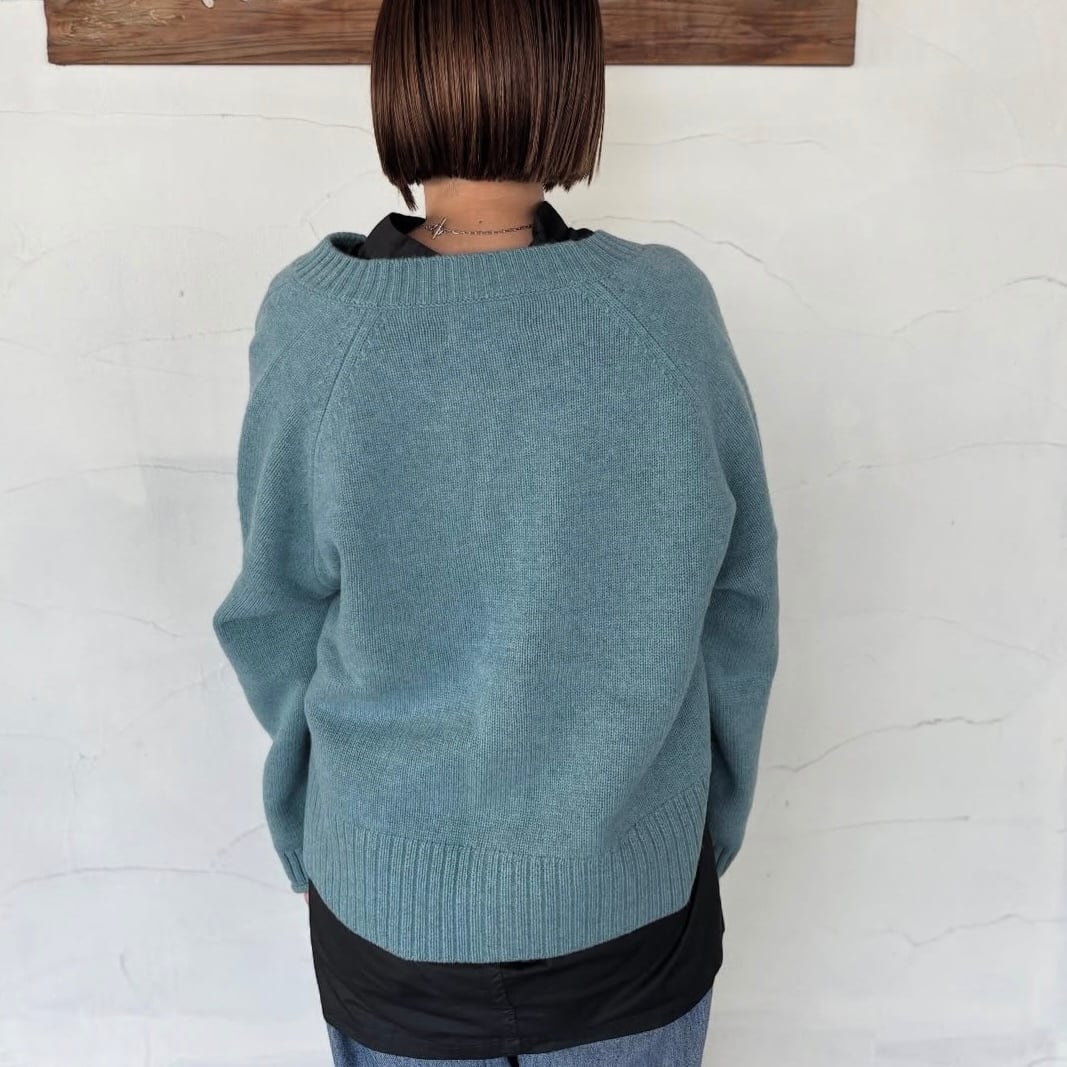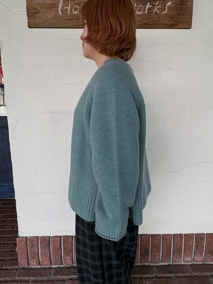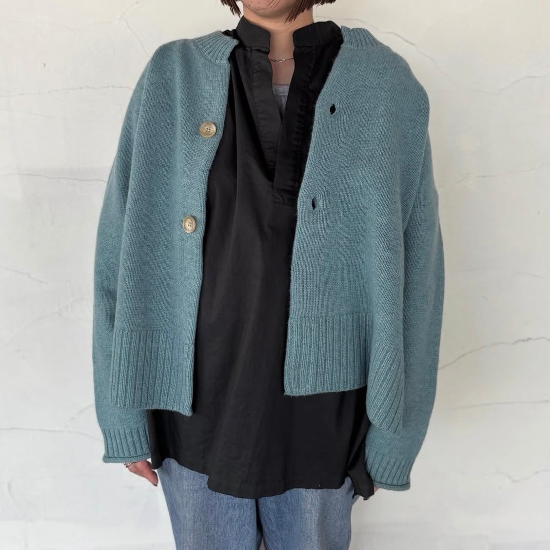 ゆったりとしたドロップショルダーと、すっきり着られるショート丈のバランスが絶妙。