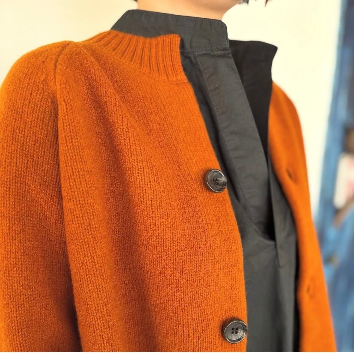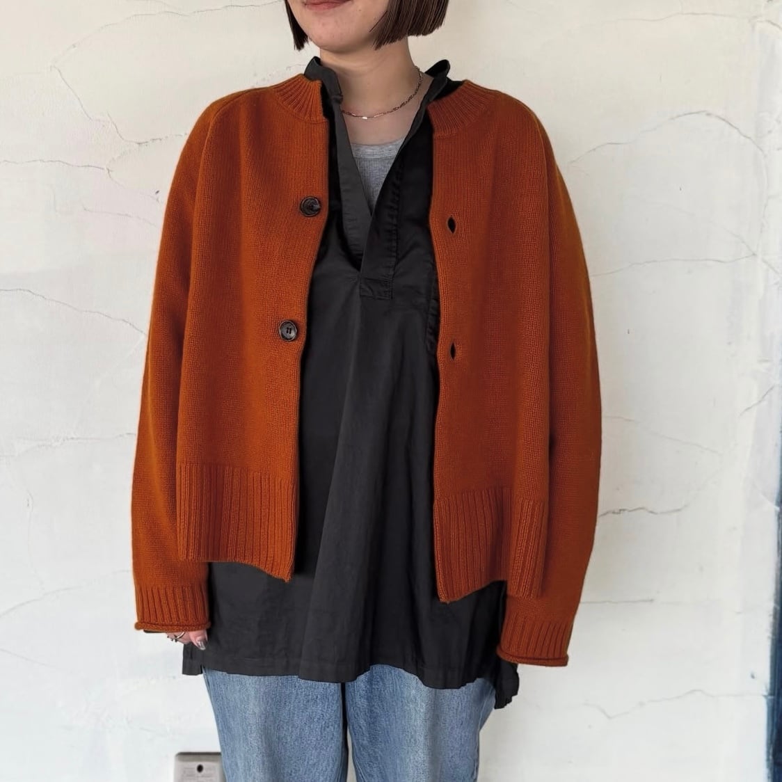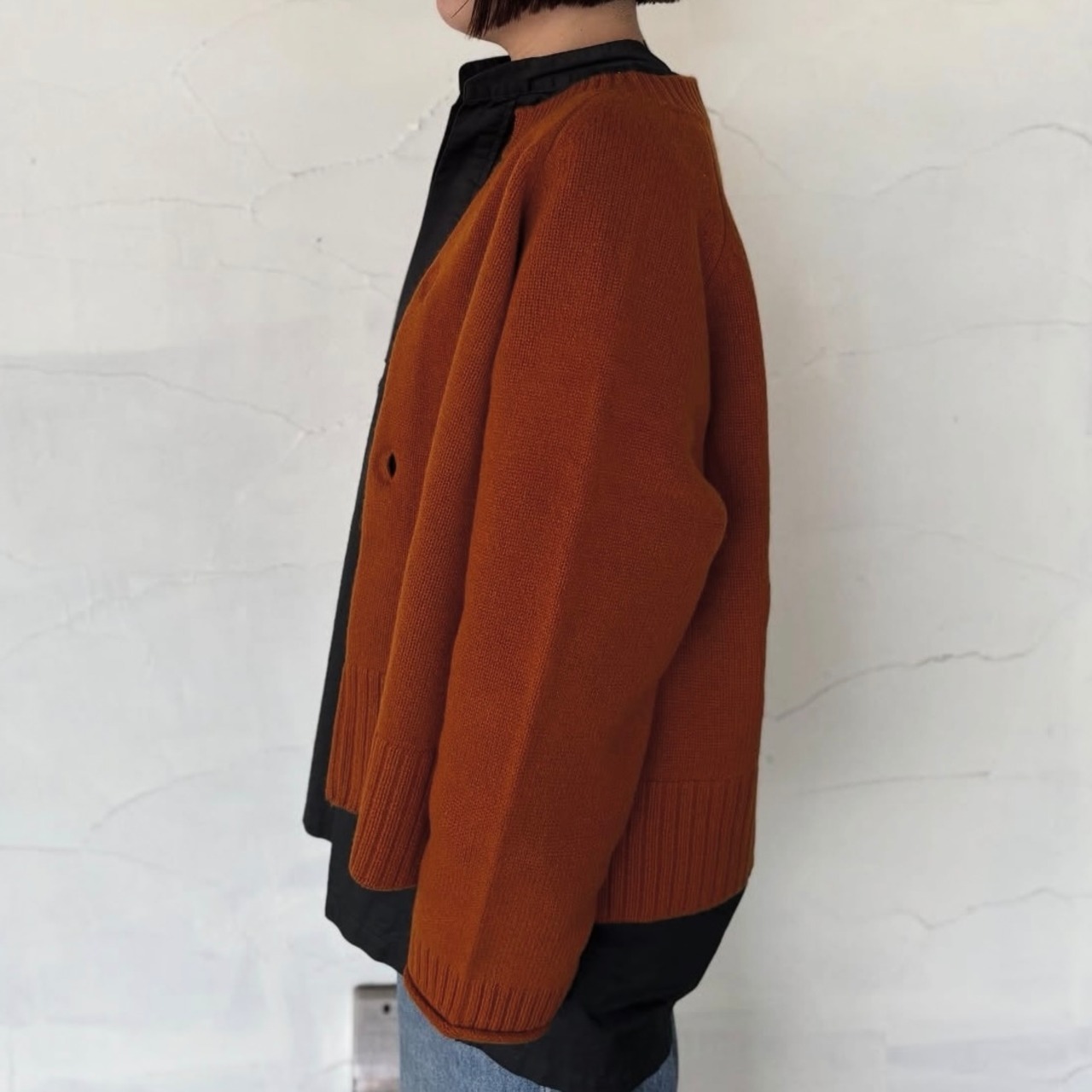 ベーシックながらも旬を感じさせる、深みのあるテラコッタブラウンが魅力。落ち着いたトーンが肌馴染みもよく、どんなインナーにもすっと馴染みます。