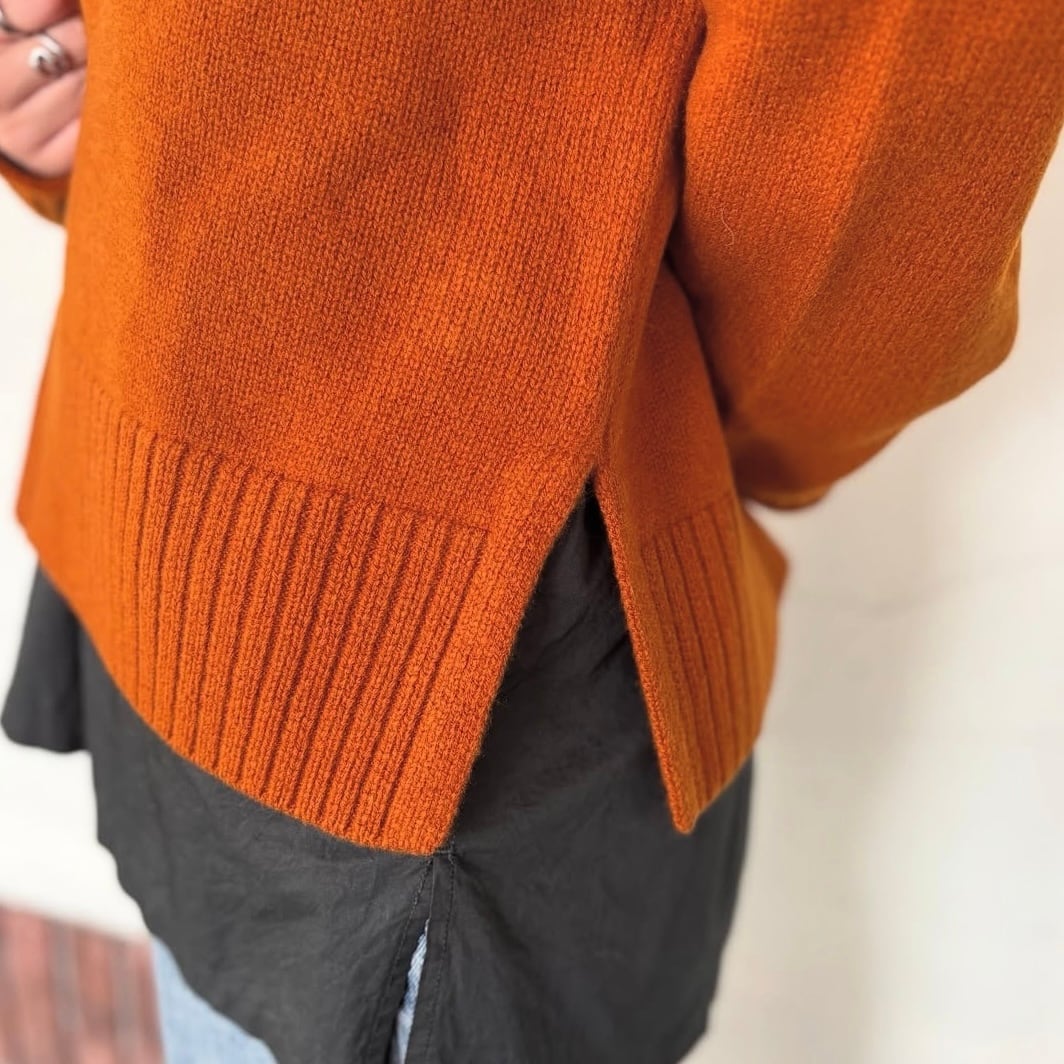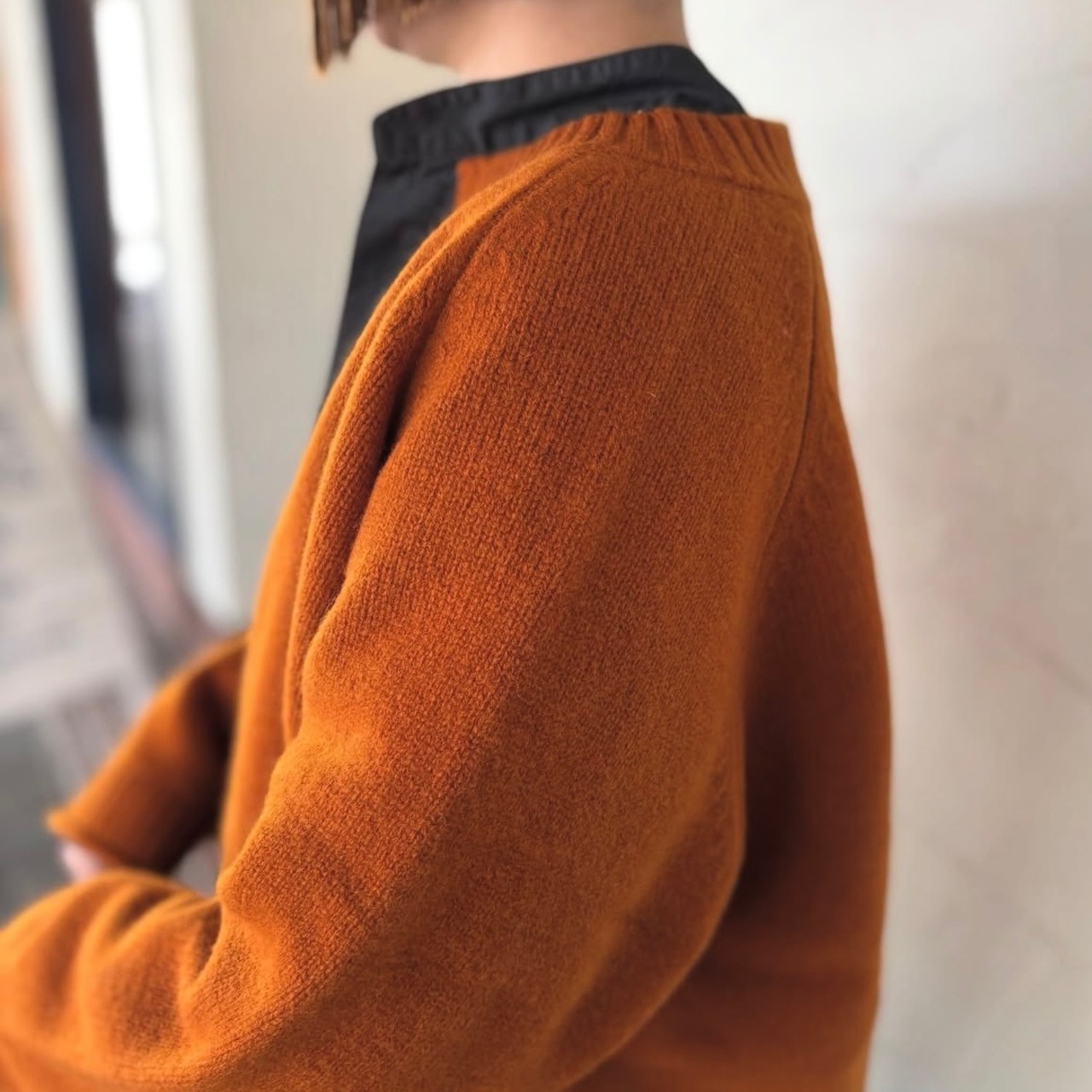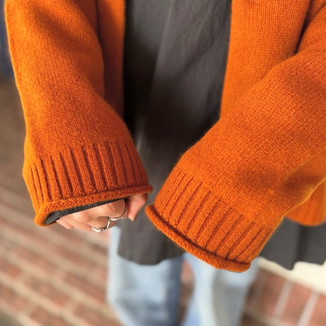 ベーシックながらも旬を感じさせる、深みのあるテラコッタブラウンが魅力。落ち着いたトーンが肌馴染みもよく、どんなインナーにもすっと馴染みます。