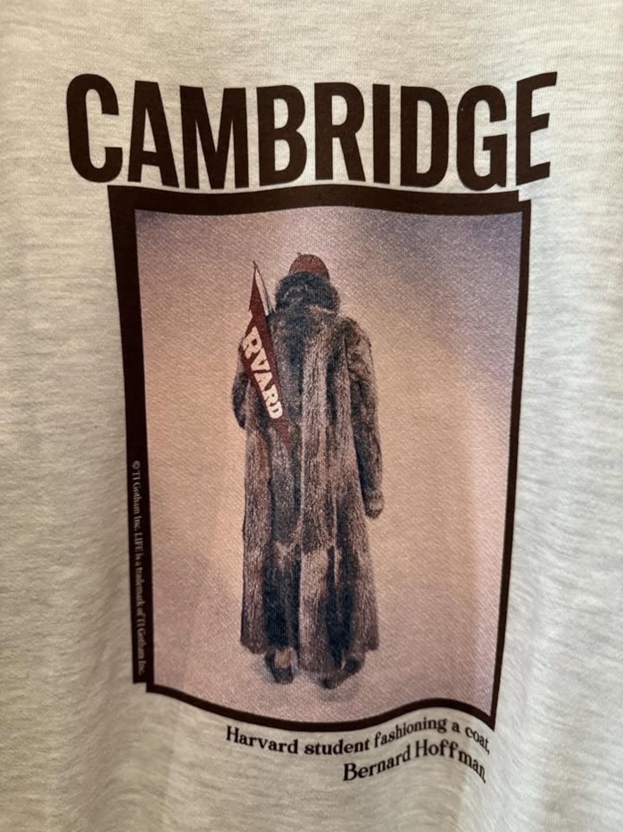 マサチューセッツ州ケンブリッジ"CAMBRIDGE"のロゴと当時のLIFEの記事のポートレートをプリントしています。