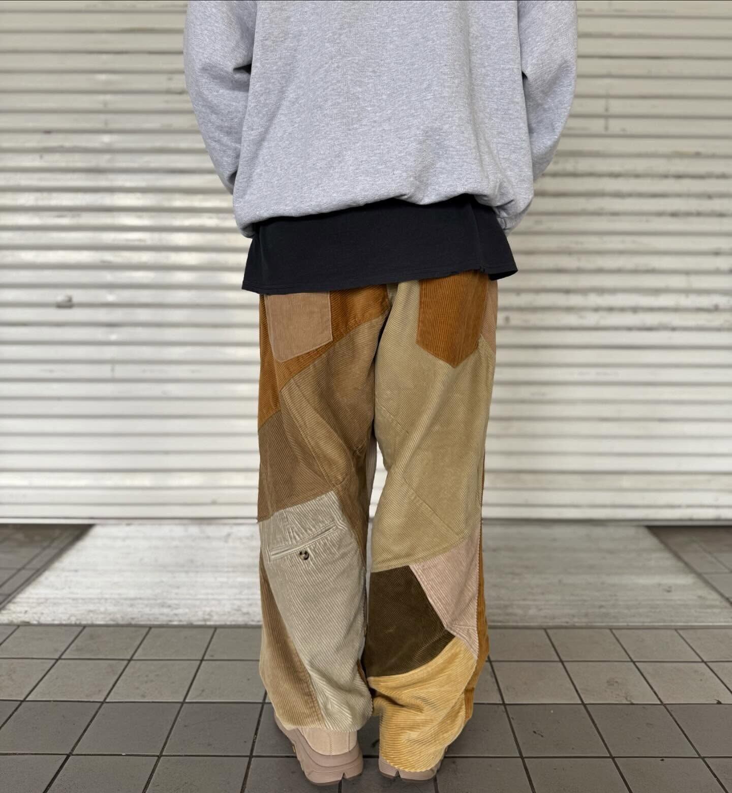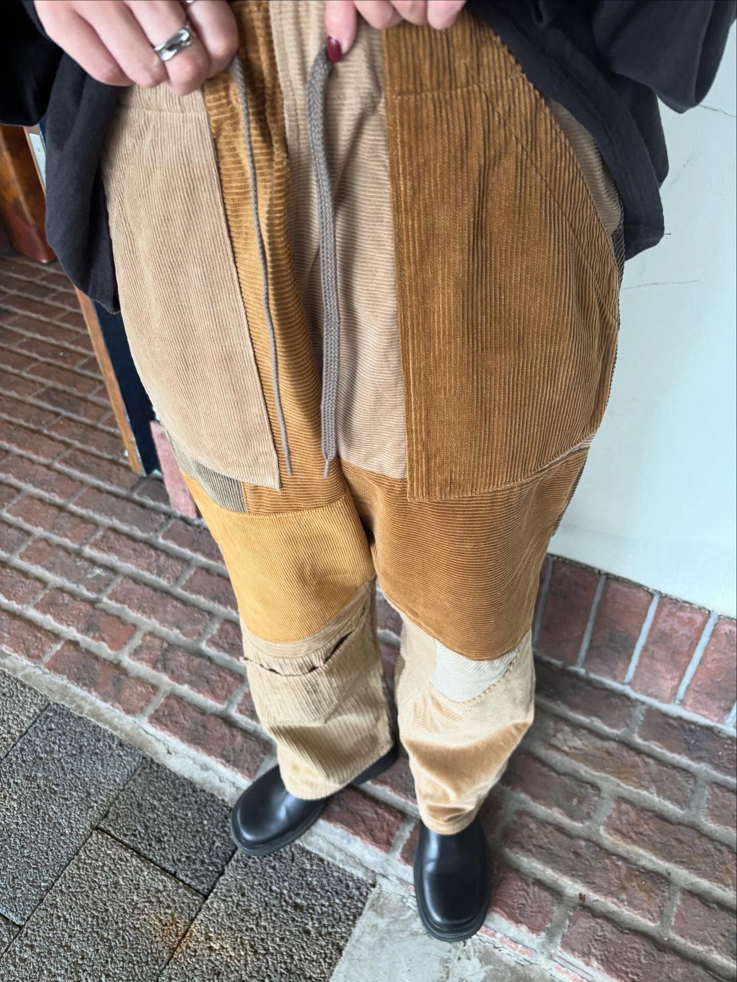 ユーズドのコーデュロイウェアを解体し、再構築したイージーパンツ。
