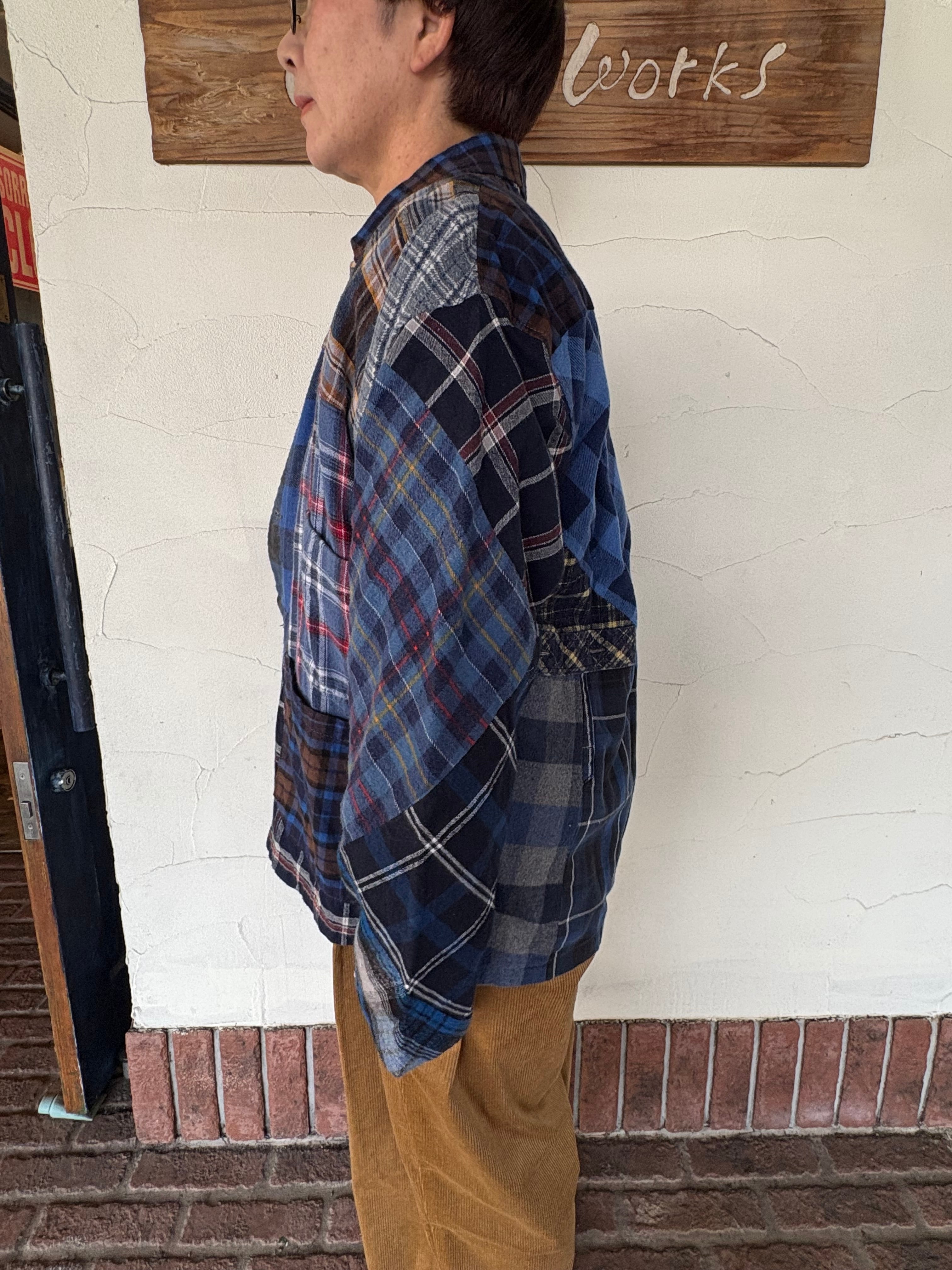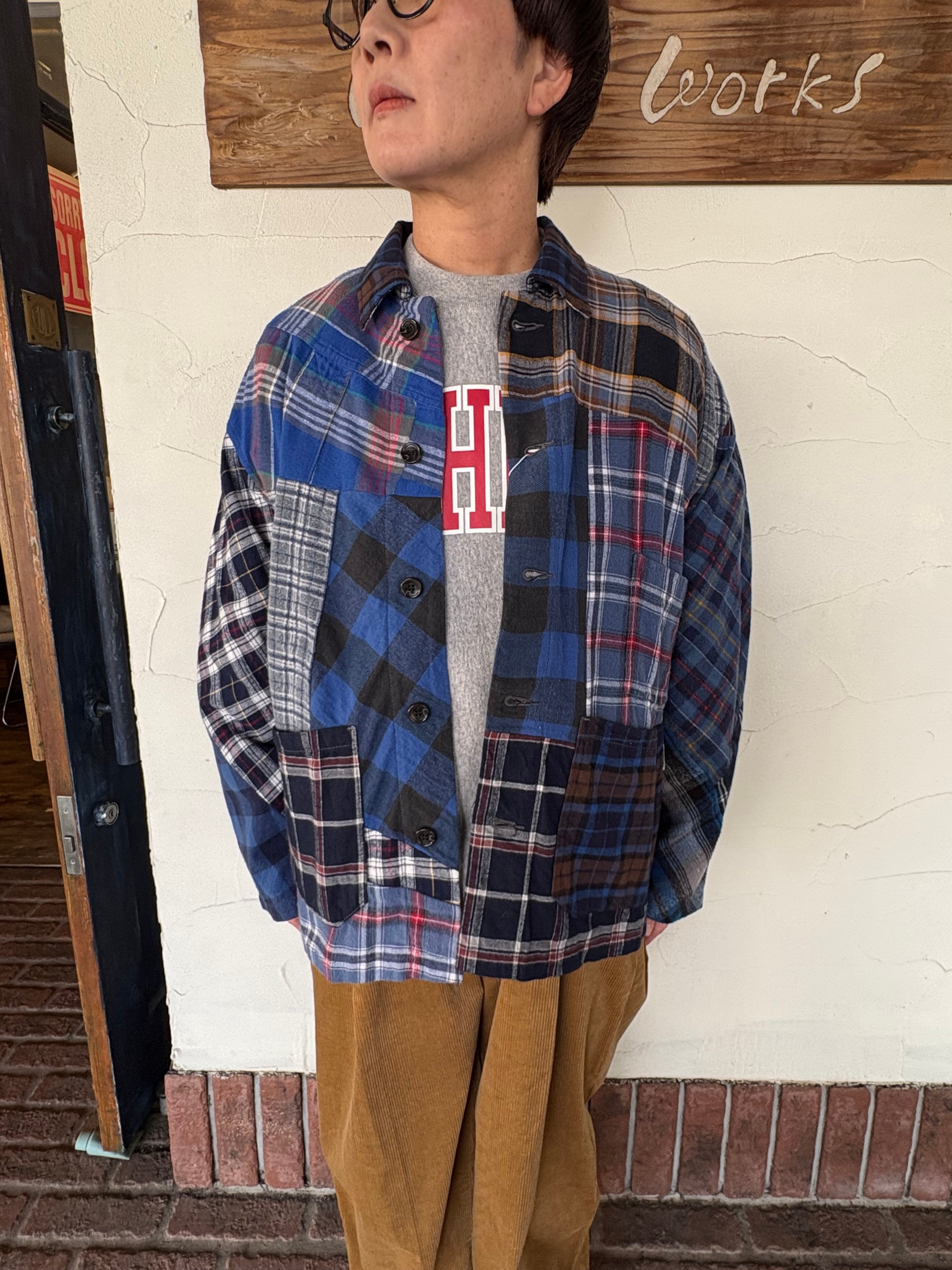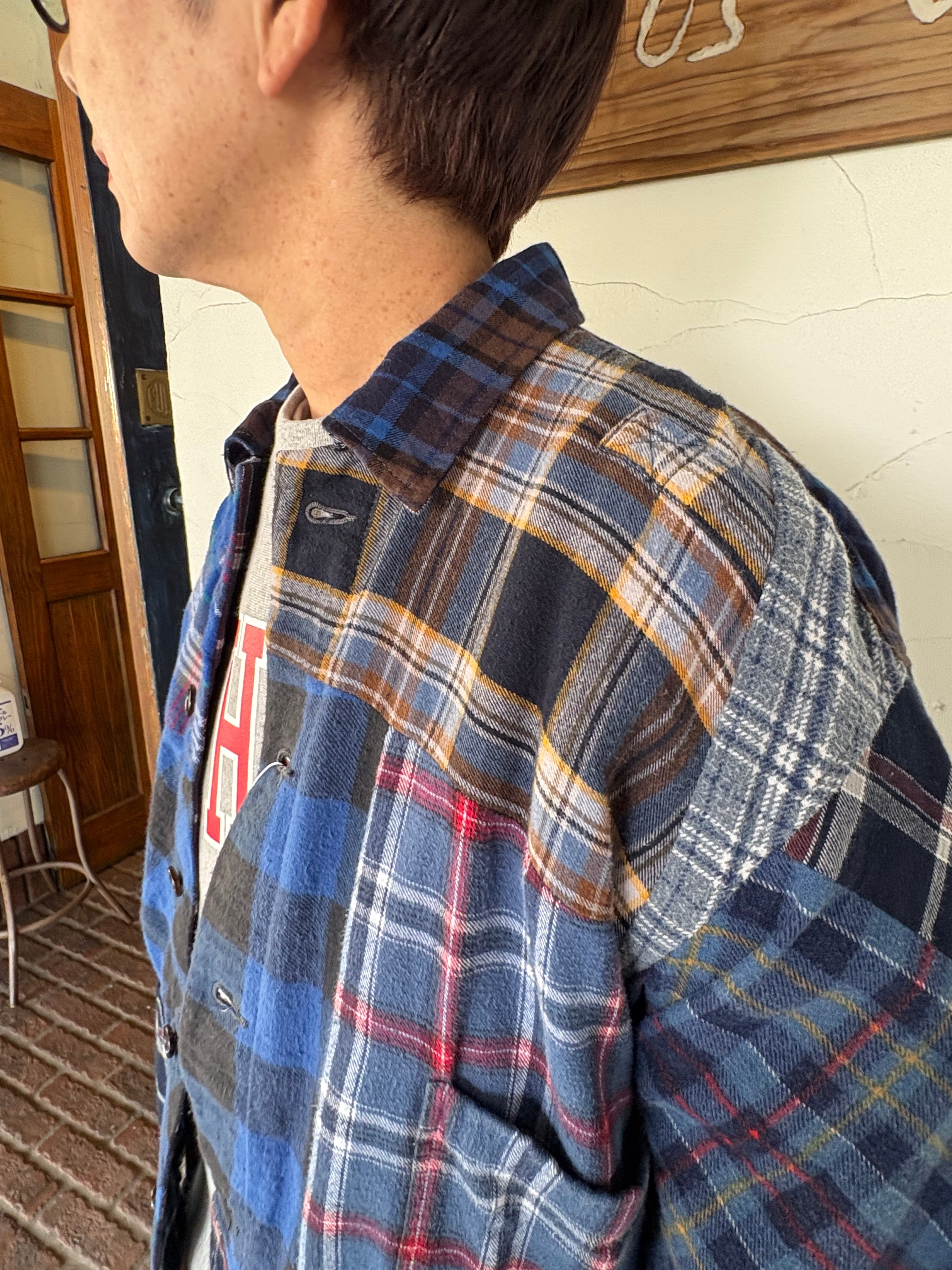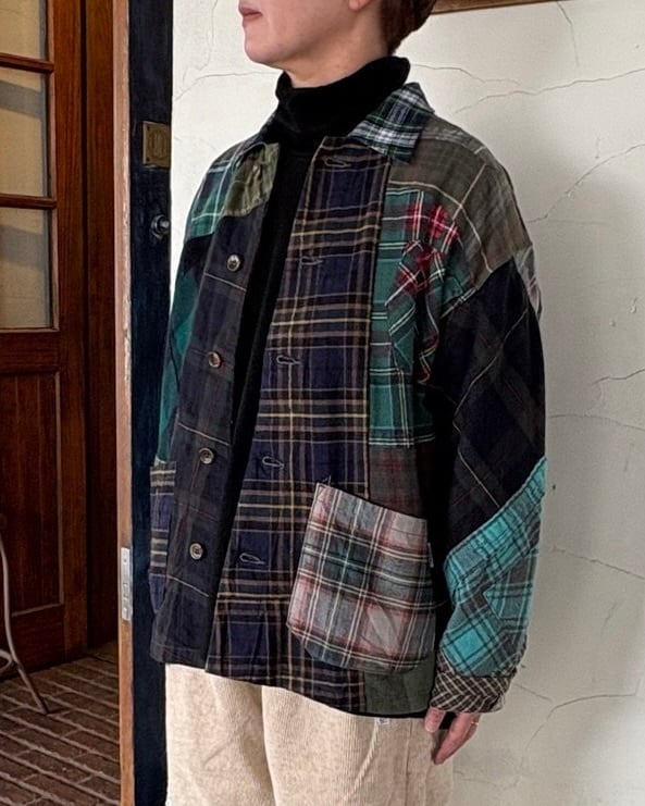 ユーズドのネルシャツを解体し、再構築したカバーオールジャケット