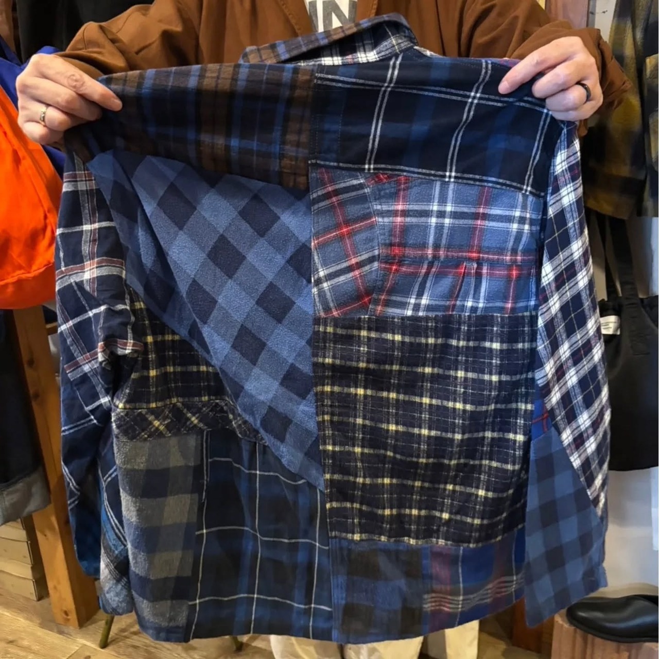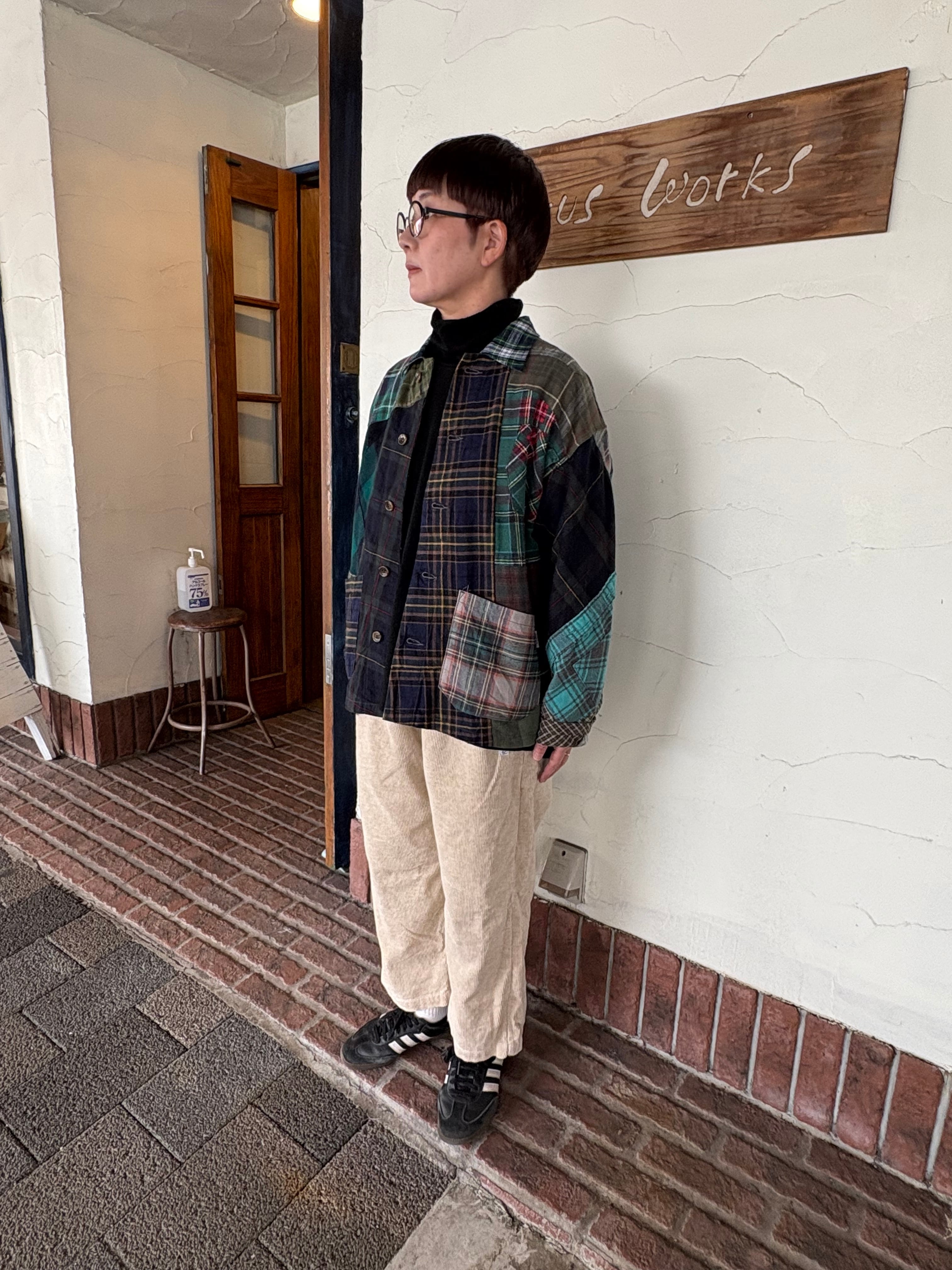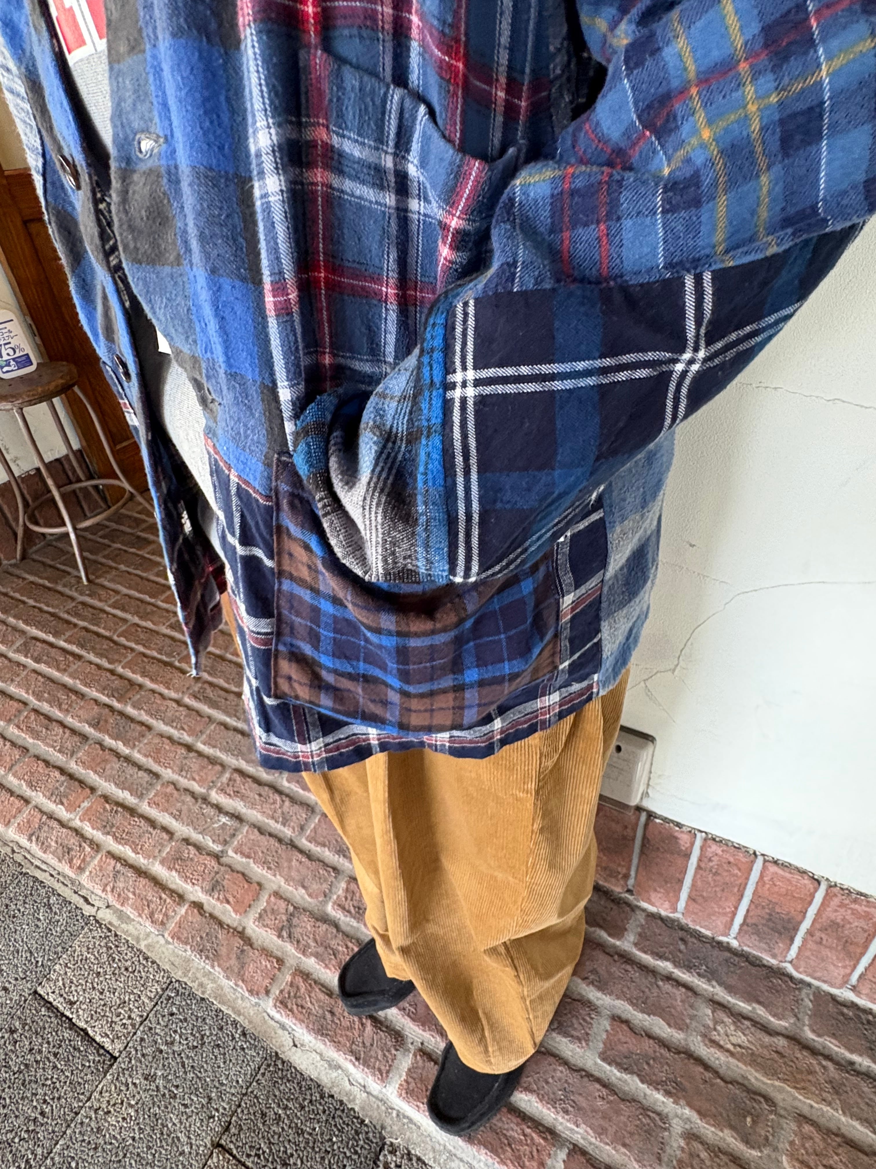 ユーズドのネルシャツを解体し、再構築したカバーオールジャケット