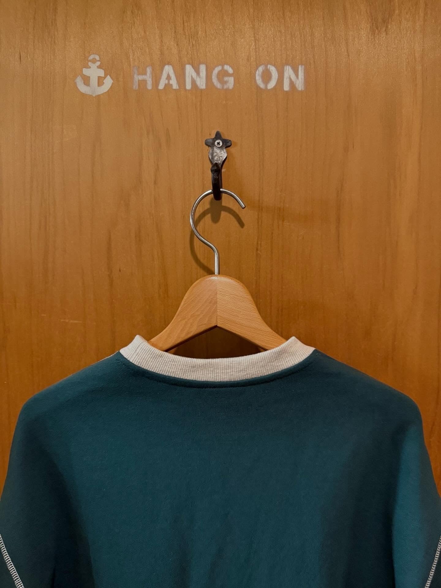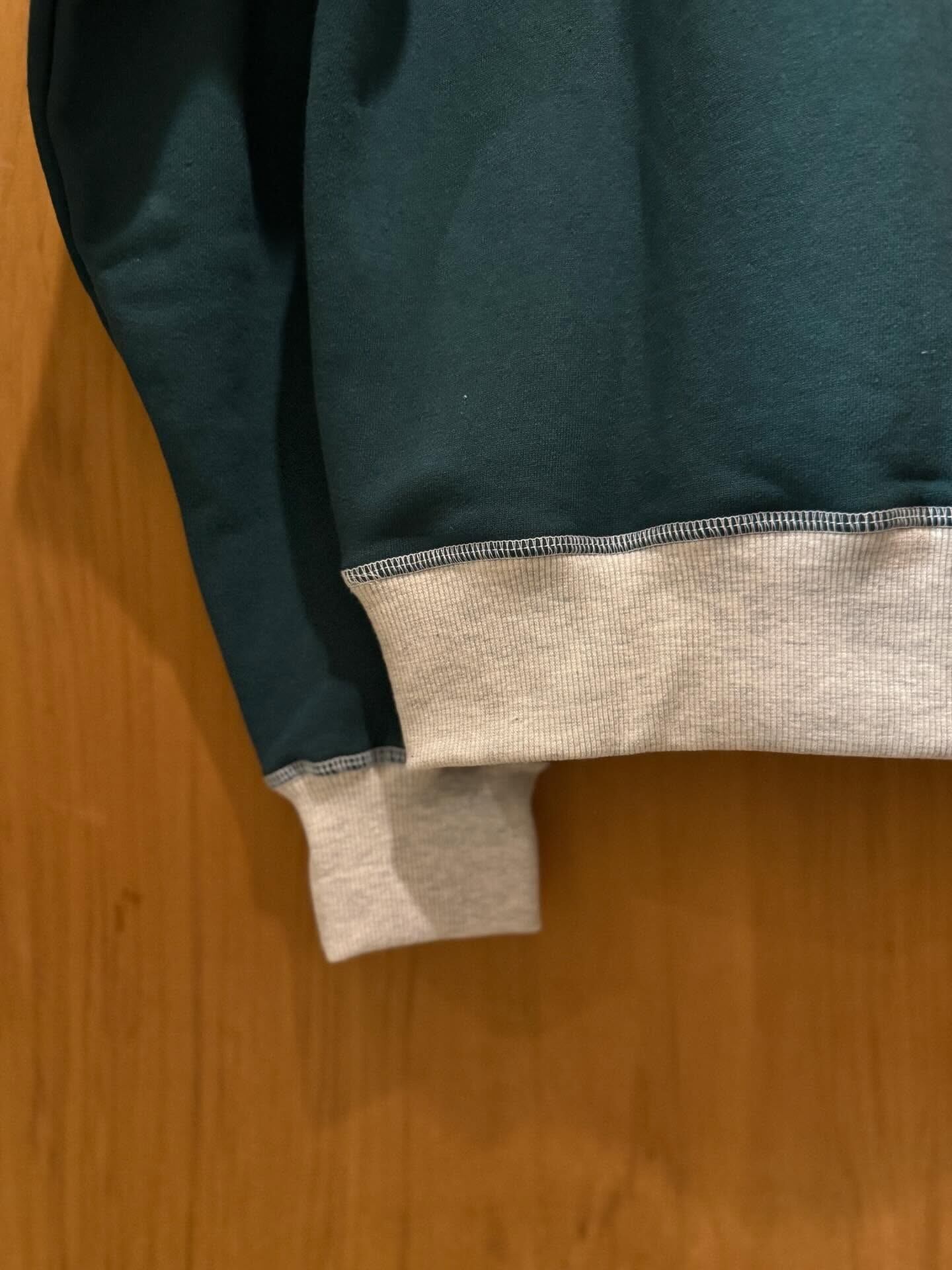 ゆったりとしたシルエットに、Vインサートやエルボーパッチなどのディテールを採用。