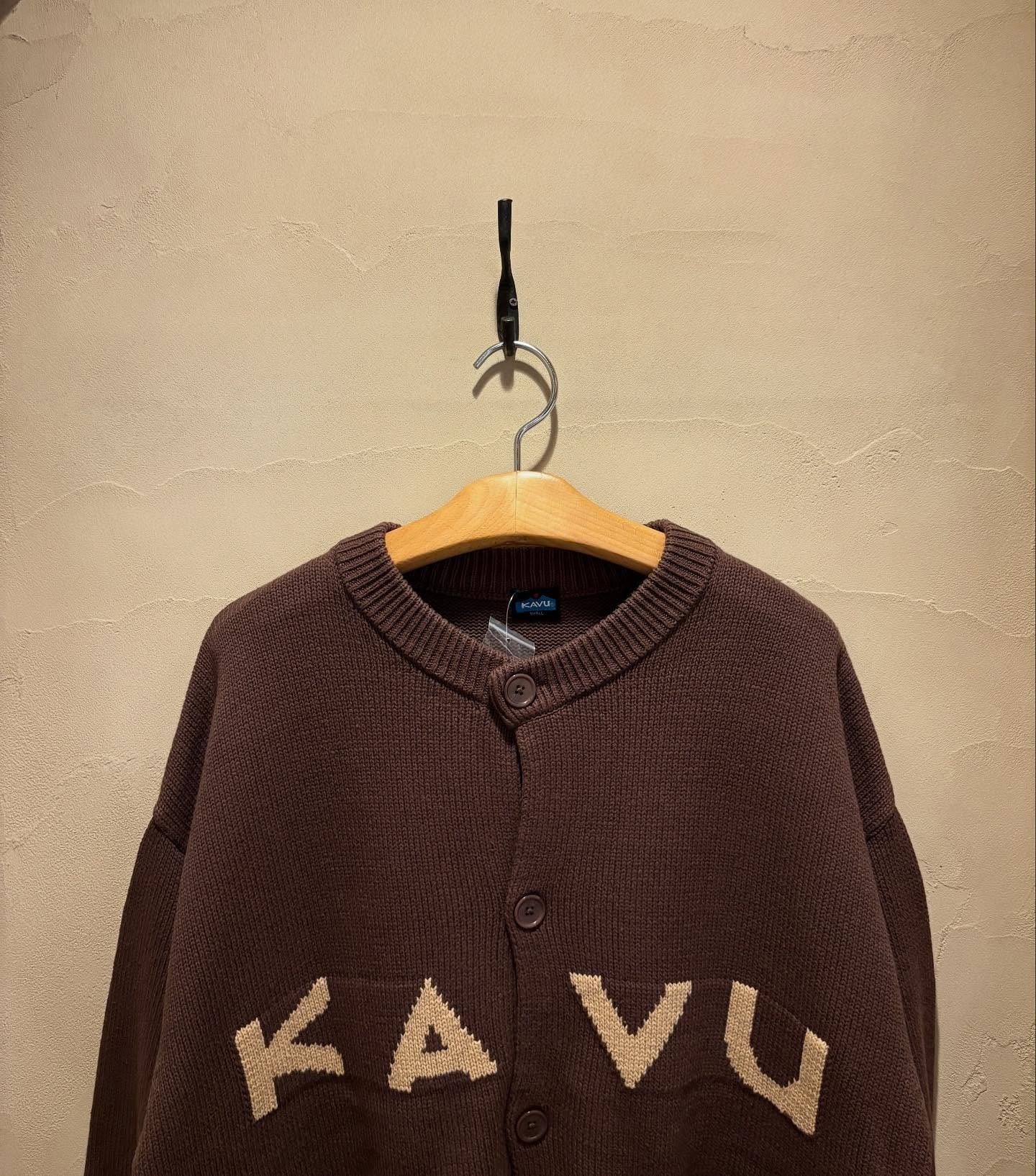 フロントには大きくKAVUのロゴ、そしてバックにはブランドの発祥地である「SEATTLE, USA」をデザインしたちょっとレトロなデザインのニットカーディガン。