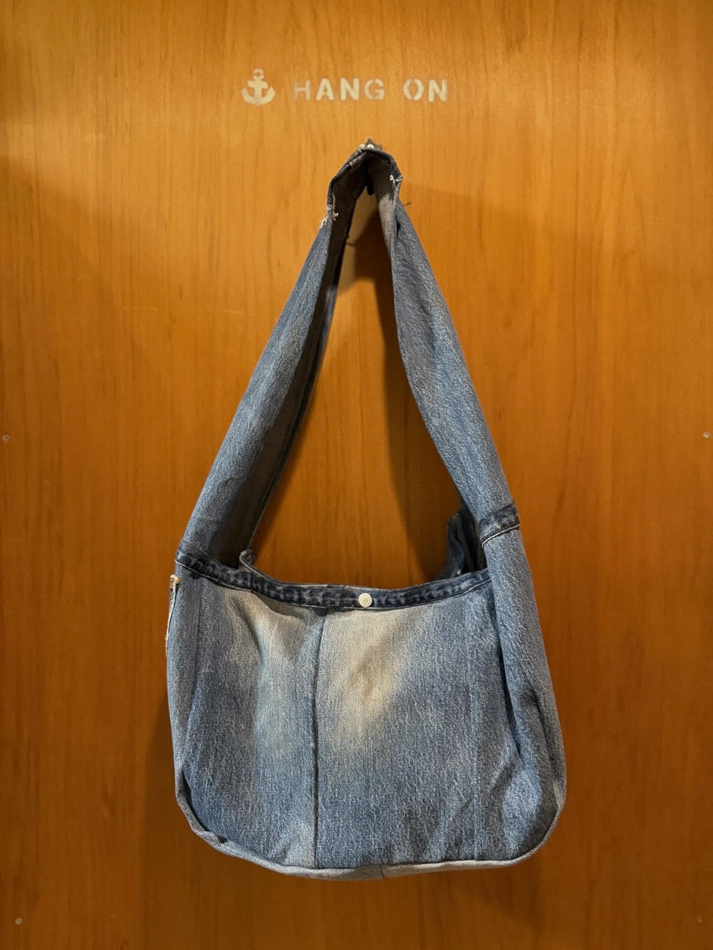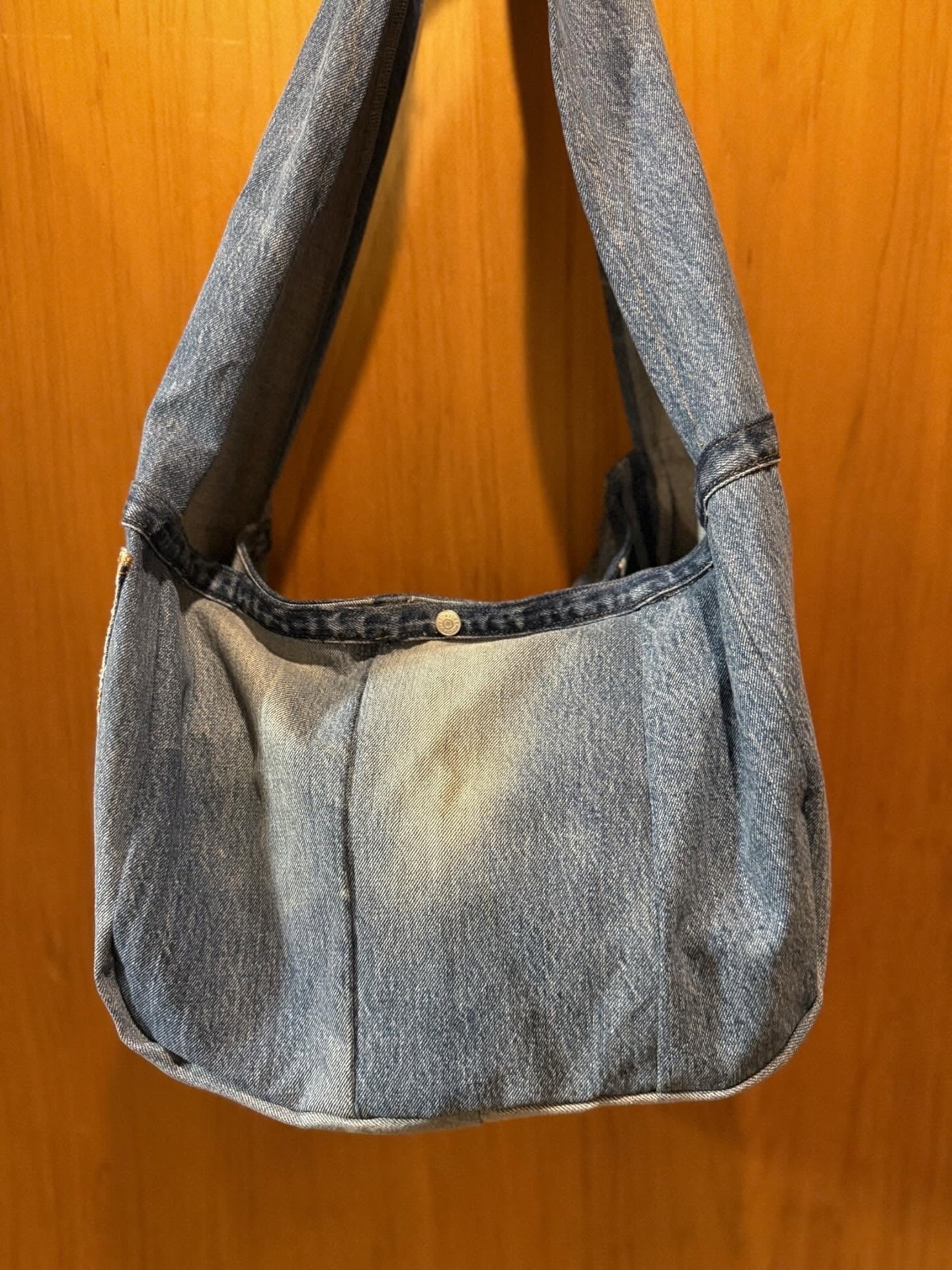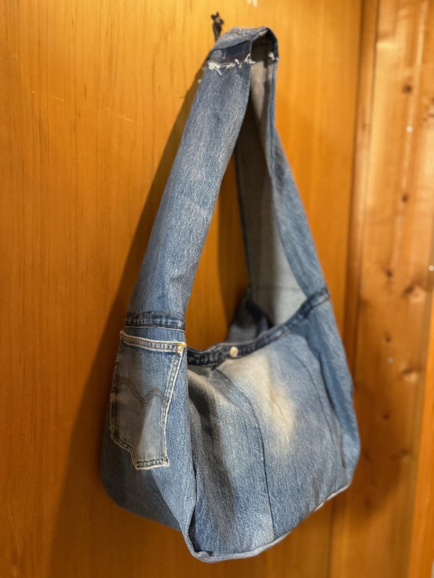 1900年代頃にアメリカで新聞配達をしていた際に使用したバッグをモチーフに某ジーンズをアップサイクルした一点。