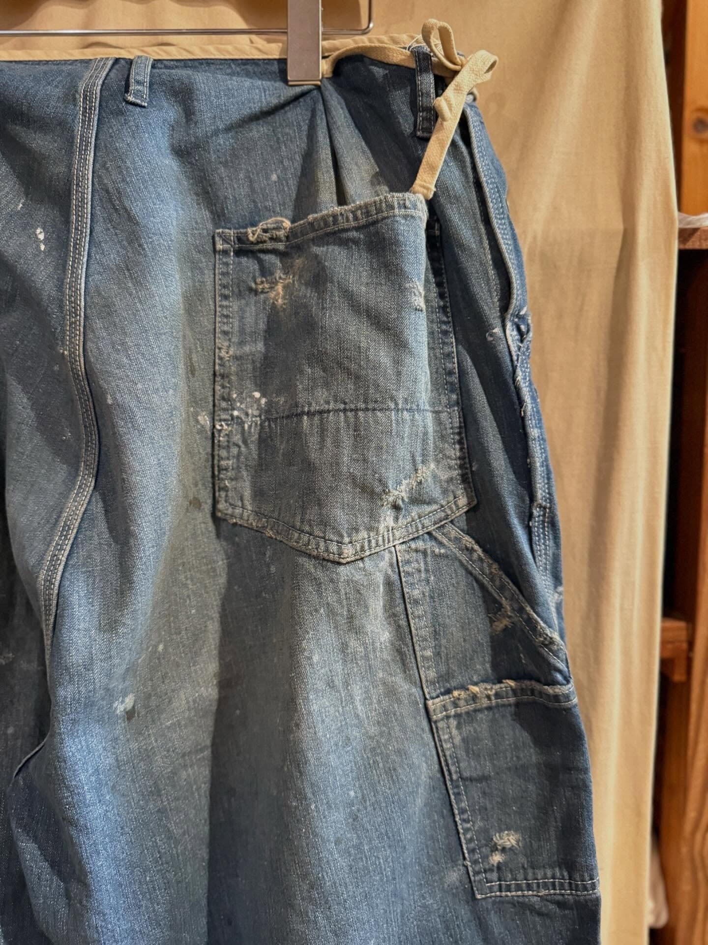 ダメージ加工やペンキ汚し、ハンドステッチや当て布をプラスし、長年リアルに着古したようなヴィンテージカスタマイズを施しています。