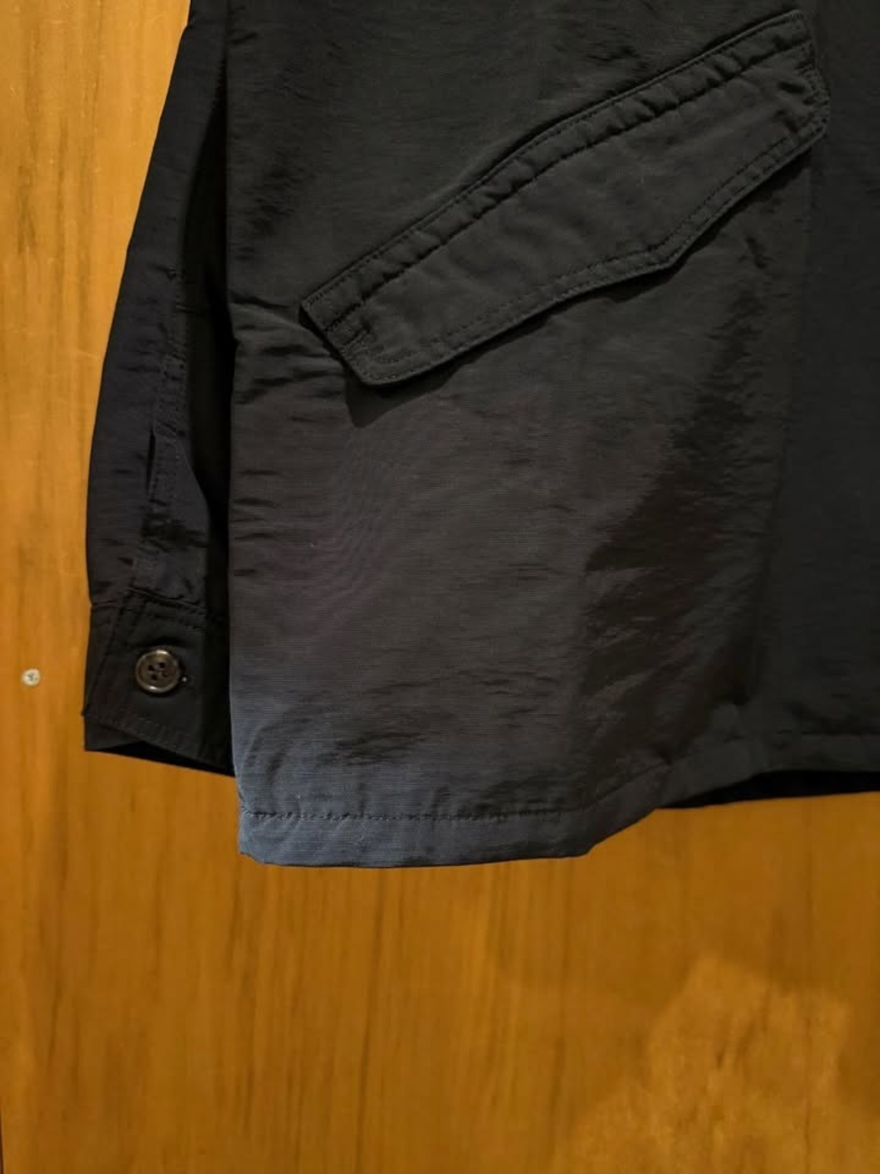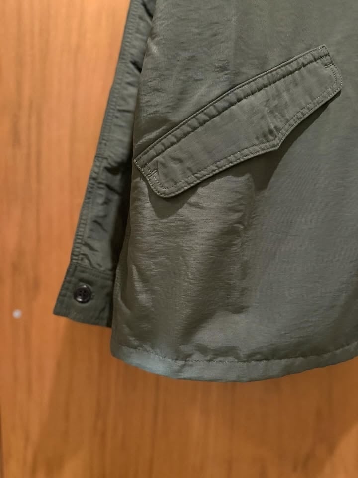 フラップ付きのポケットなど、ミリタリーライクなディテールを取り入れながら、ショート丈のシンプルなデザインに落とし込んでいます。