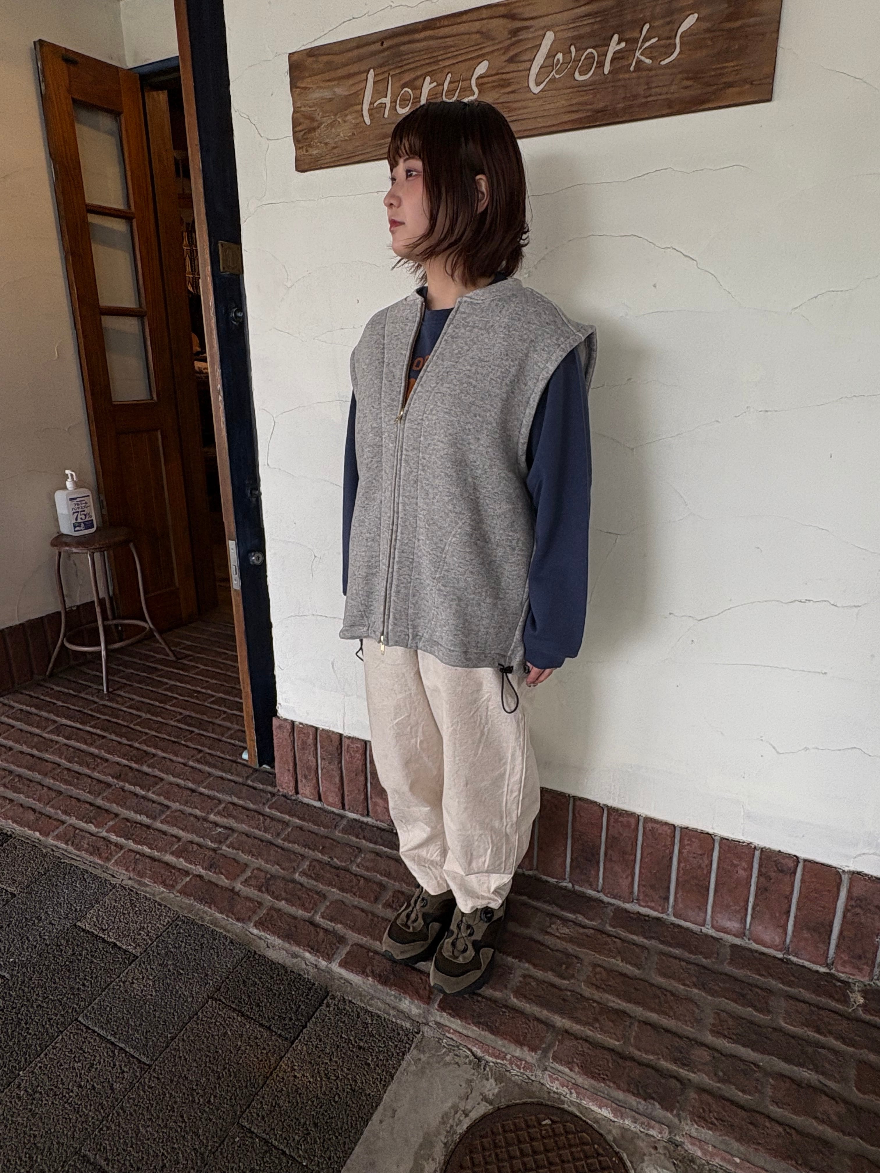 軽く羽織れて、今の時期にちょうどいいスウェットベスト