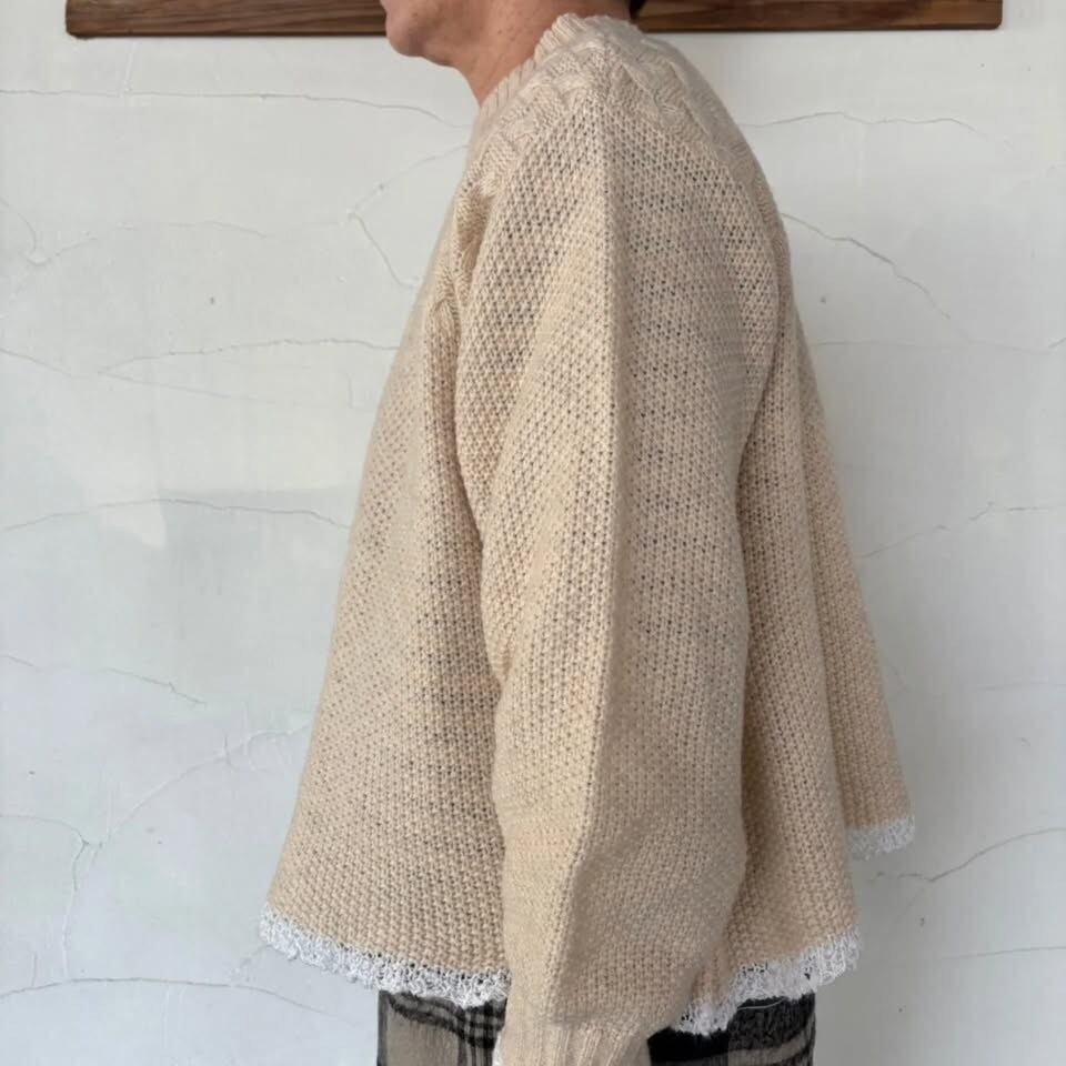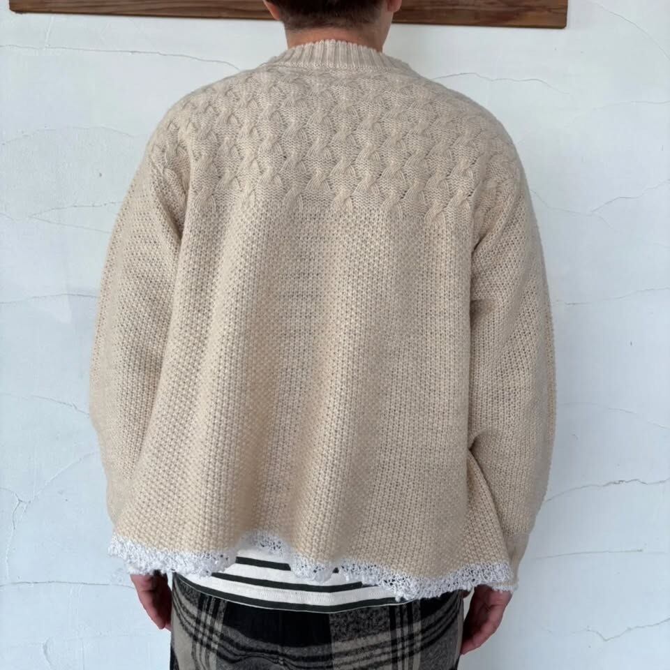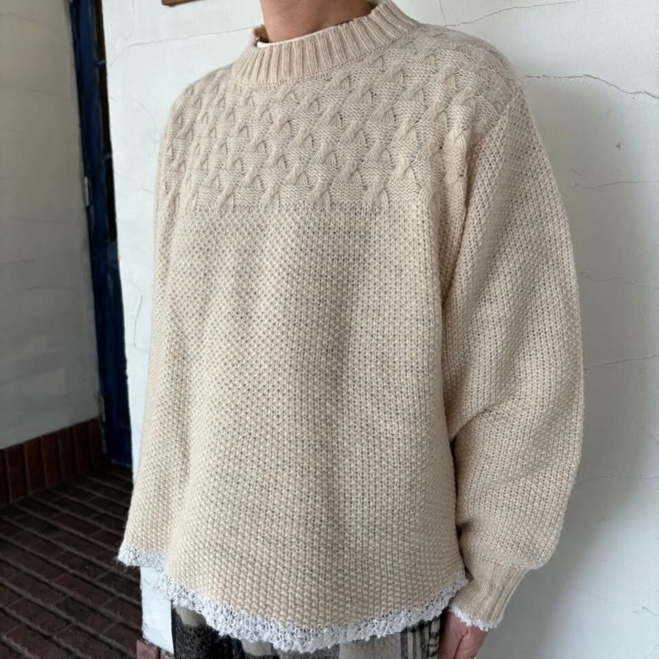 胸元がバスケット柄、胸下から鹿の子柄の切替が特徴のミラノラムのニットのご紹介です。