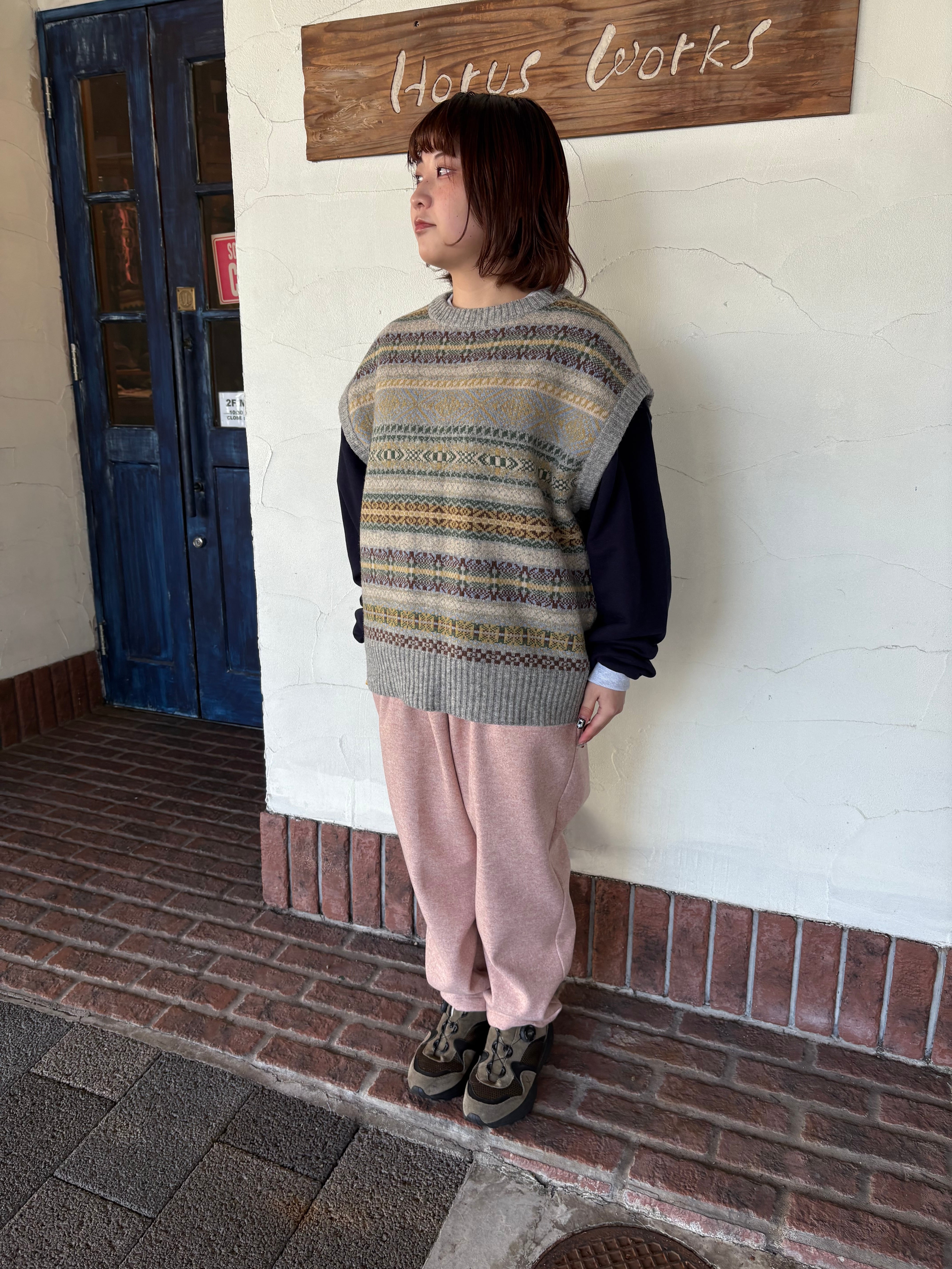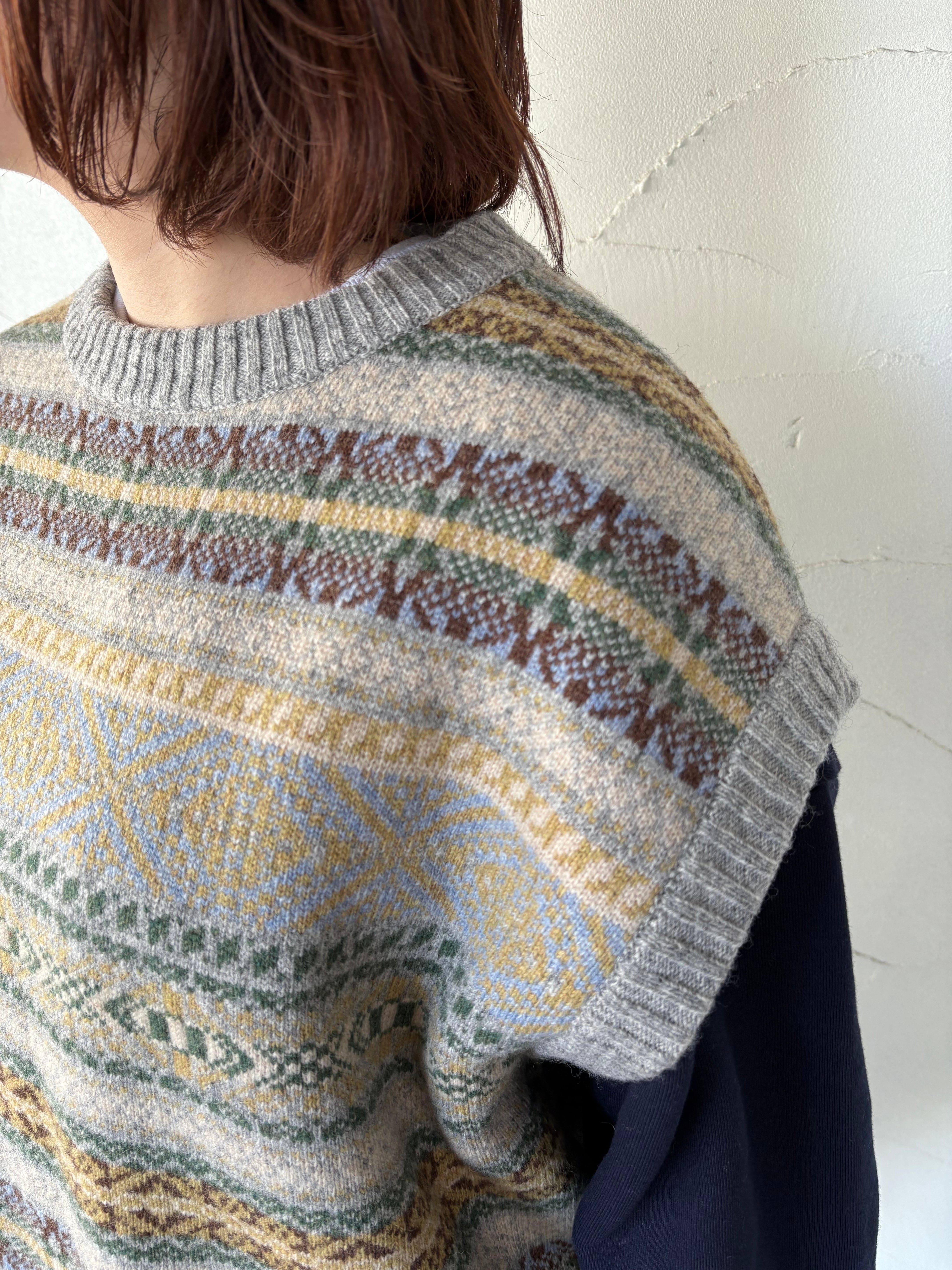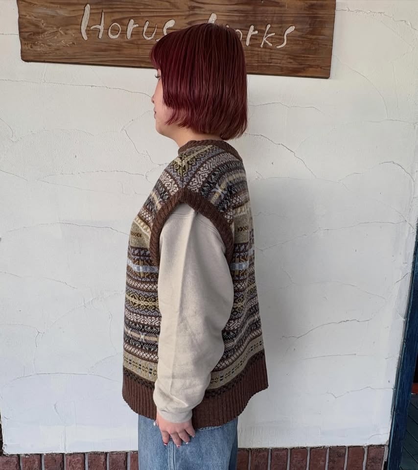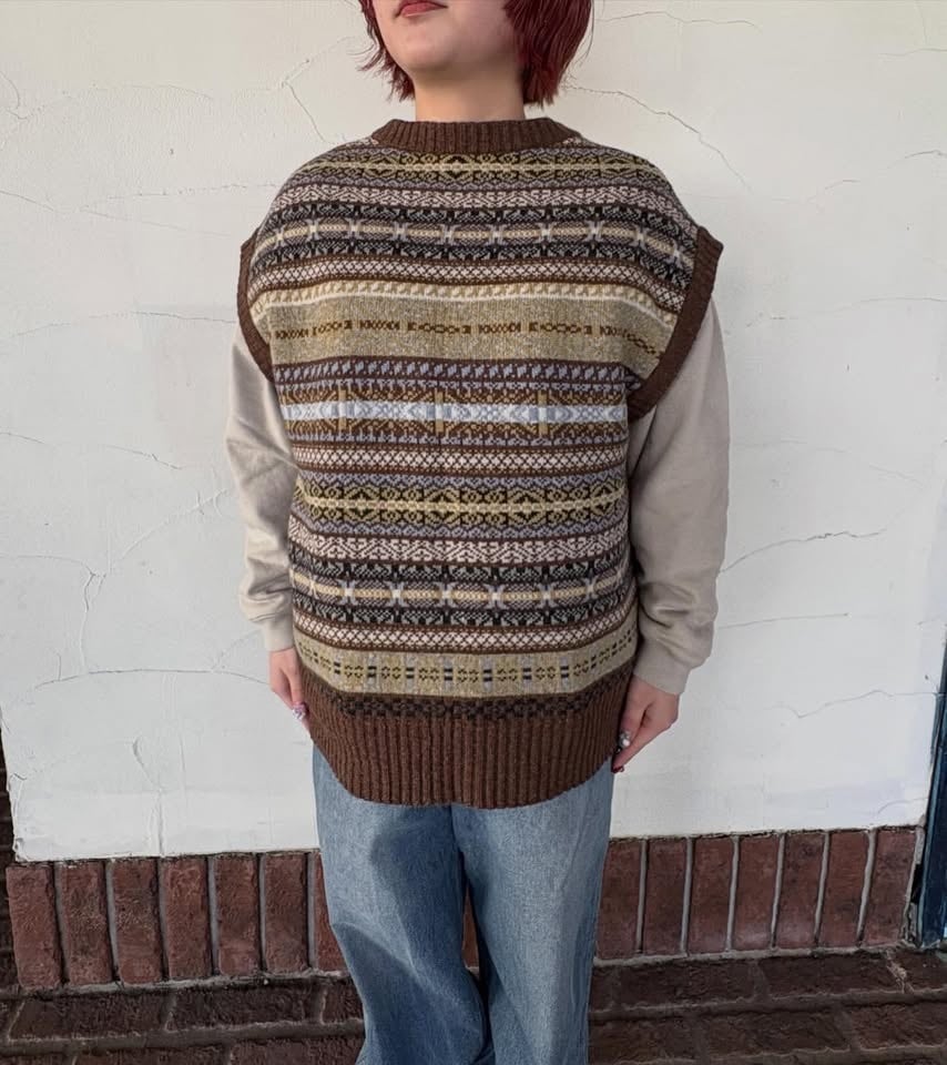 コーディネートがぱっと華やかになるフェアアイル柄ベストです。
